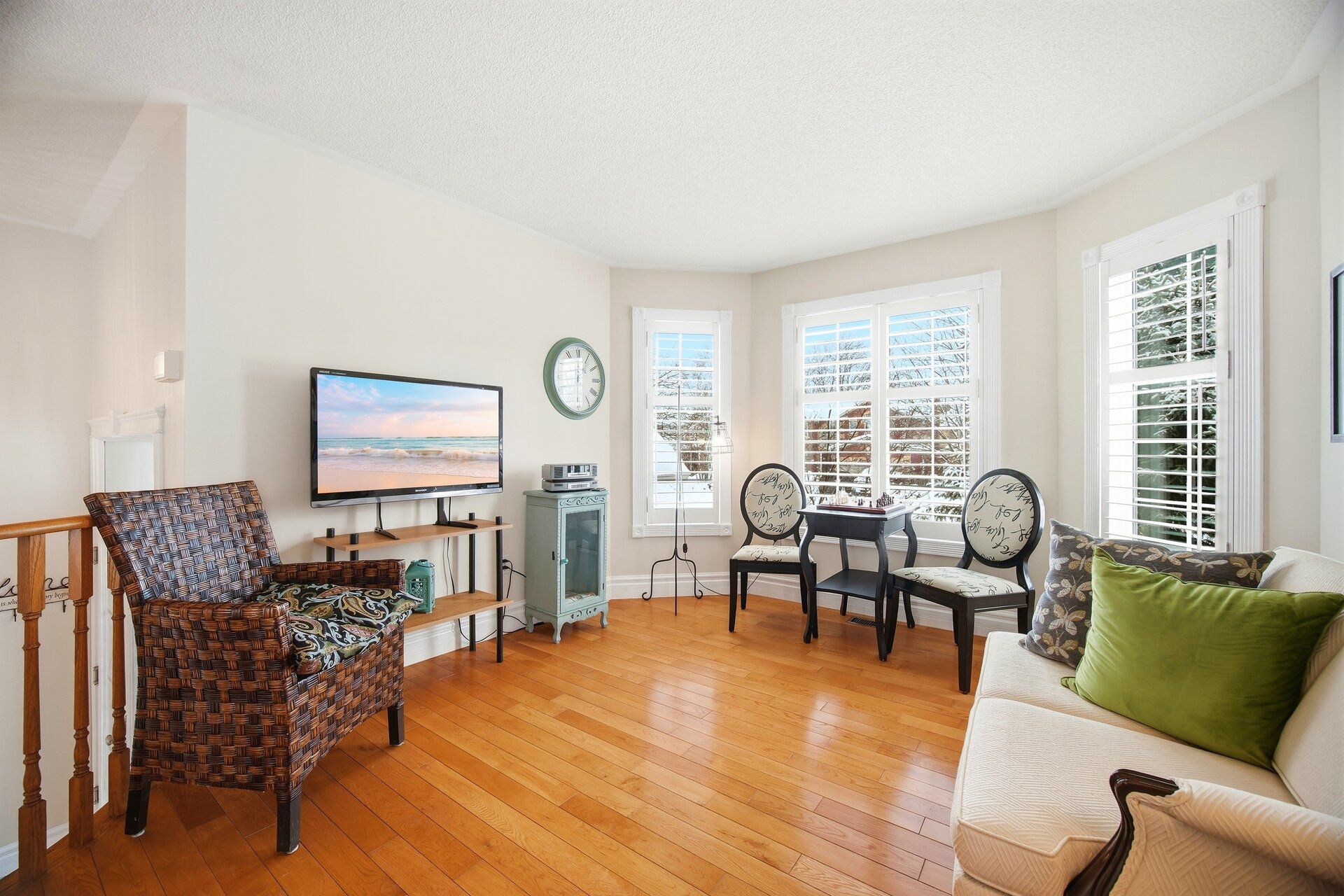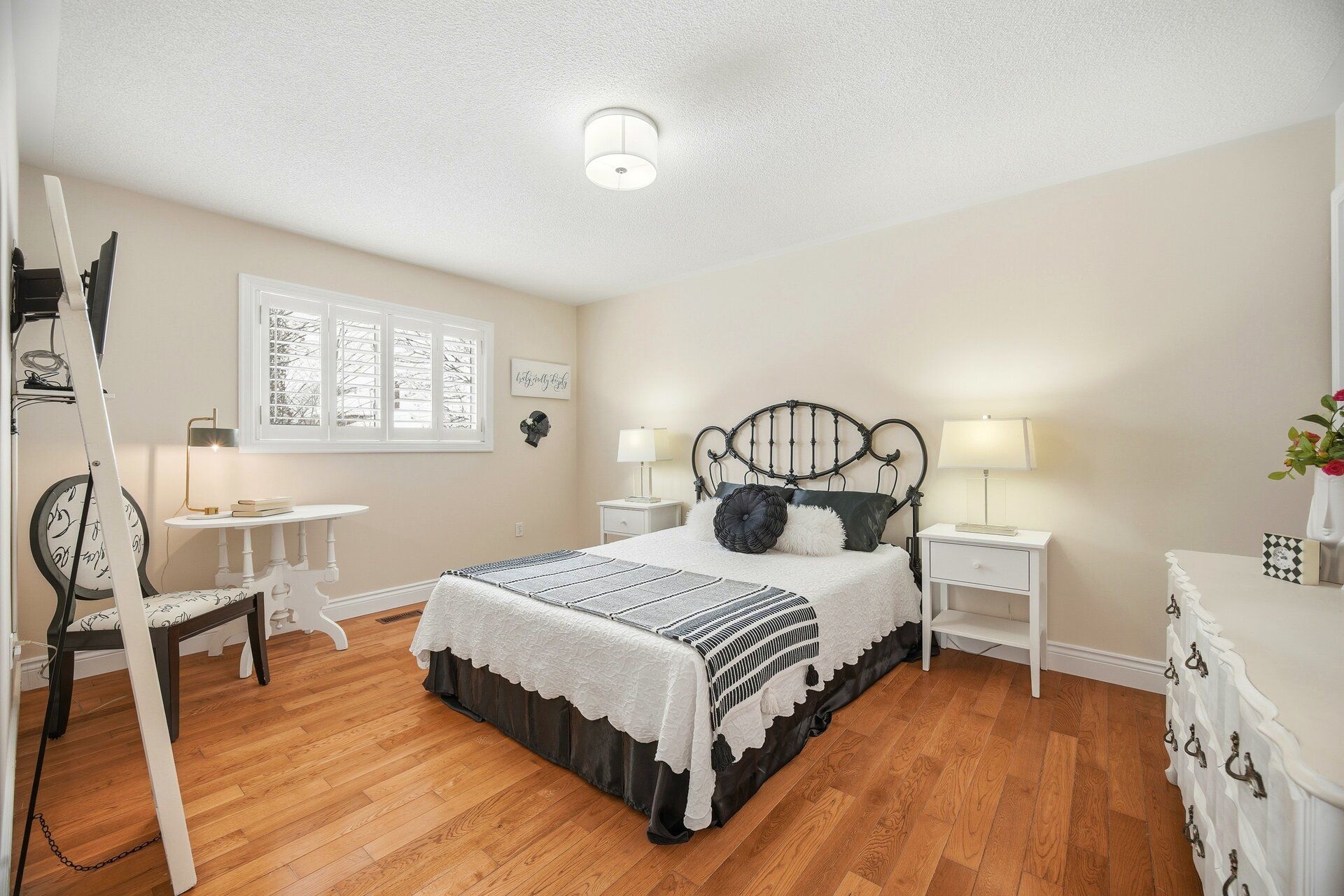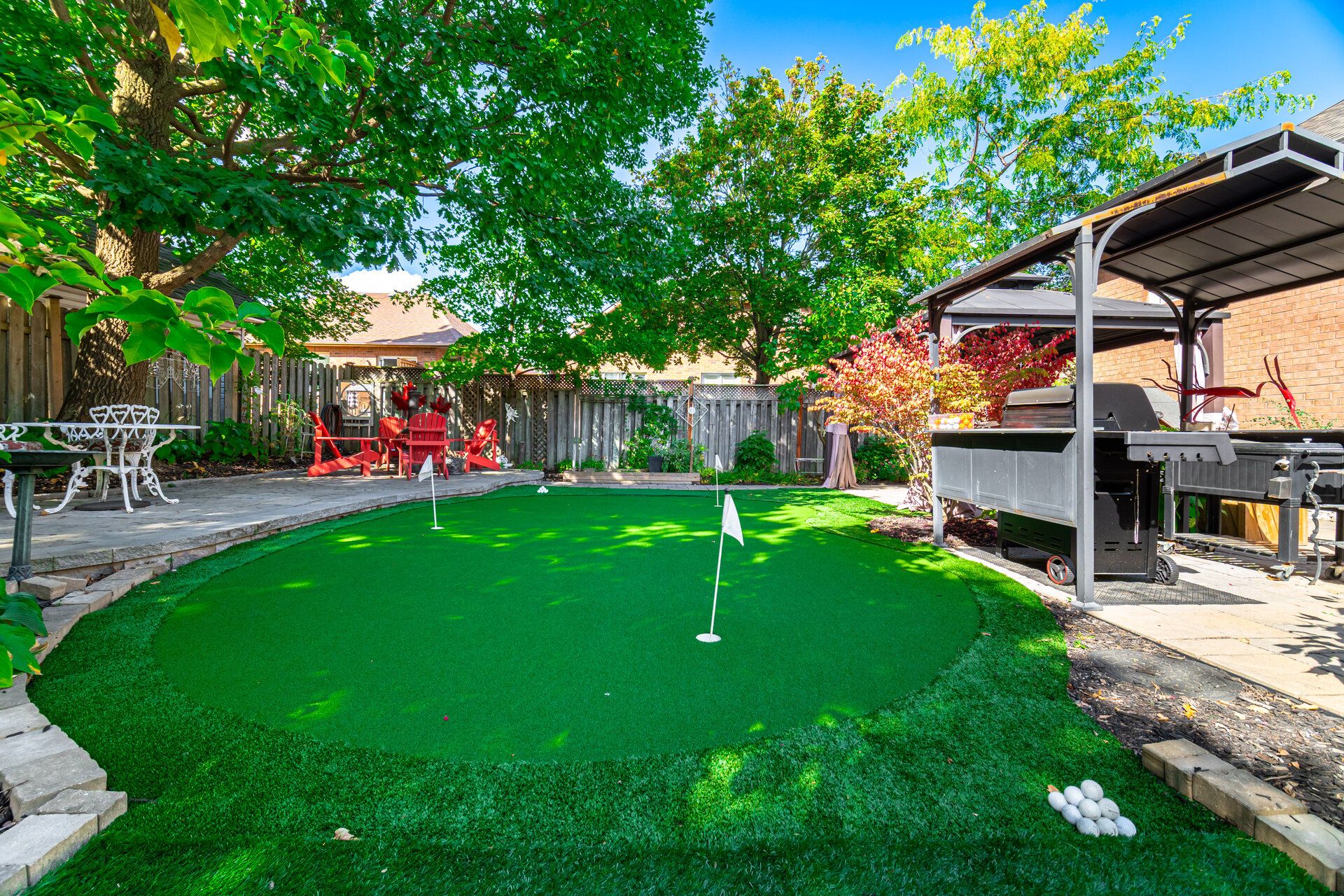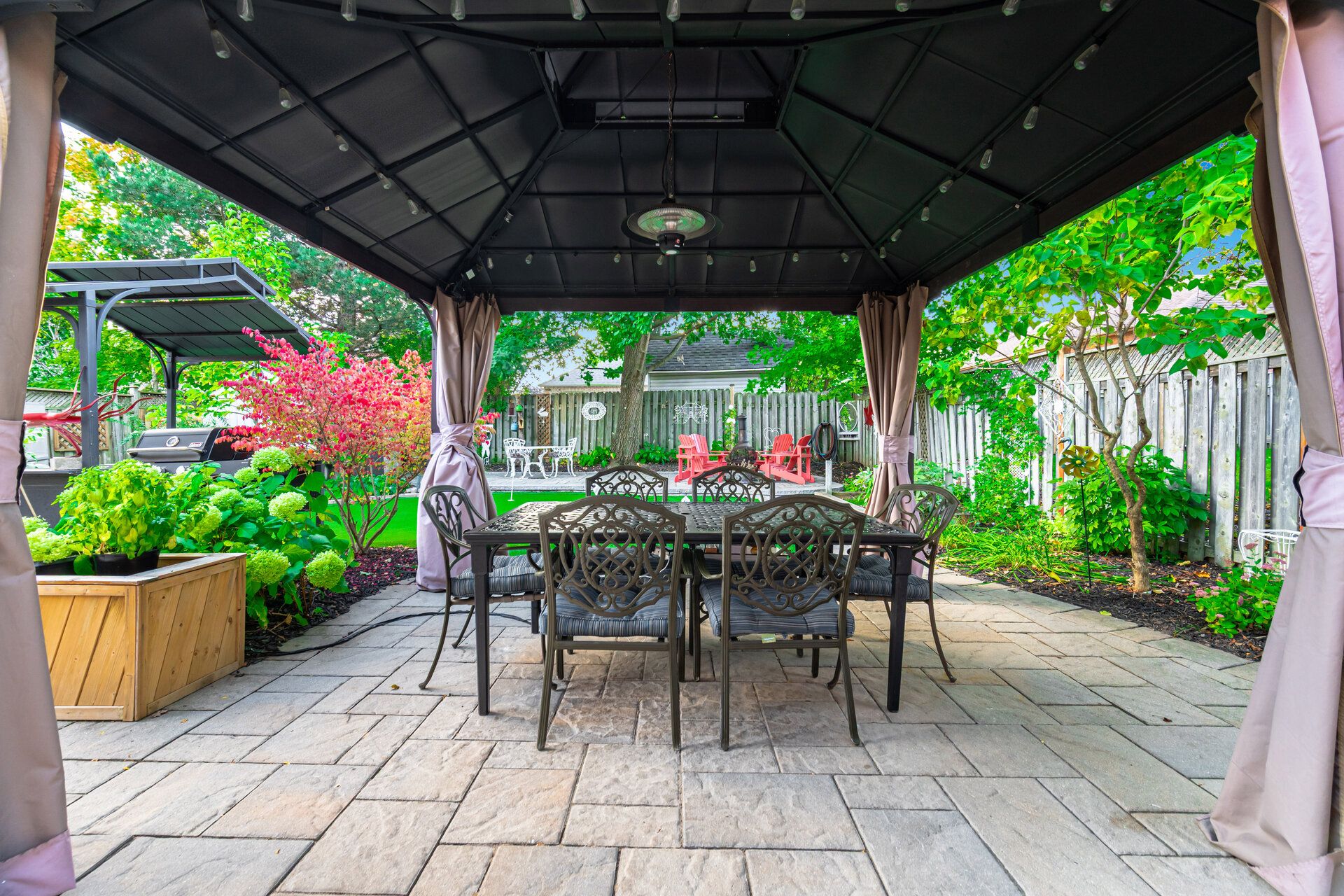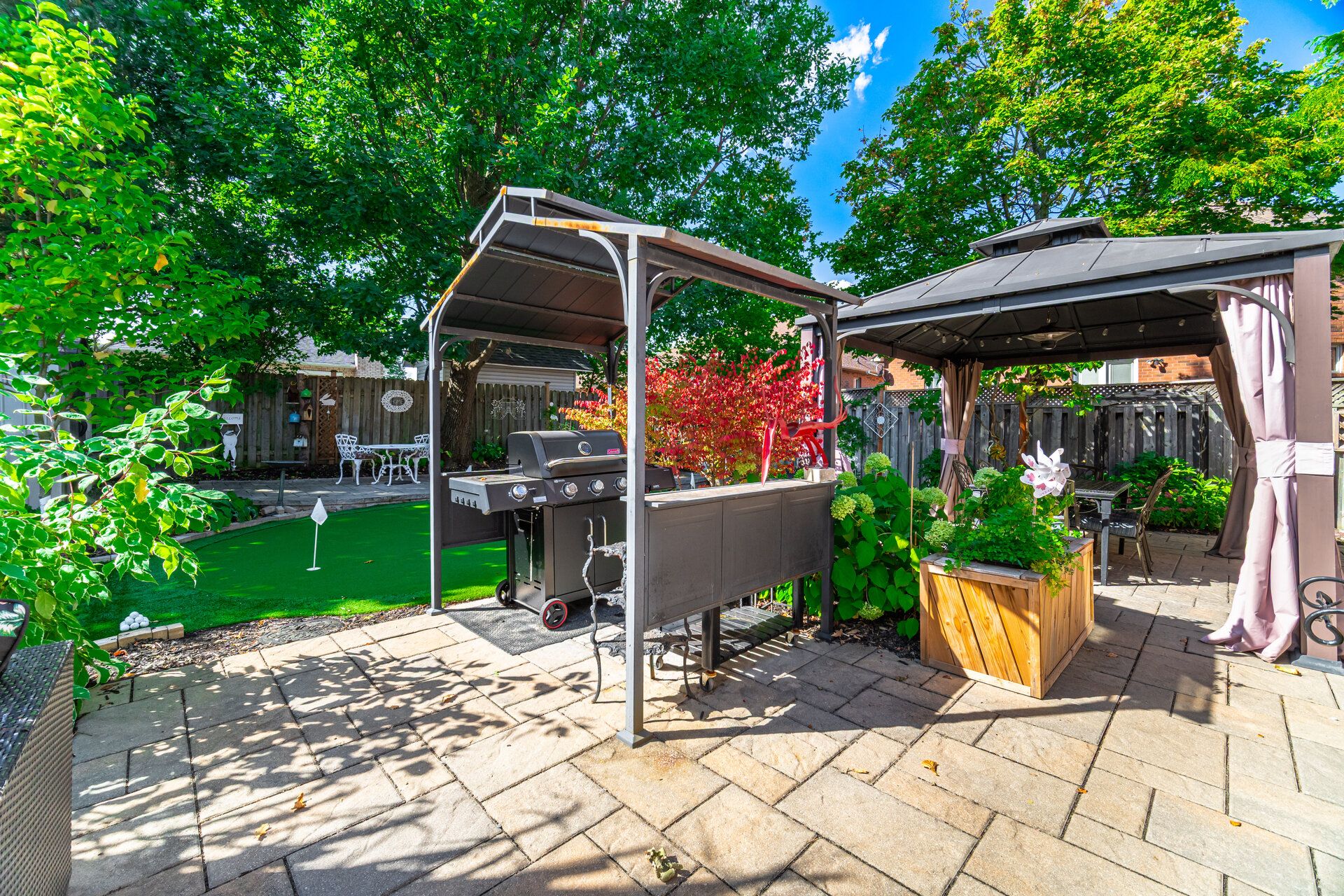 This incredible south-georgetown property is the one you have been searching for to call your home. Nestled in a quiet neighborhood this exquisitely landscaped offering includes a very private relaxation oasis yard, a golf putting green, patio gazebo, bbq stand and no grass to maintain. Truly, this is an opportunity to escape the "big city" challenges. The interior of this home is magnificent with thoughtful modern details throughout. The entire main floor is complete with gleaming hardwood (except kitchen ceramic) and california shutters. Open concept living / dining is perfect for entertaining with natural light streaming in from every direction. The spacious primary bedroom is an escape in itself with its walk-in closet, semi-ensuite, and view of the yard. The kitchen, with stainless steel appliances also includes a breakfast area. Completing the main floor is a second bedroom, accompanied by two more bedrooms on the lover level. With above-grade windows in every room, the lower level feels more like an above-grade space, and with its dedicated walk-up it possesses in-law potential. A cozy gas fireplace accents the exceptionally large family room, defining it as the place where everyone will want to relax and hang out. Two generous sized bedrooms and a large laundry room complete the lower level. An all-brick home with its covered porch, double driveway, two-car garage, and professional landscaping, 26 hamilton has tremendous curb appeal. It should be yours!