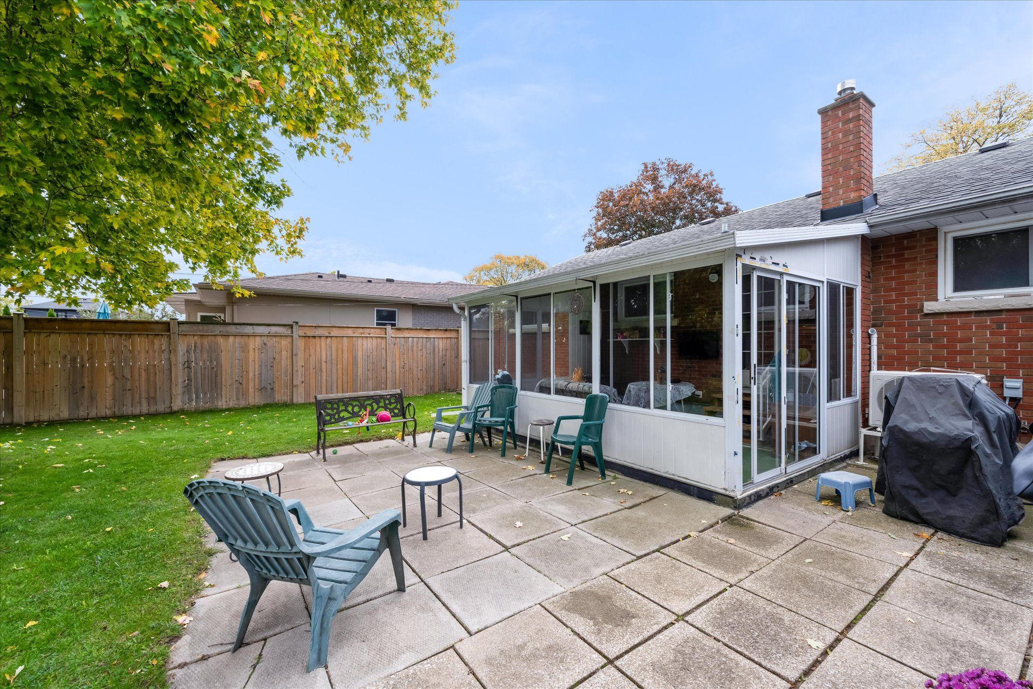 • Sunroom overlooking the backyard, perfect for relaxing.