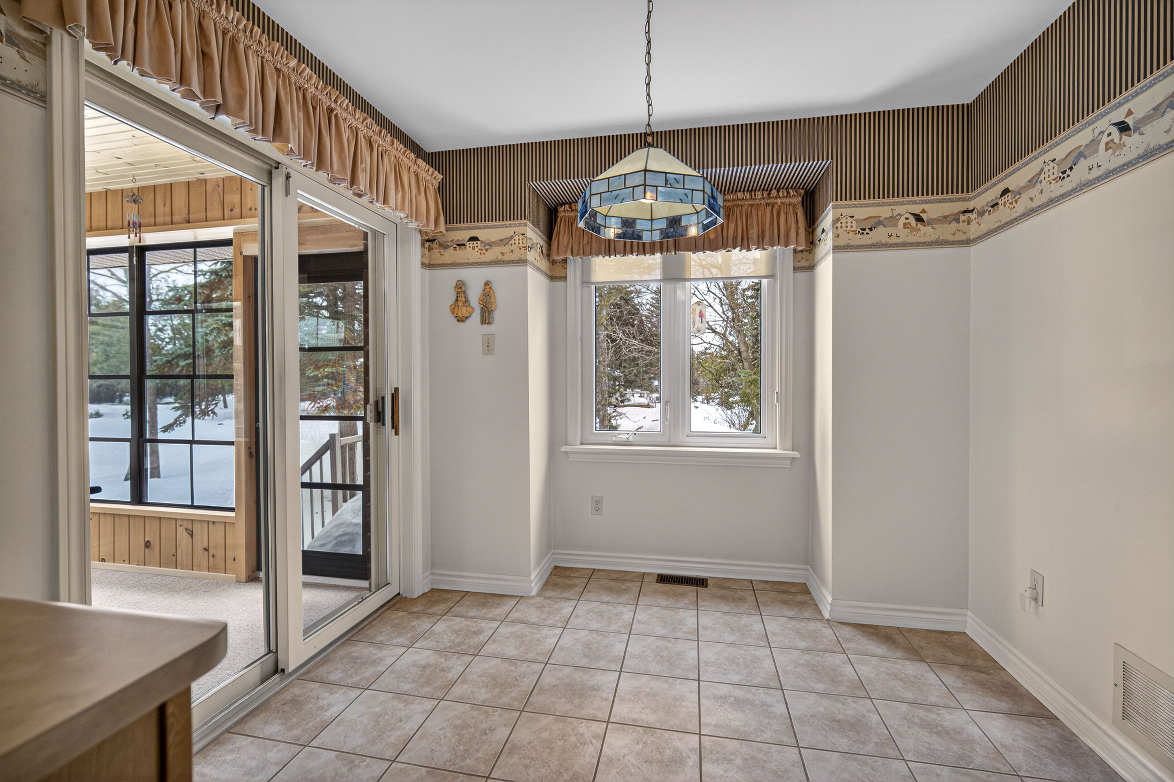 • Bright kitchen with dinette and access to a charming sunroom.