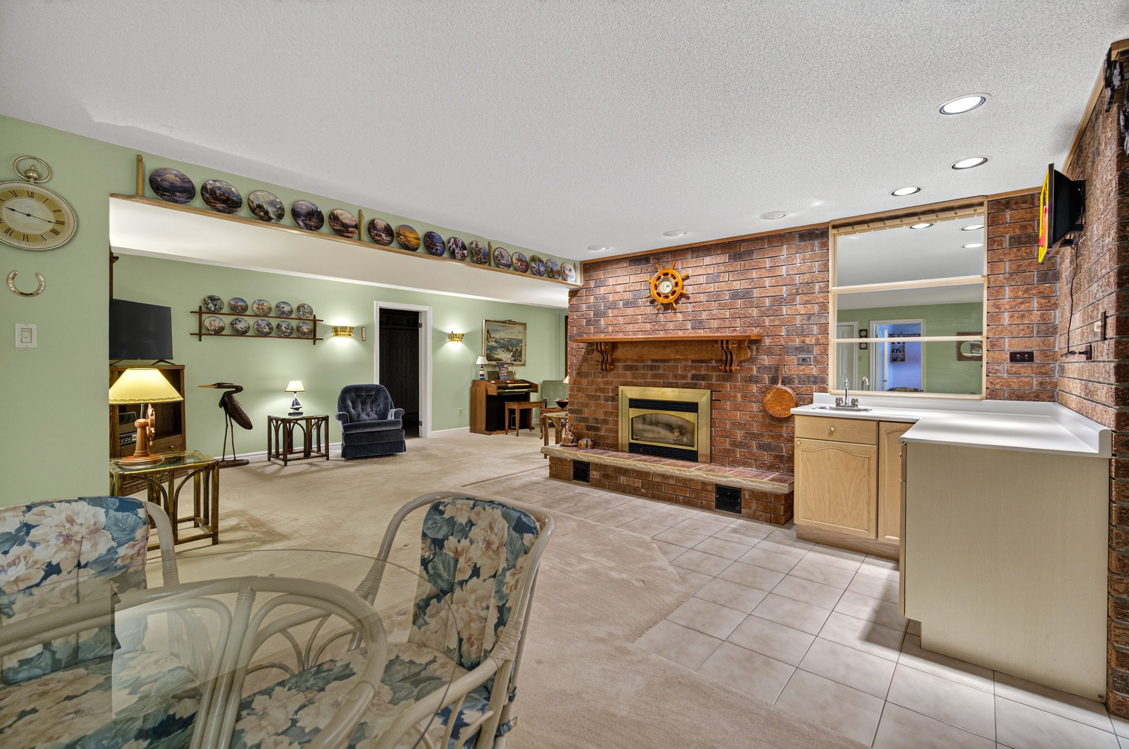 • Versatile lower level includes kitchenette, recreation area, and third bedroom.