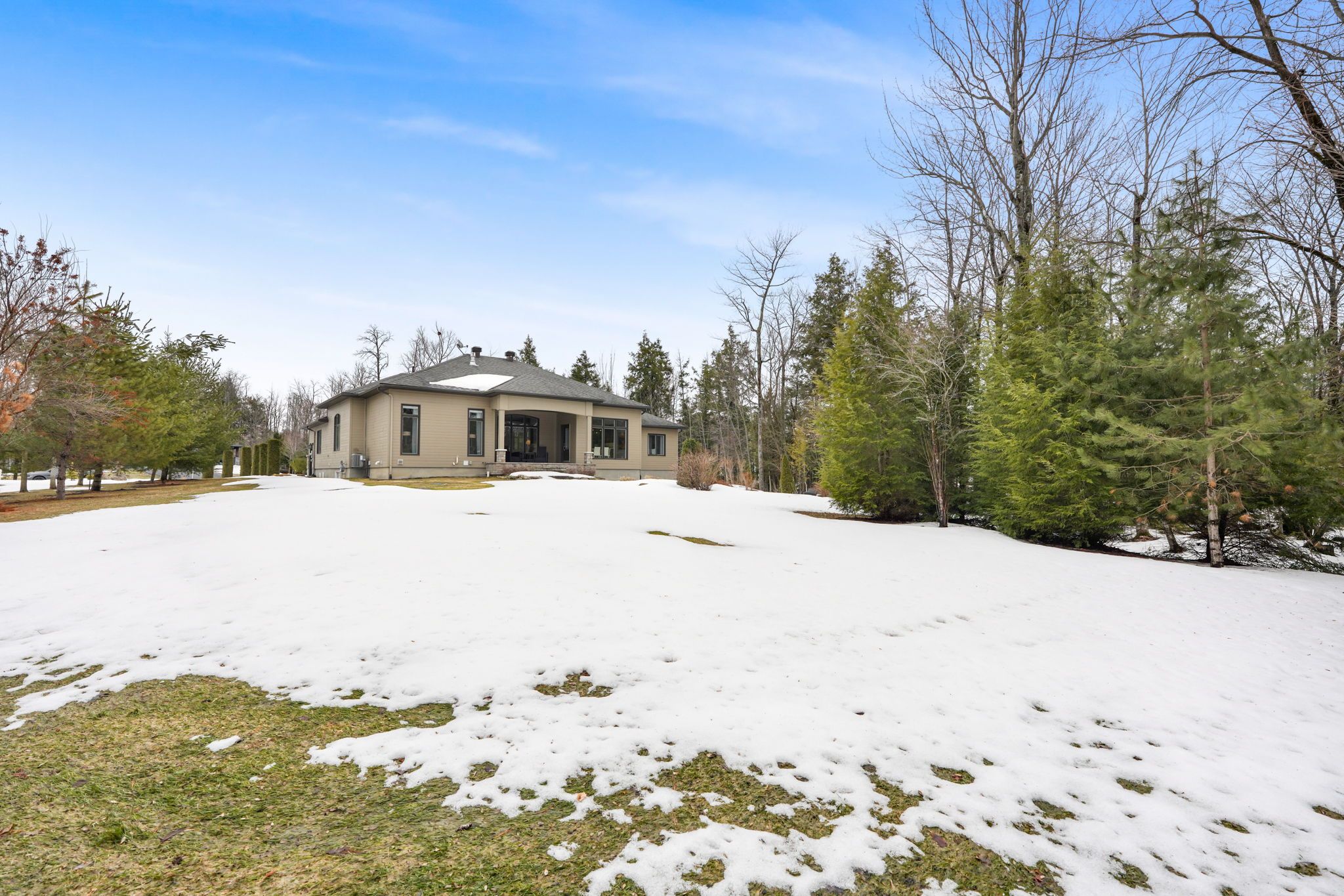 Welcome to this impeccable bungalow, ideally located in the area's most sought-after heritage estate. Set on a professionally landscaped lot, the property features curated flower beds throughout, inviting stone-framed fire pit area, and a peaceful natural setting. Exceptional privacy meets charm with a brick-covered porch-perfect for unwinding and taking in the surroundings. Inside, you'll find a bright and spacious open-concept layout featuring a formal dining area, expansive living room, and a stunning kitchen with additional eating area, cathedral ceilings and oversized windows that flood the home with natural light. The main floor offers three generously sized bedrooms, each with its own walk-in closet, along with a convenient mudroom and plenty of storage for everyday functionality. The property also features a double garage with durable resin flooring, combining practicality with a clean polished finish. The partially finished lower level provides a massive space on luxury vinyl flooring with endless potential-ideal for additional bedrooms, a family room, and a ready future bathroom. This property is like new and has been impeccably maintained inside and out. A perfect blend of luxury, comfort, space, and location-this home is truly a rare find. One visit will convince you.