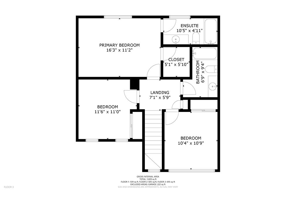 • Spacious primary bedroom with a walk-in closet and private ensuite.