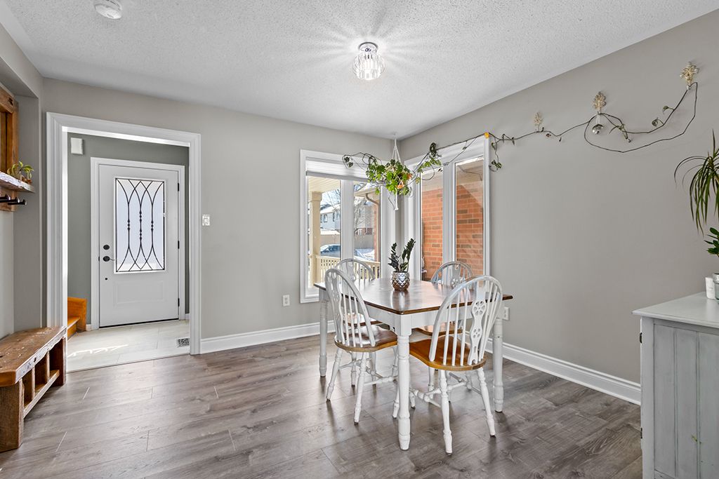 Welcome to this beautifully updated and exceptionally well-maintained 3-bedroom, 3-bath home in a sought-after, family-friendly neighbourhood in alliston, just steps to schools, trails, parks, and everyday amenities. At the heart of the home is a fully renovated kitchen designed for both everyday living and entertaining. Featuring quartz countertops, stainless steel appliances, and a spacious eat-in peninsula, this bright and functional space flows seamlessly through an oversized sliding door to the backyard. Step outside to a large two-tiered deck overlooking the private, landscaped yard and peaceful greenspace beyond, creating the perfect extension of your living space during warmer months. Modern, matching flooring runs throughout the main and upper levels, while durable vinyl flooring completes the finished basement bonus area, ideal for a playroom, home office, or additional family room. Upstairs, the spacious primary bedroom offers a large walk-in closet and a private ensuite with picturesque views, creating a comfortable retreat at the end of the day. Beautifully landscaped front and back, and complete with an interlock driveway providing extra parking, this impeccably maintained home is truly move-in ready, offering the space, setting, and lifestyle families are searching for in alliston.