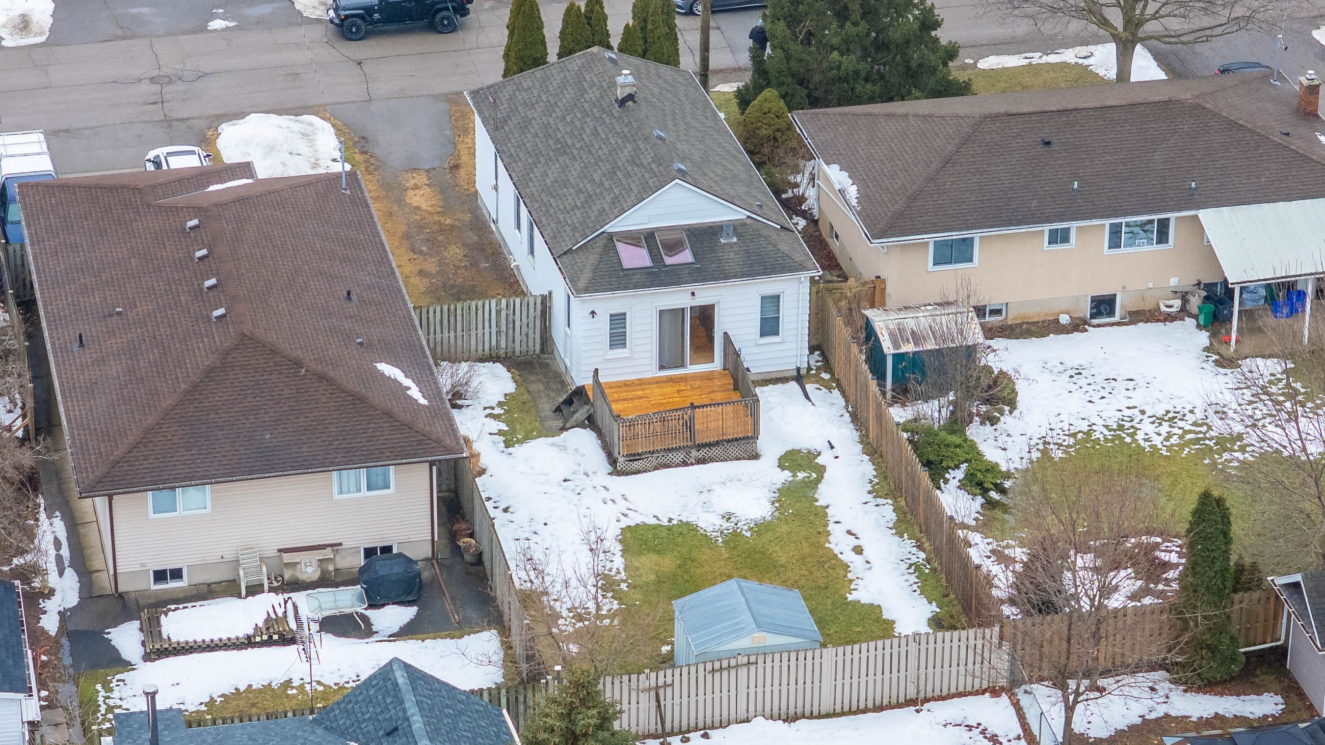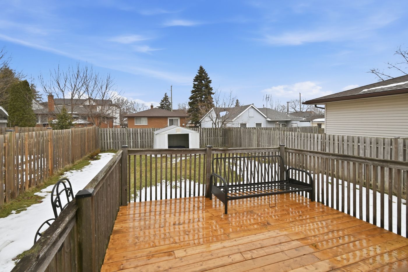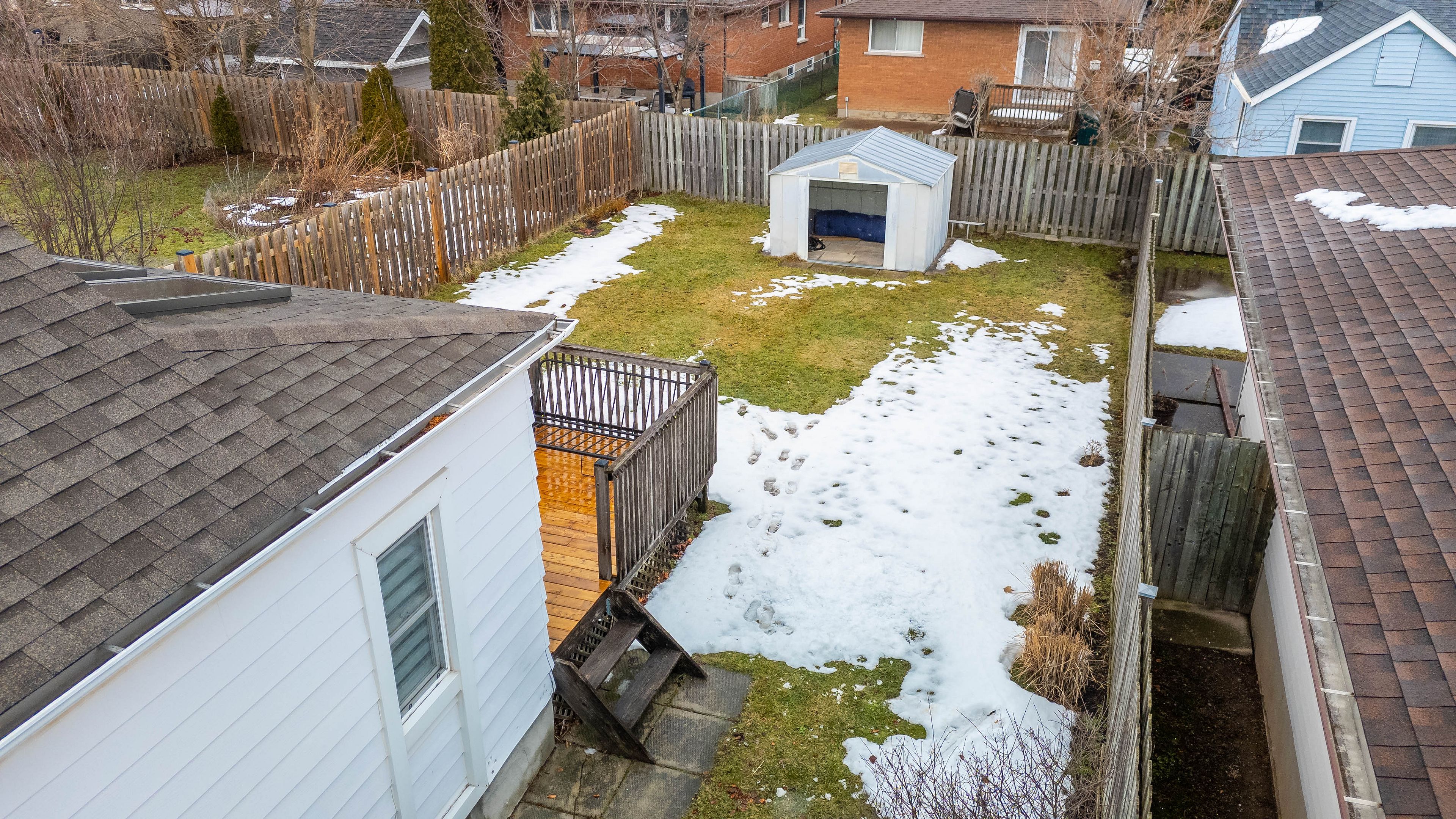 • Private fenced backyard with a newer deck and storage shed for relaxation.