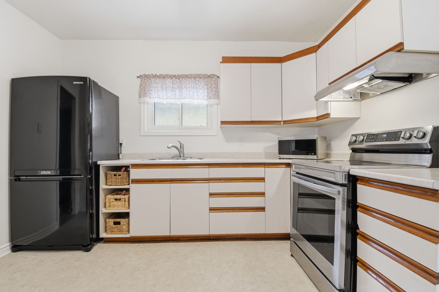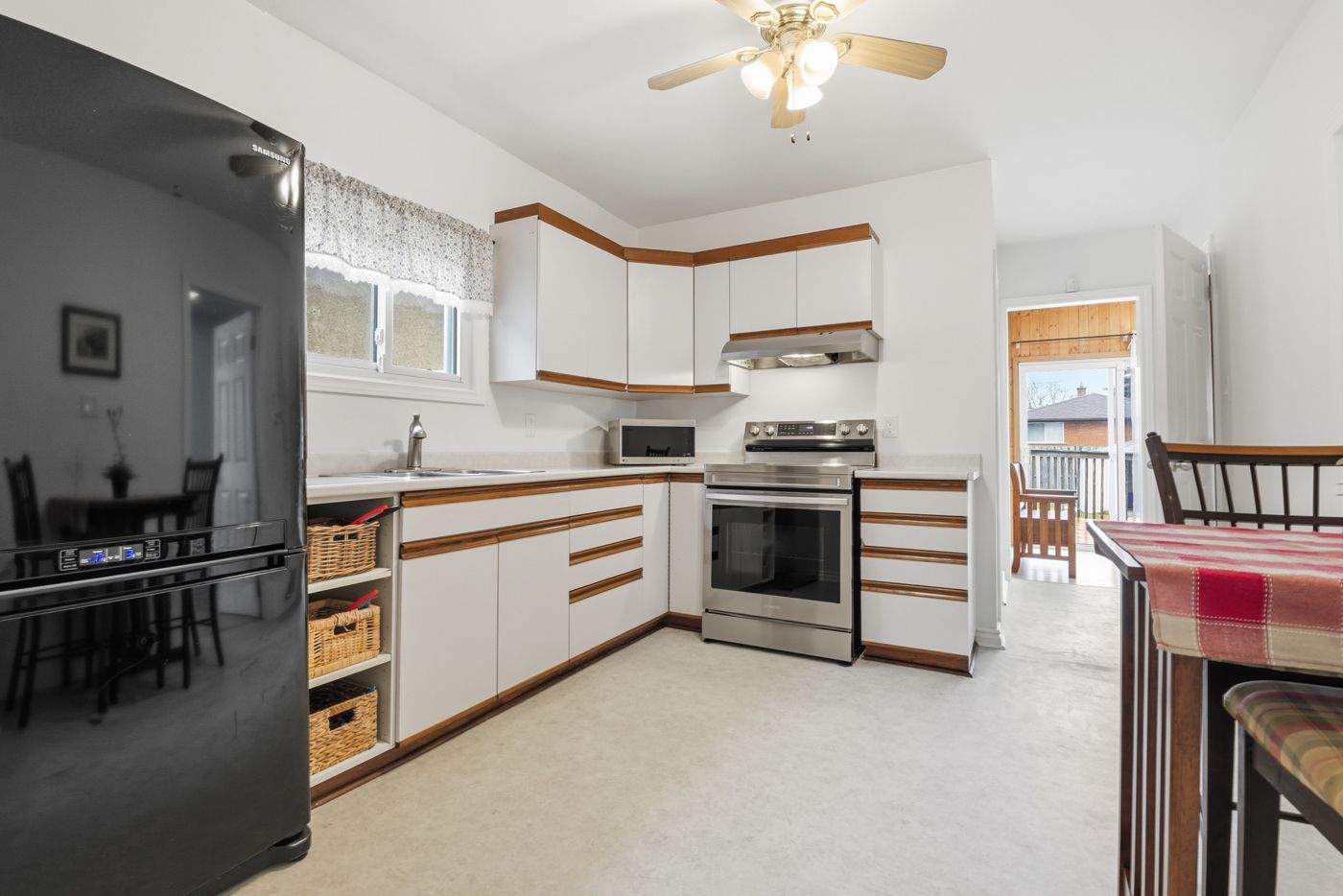 • Bright eat-in kitchen with new flooring and upgraded stainless steel appliances.