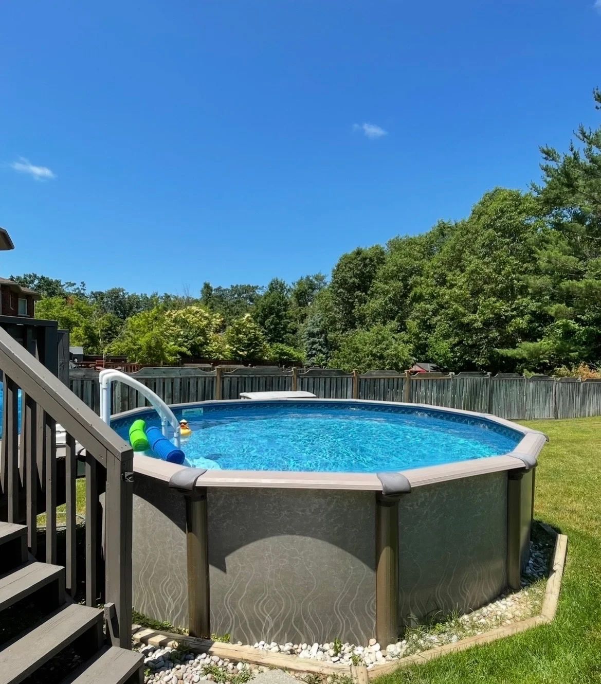 • Private rear yard with an above-ground pool and spacious deck for entertaining.