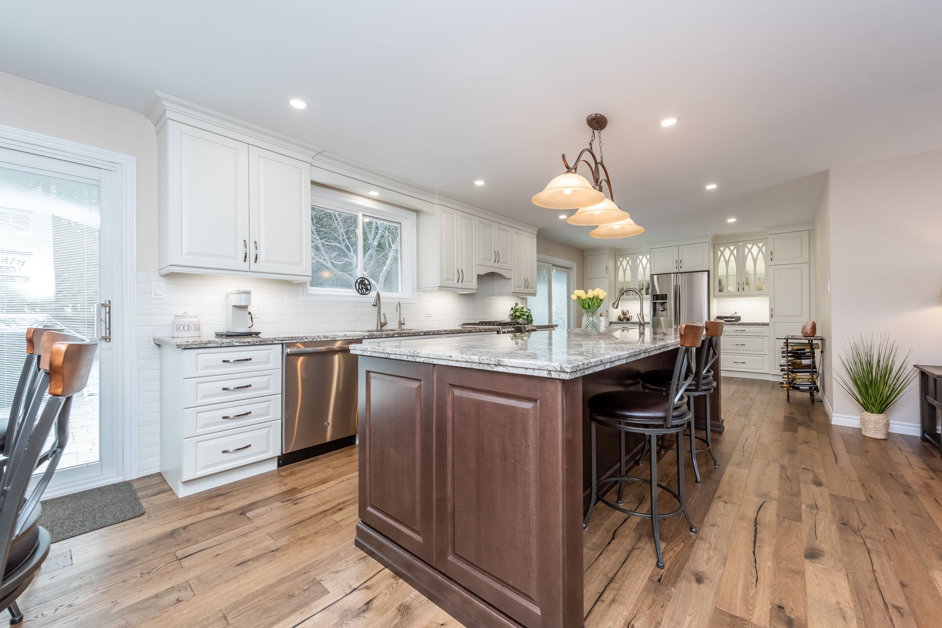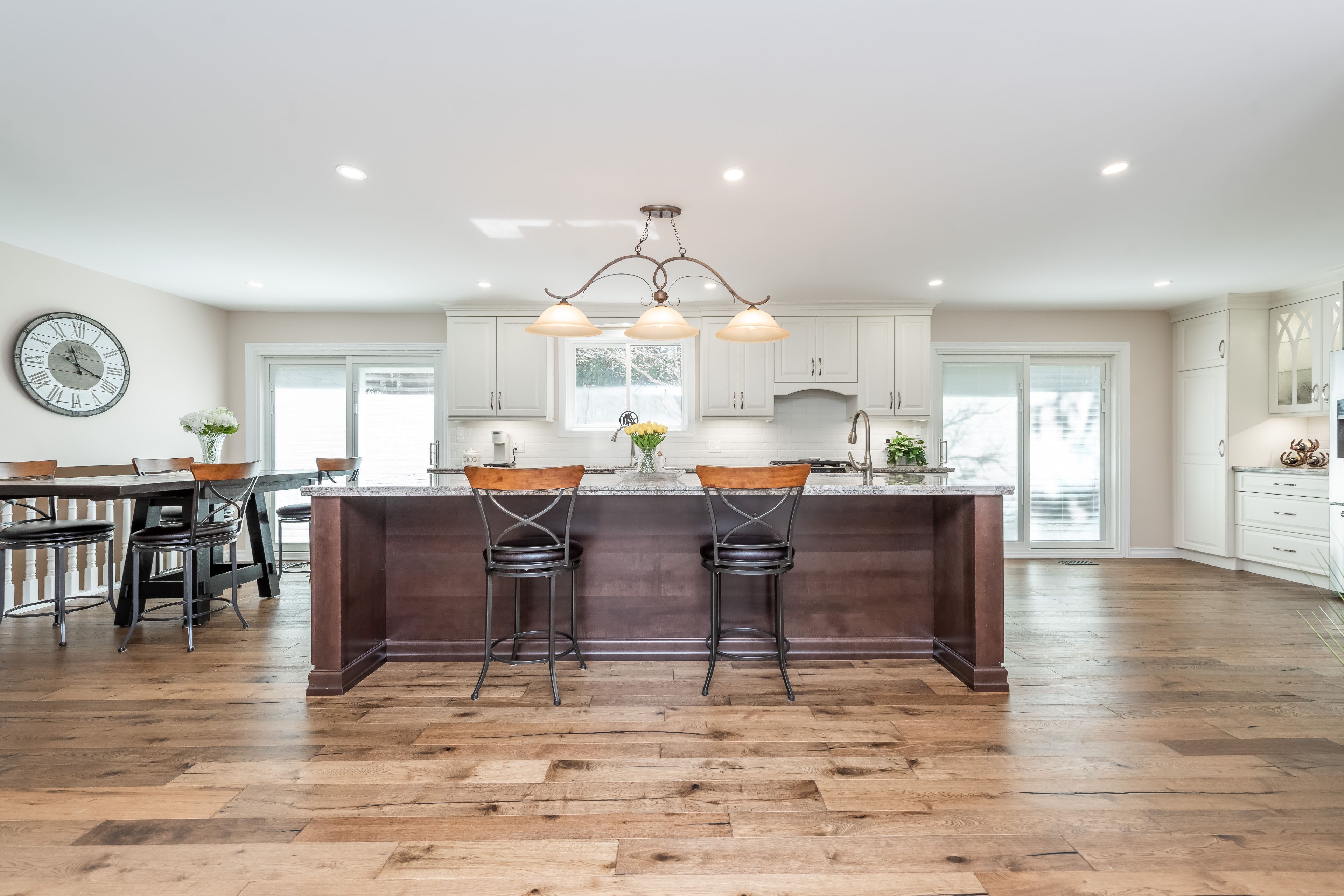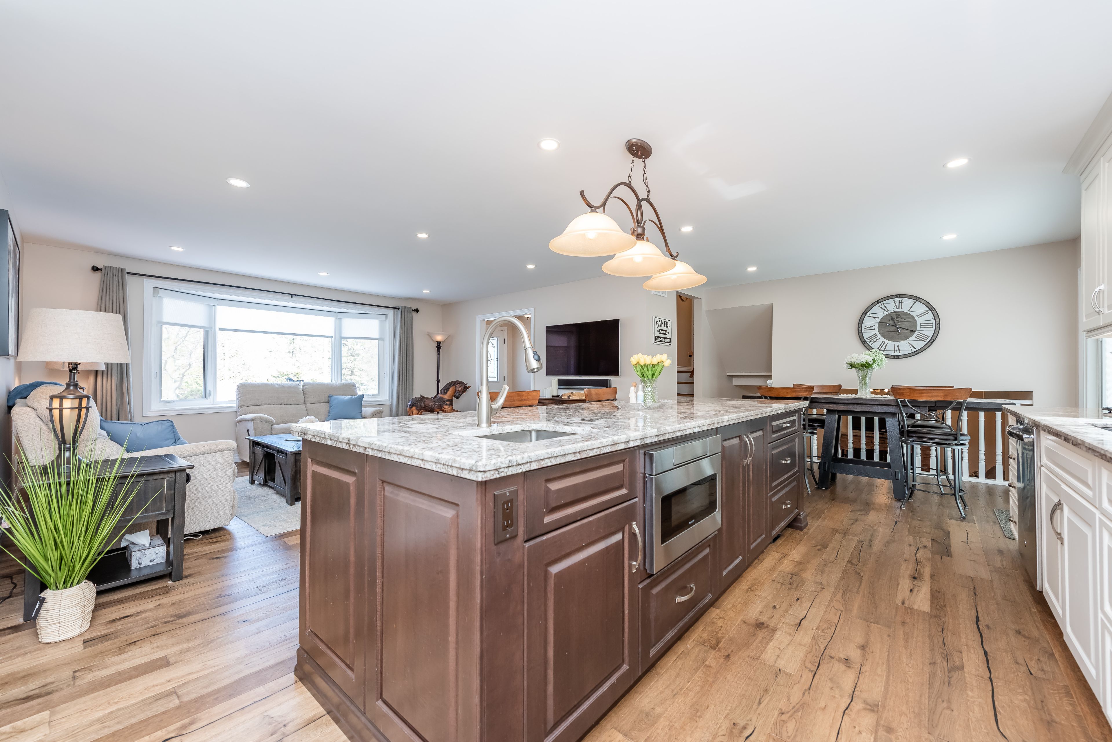 • Modern open concept layout with a spacious kitchen and large island.