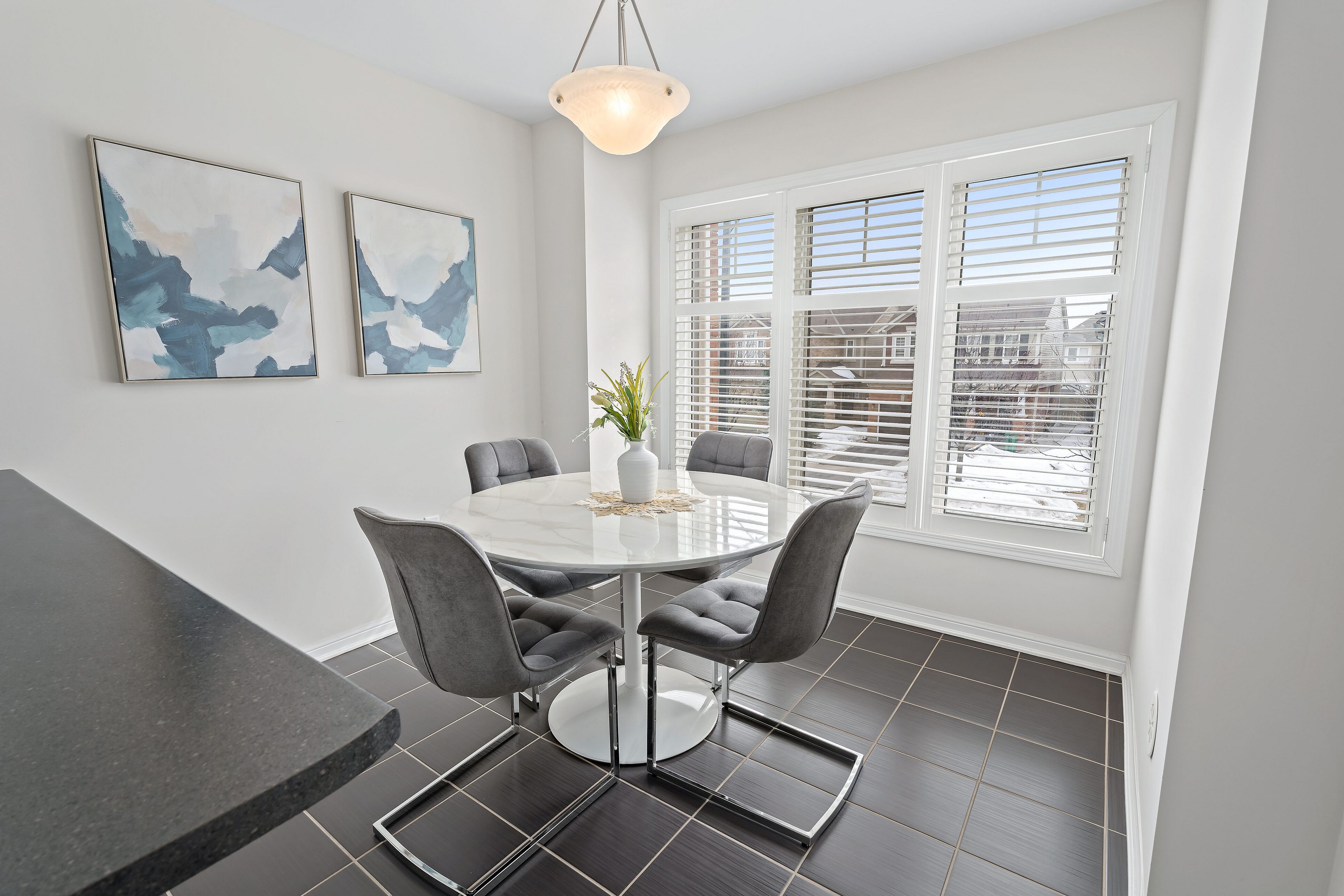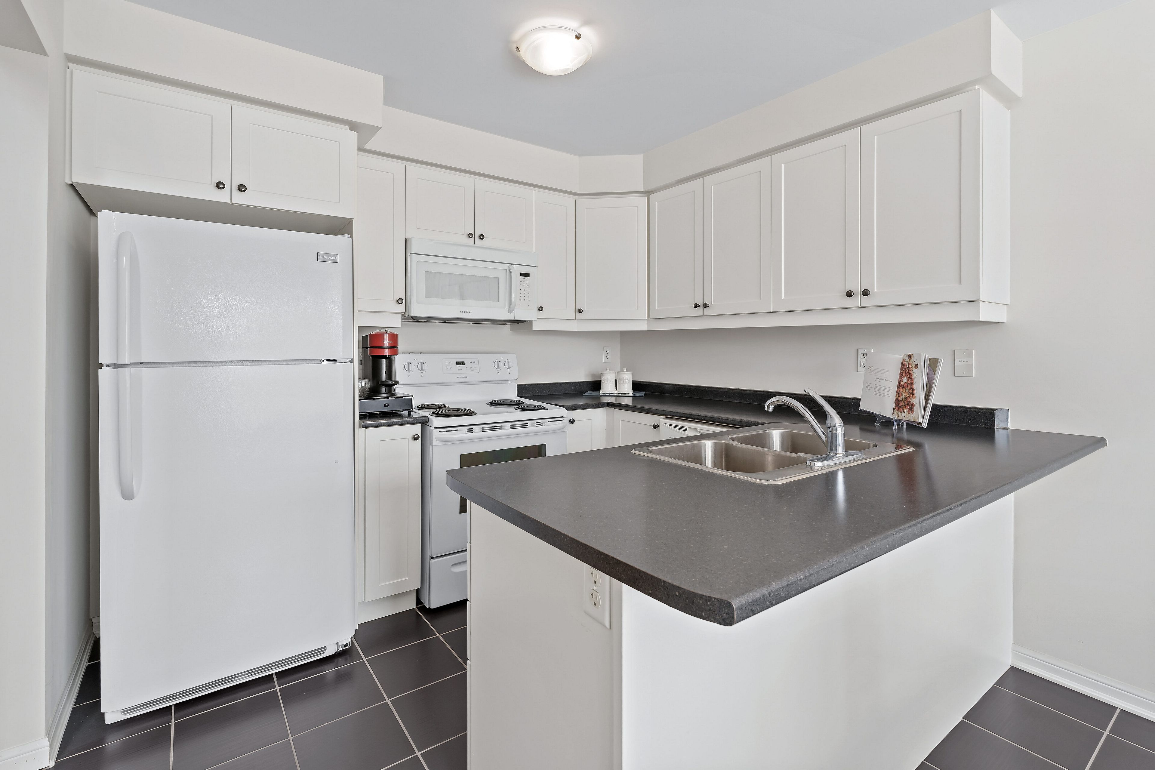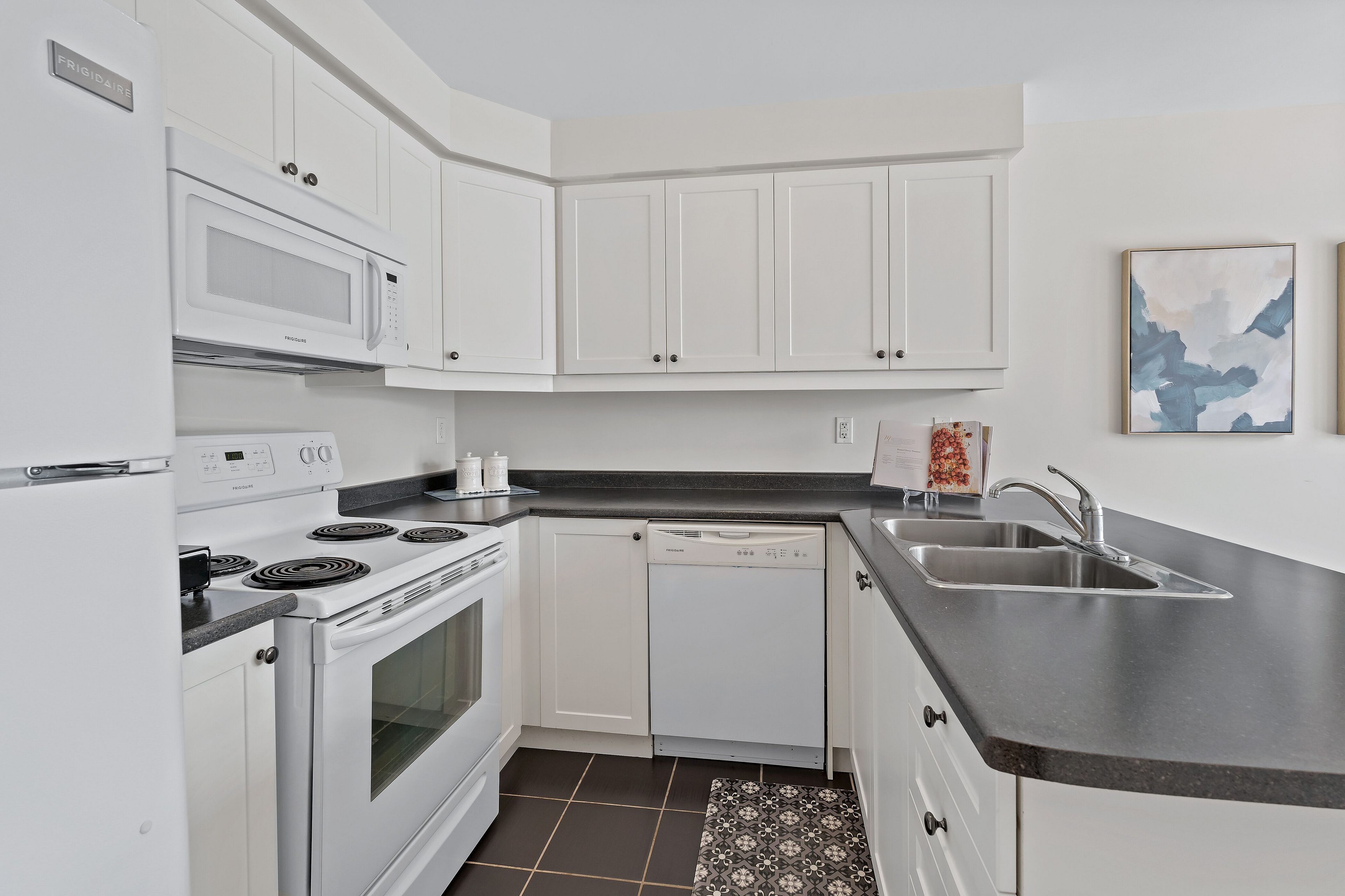 • Functional eat-in kitchen with ample counter space and storage.