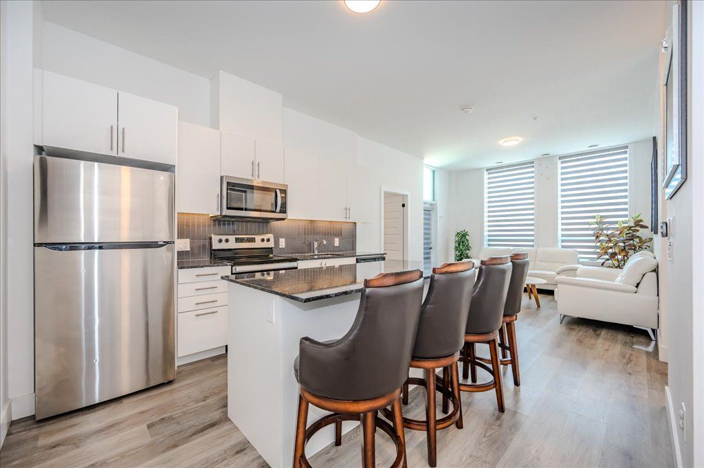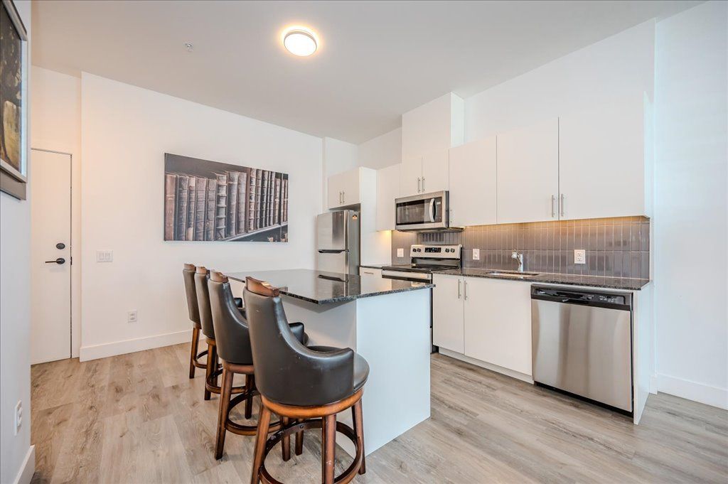• Sleek kitchen featuring stainless steel appliances and central island.