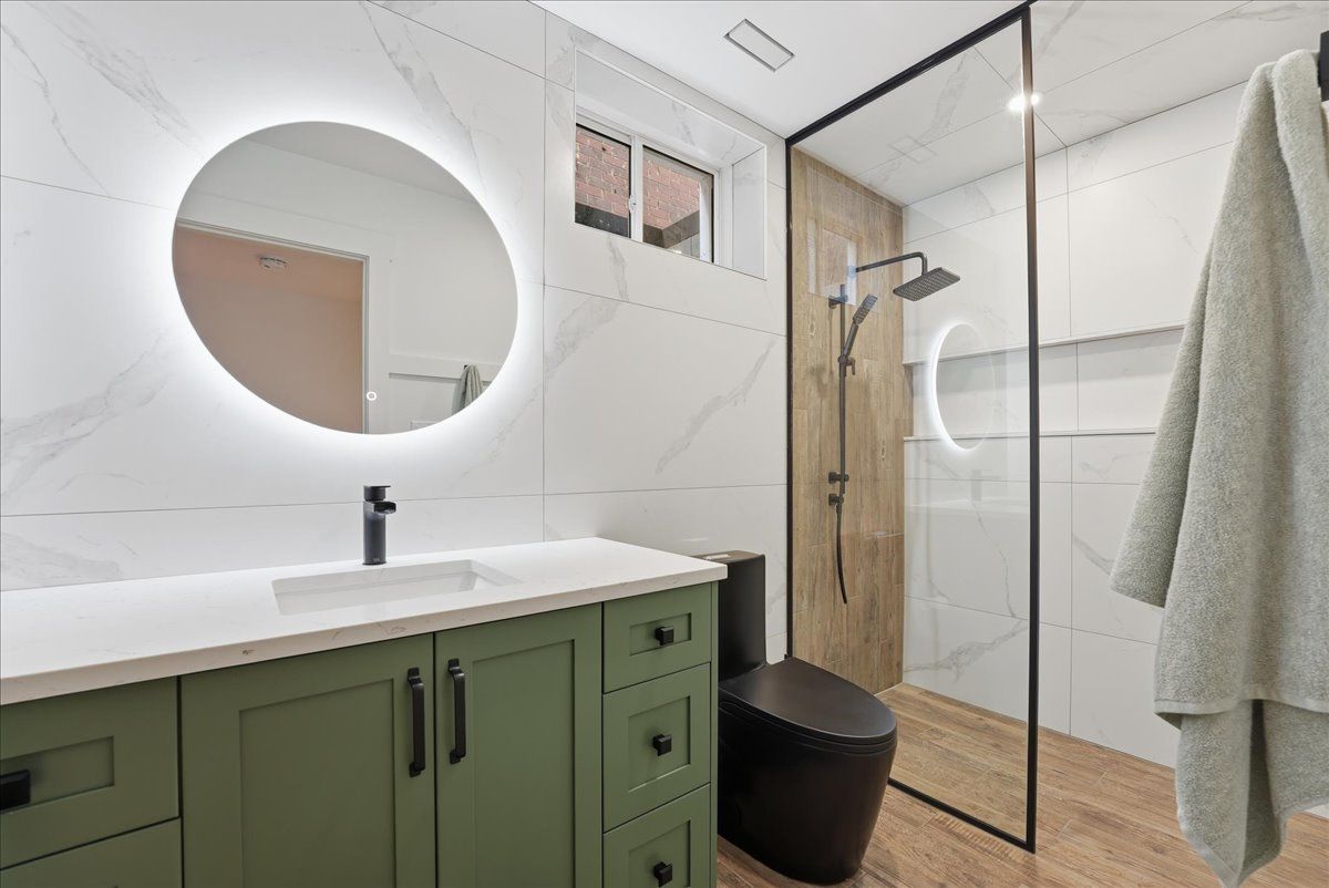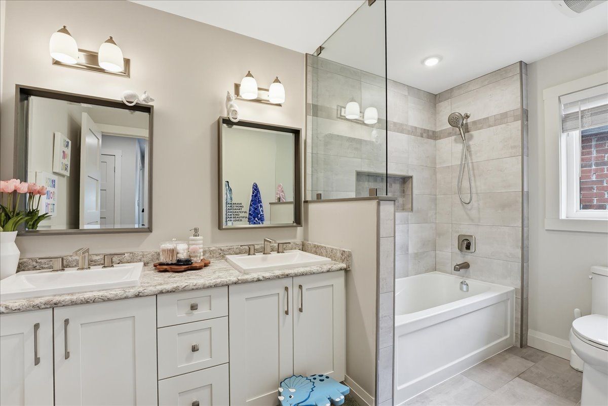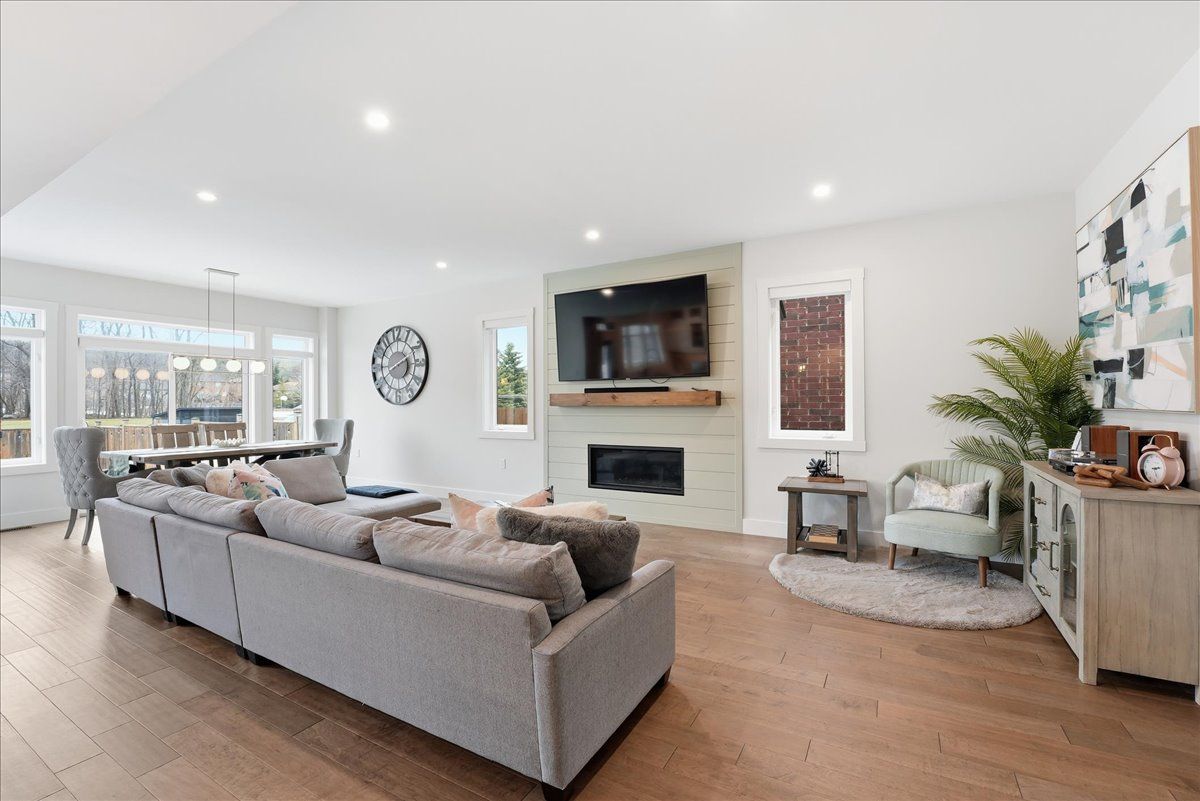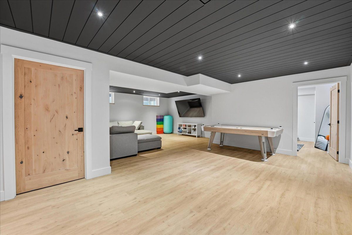 • Fully finished basement with a guest bedroom and cozy family area.