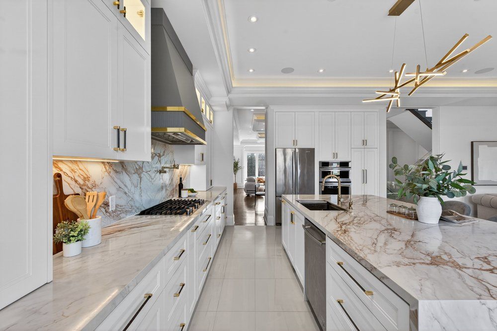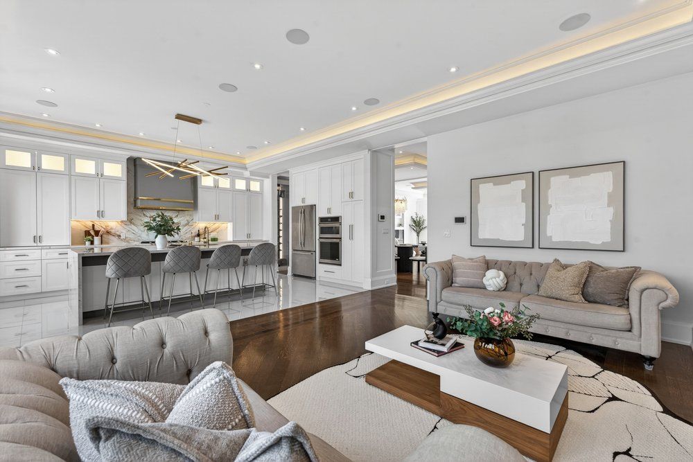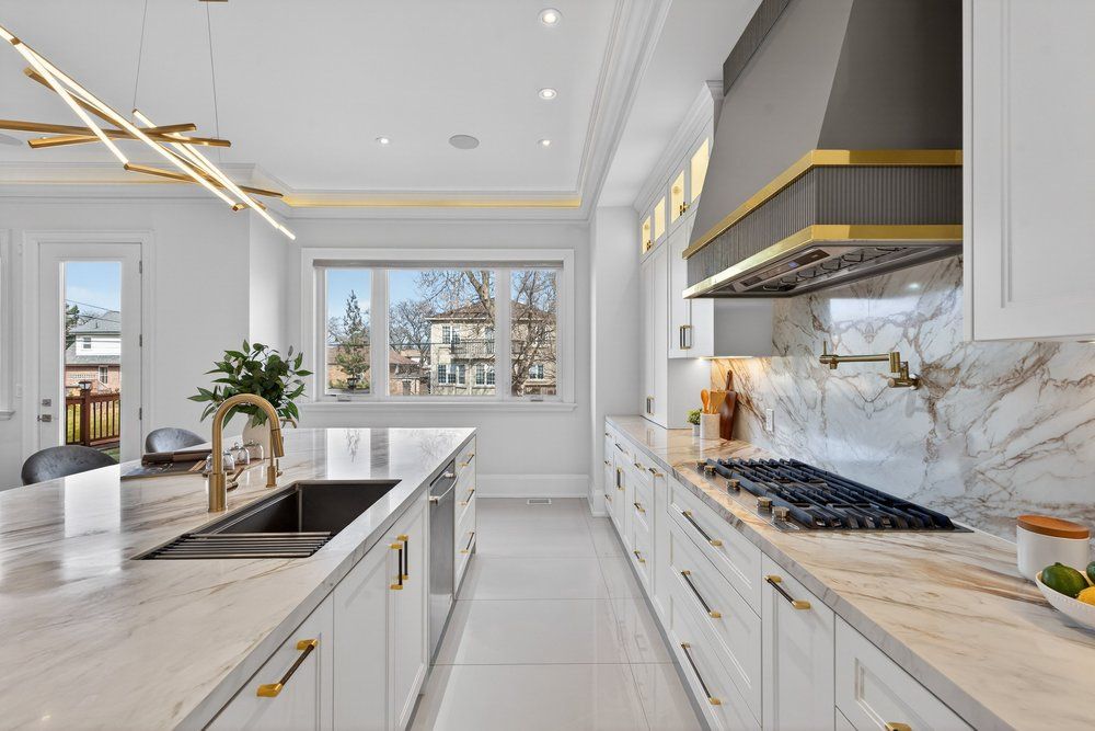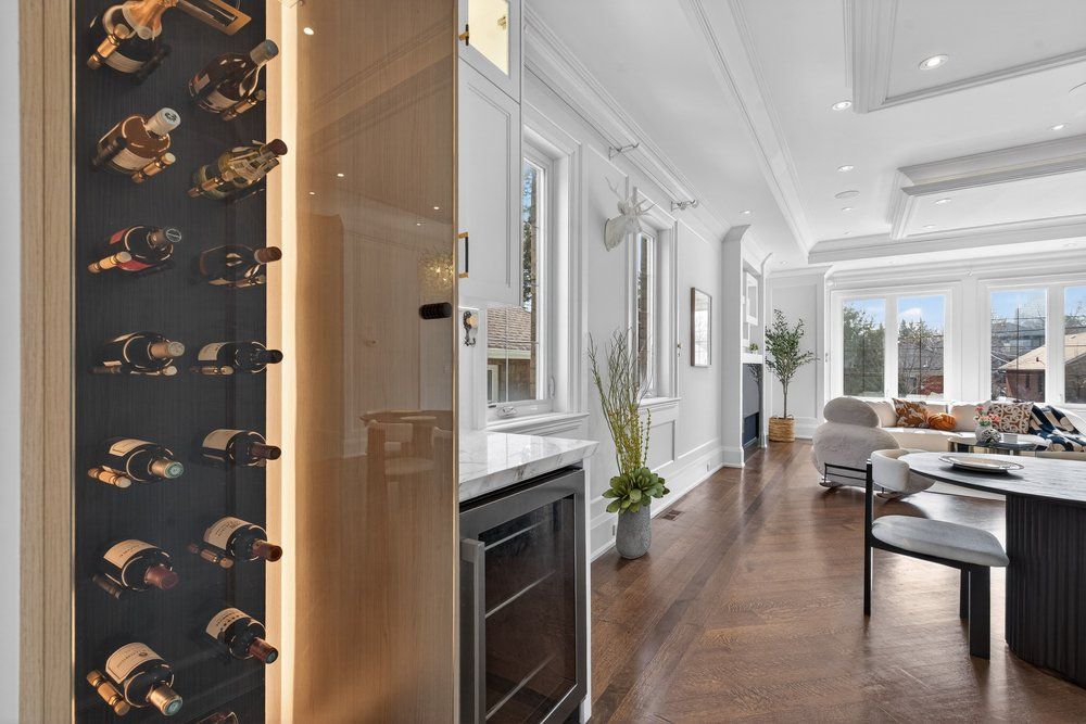 Stunning c/b home offering over 4,500 sqft of luxurious living spcs. This residence pairs timeless craftsmanship w/modern functionality. *enter through a sunlit 14' foyer with glass railing and a large built-in closet. The main floor offers an expansive, seamless flow. The south-facing formal living room features a large picture window/fireplace, overlooking the dining area.**the spectacular open-concept layout enhanced by drop ceilings with hidden lighting, bespoke chandeliers, mouldings, pot lights for timeless elegance. Refined dining area with serving bar(2025) & a bespoke wine display cabinet(2025). **chef's dream kitchen (2025): a french-style culinary showcase w/ massive waterfall island, italian porcelain countertops and backsplash, high-end built-in jenn-air appliances, pot filler and extensive mdf-paneled cabinetry with premium hardware-ample storage. The adjacent family room, warmed by a fireplace and new wall-mounted shelving, opens through large windows to an expansive wooden deck-perfect for seamless indoor/outdoor living. A serene 11' floor-to-ceiling walnut-paneled office with coffered ceiling occupies a quiet corner of the home **custom staircase with glass balustrade rises beneath a skylight to the 2nd flr primary suite - a tranquil retreat framed by a large picture window, with a cozy fireplace, substantial walk-in closet and a spa-calibre 6pcs ensuite showcasing a freestanding soaker tub and expansive window. Wonderfully-appointed/good size of bedrooms boasts large window & its own b/i large closet w/organizer. Functional 2nd floor laudyrm**prof. Finished high ceiling basement with a w/o. It bright and accommodating, large rec room with wet bar, two walk-up exits(to backyard & to garage) and a nanny/in-law suite with a w/i closet.*prof. Landscaped bkyd offering a serene oasis, wonderful under-deck spcs for entertaining. An exceptional value in the neighbhd!