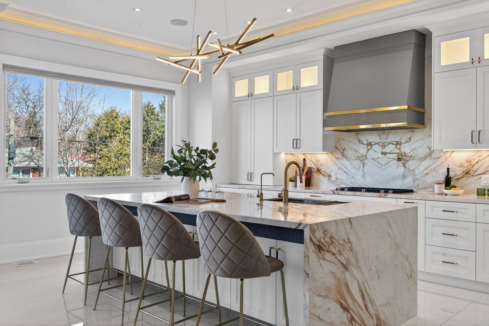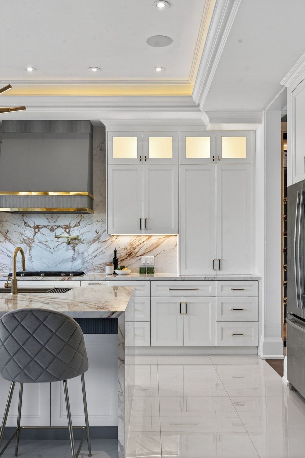 • Chef's kitchen features high-end appliances and an island.