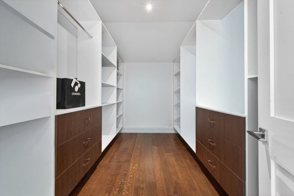 • Bright foyer with glass railing and built-in closet.