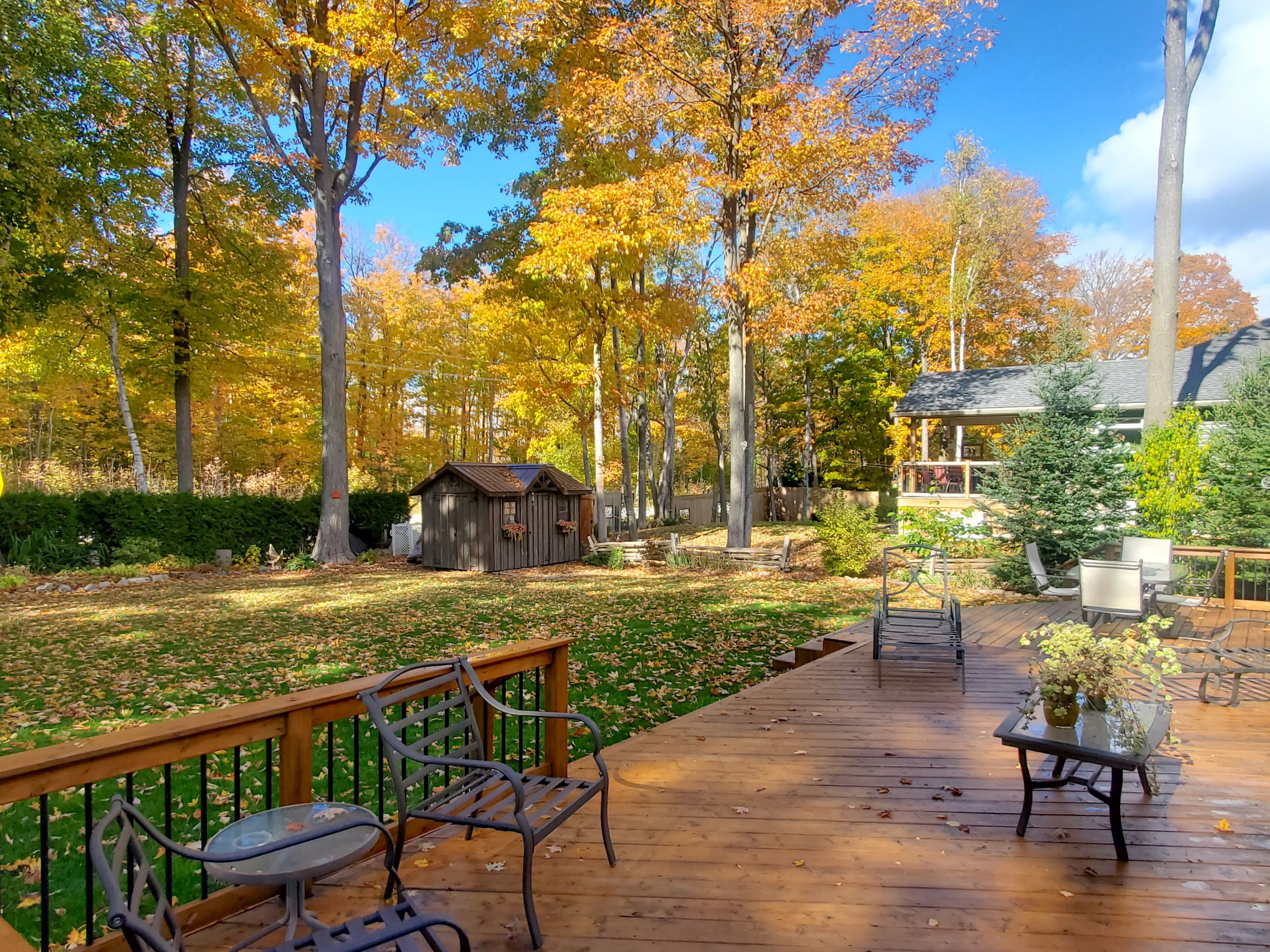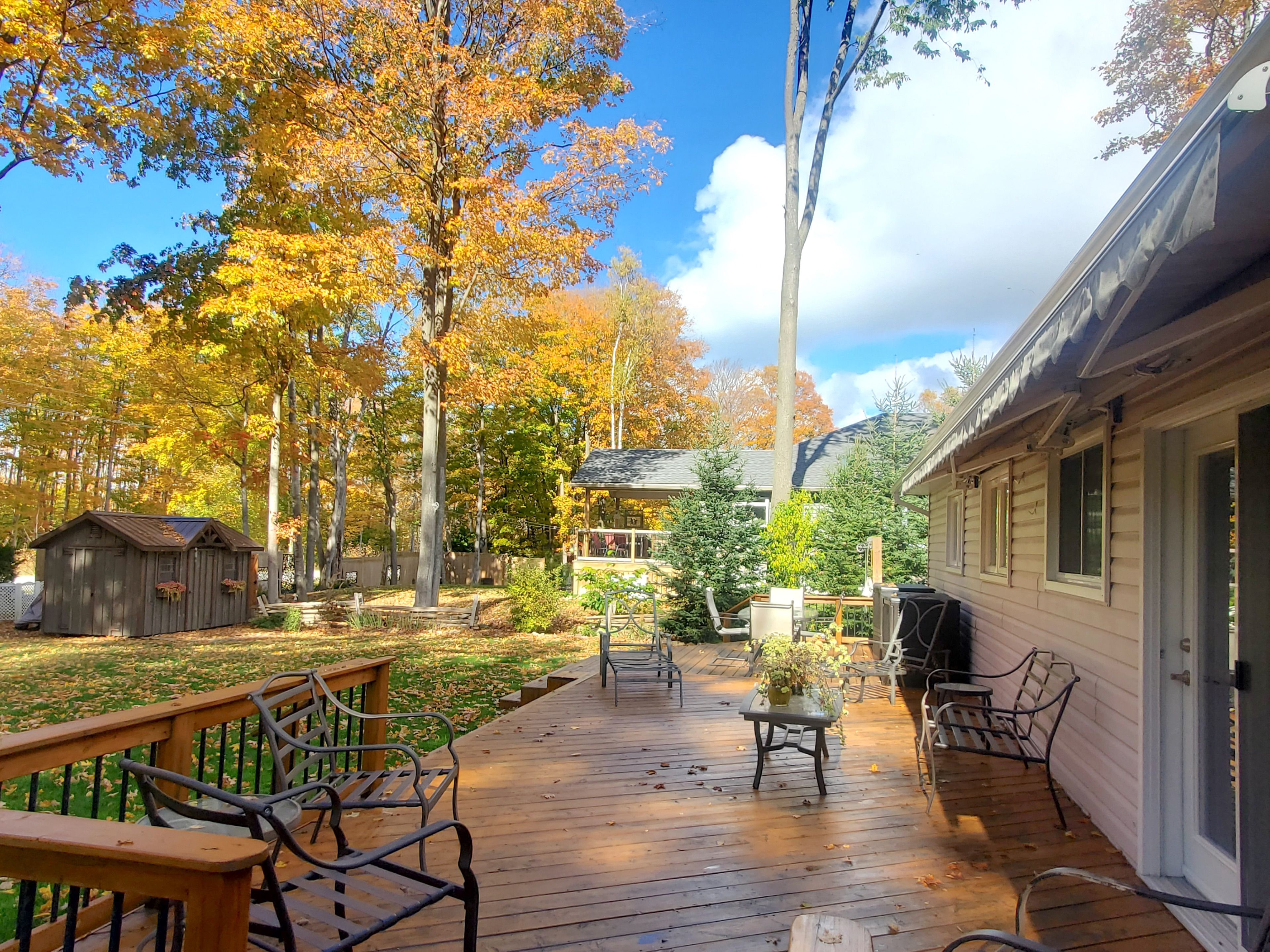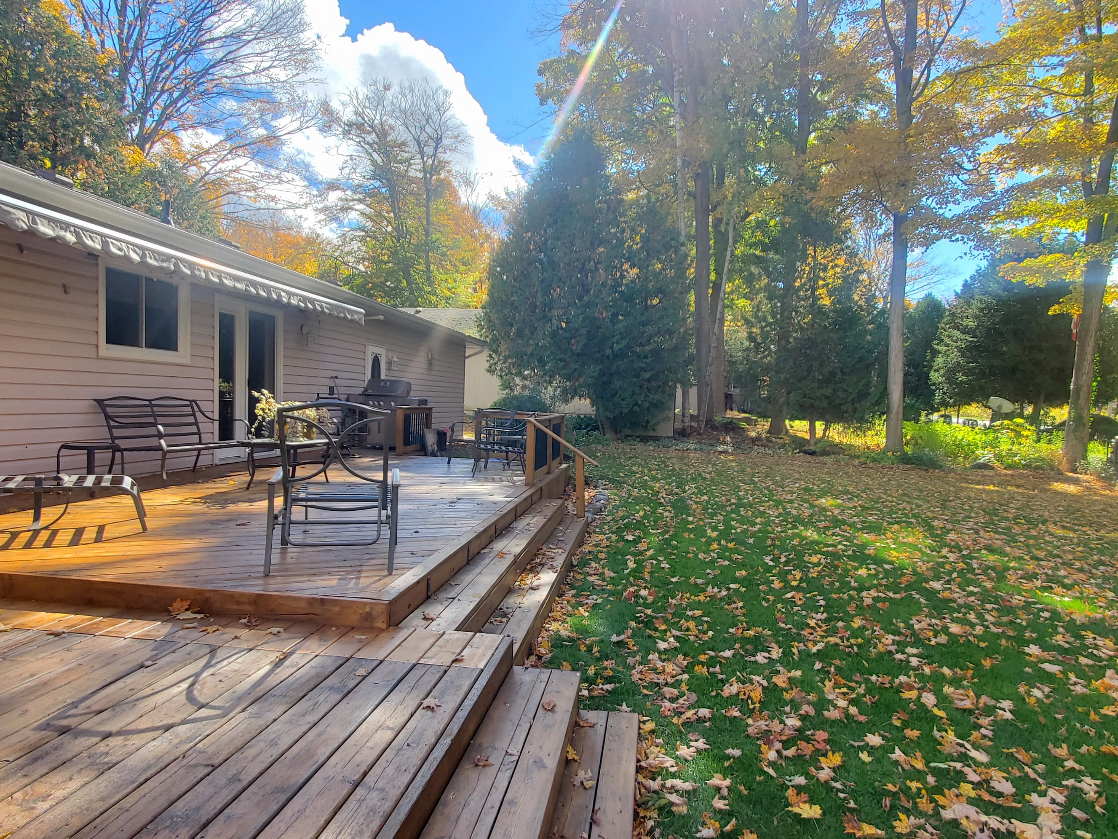 • Large backyard deck with electric awning and natural gas BBQ hookup.