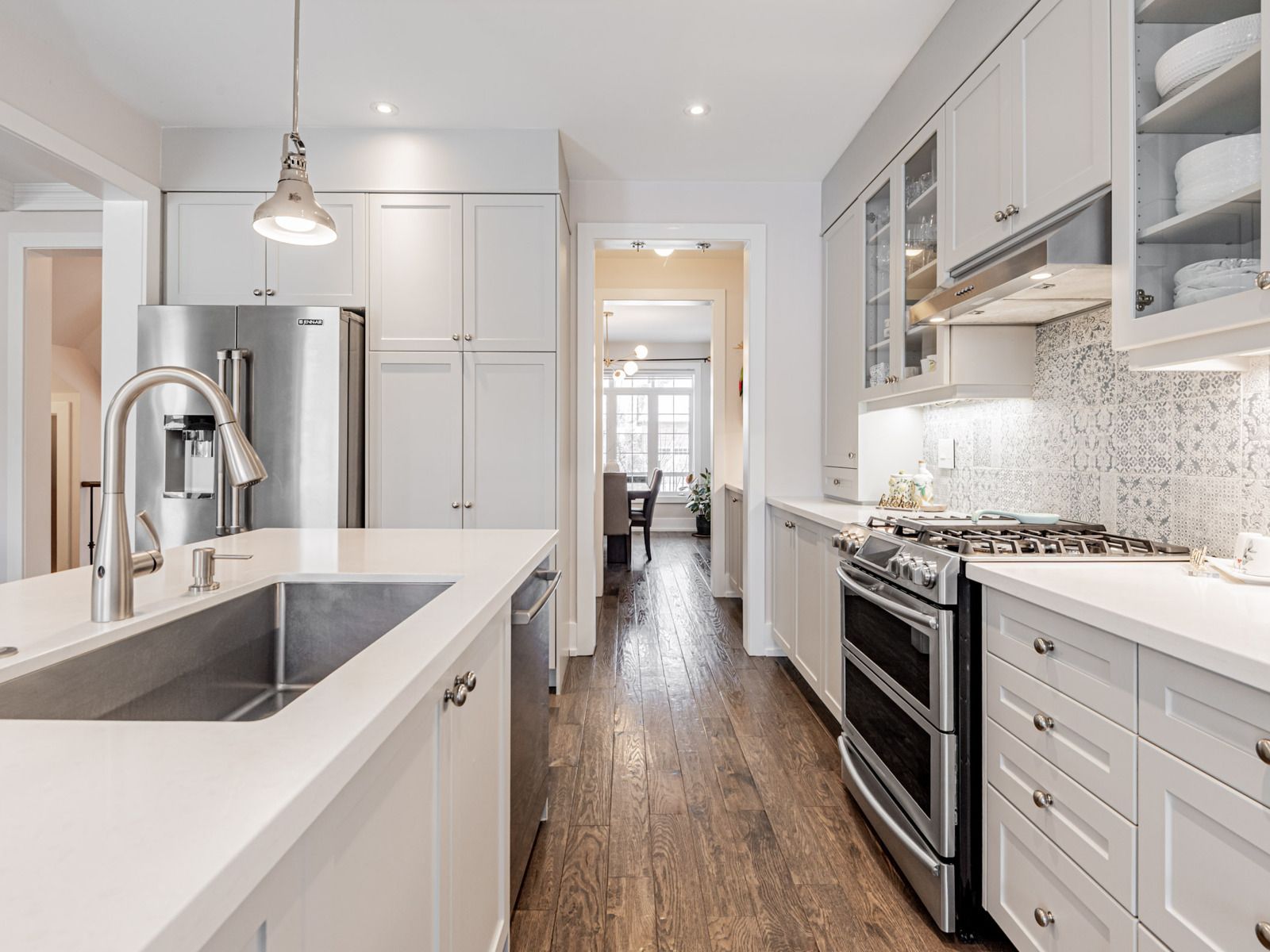 • Gourmet kitchen featuring stainless steel appliances and a large island.