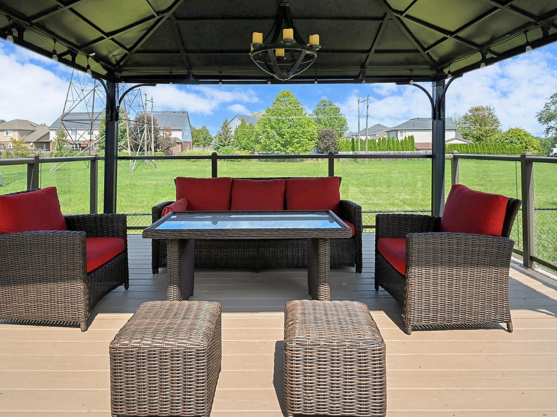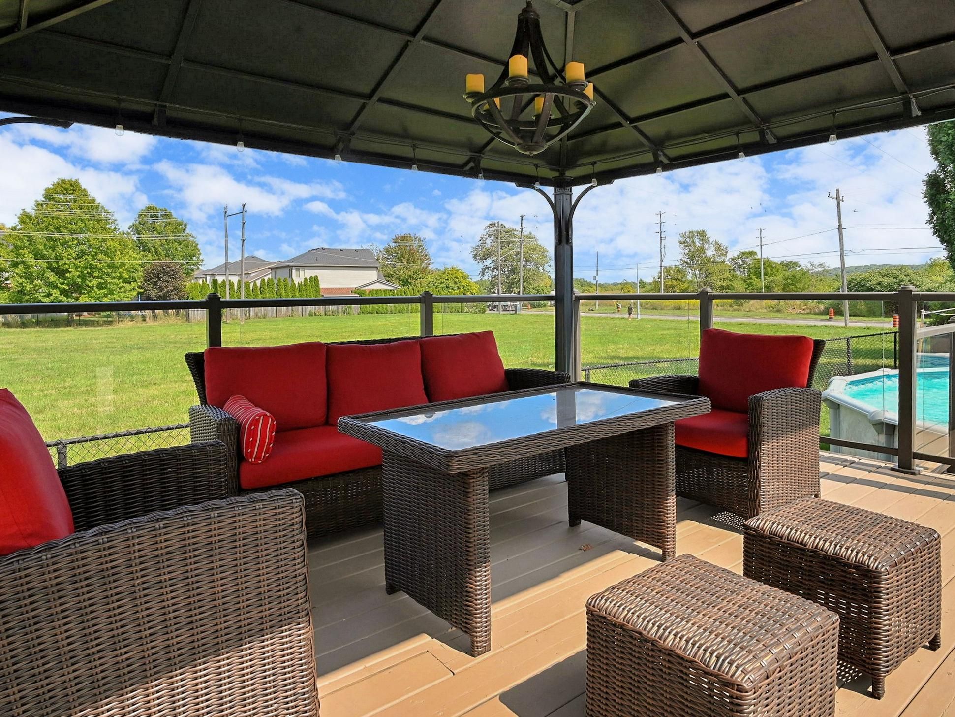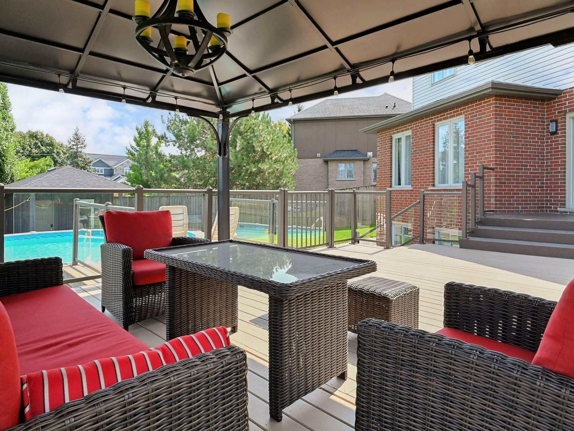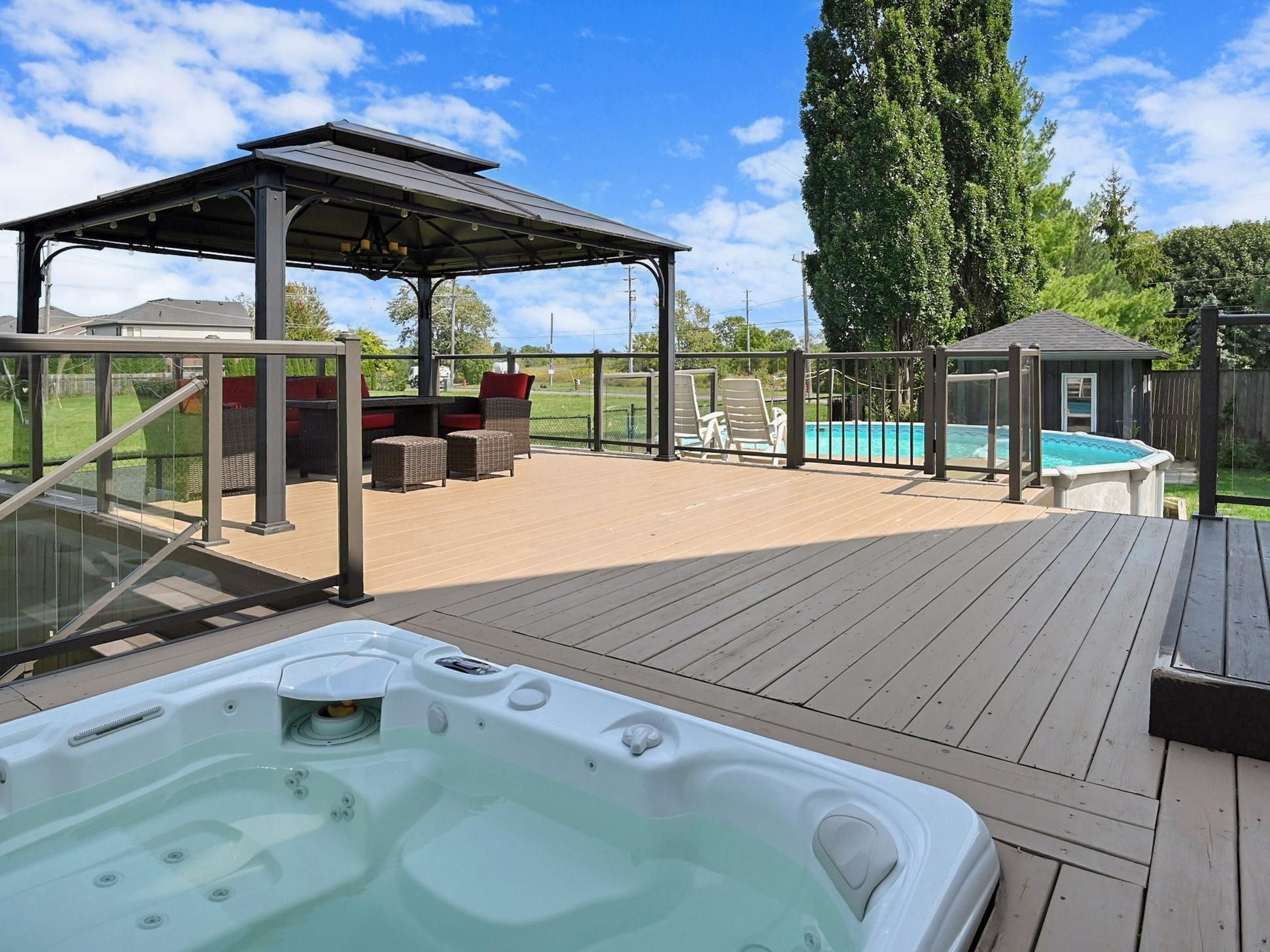 • Outdoor area includes a deck, gazebo, saltwater hot tub, and solar heated pool.