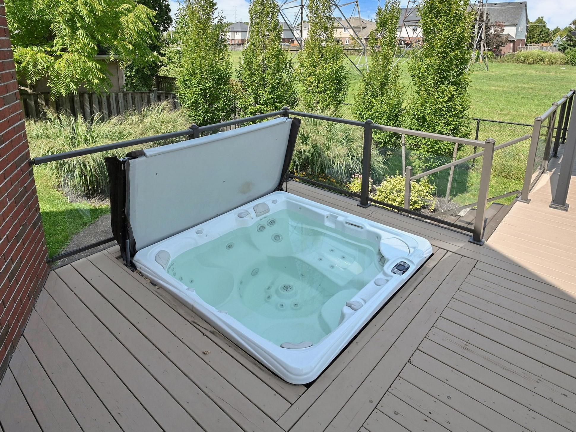 Welcome to this upgraded 4+1 bedr 5 bath stunning home with over 3000 sq. Ft, perfectly positioned on a oversized pie shape lot backing onto green space, walkout to backyard with large deck/gazebo/saltwater hottub/solar heated pool/pro landscaped area ,fully fenced & gate to open greenspace. Inside, the home boasts a bright and spacious layout with newly finish antique farmhouse pine planks on main flr & newer floor on upper & lower levels. Newer modern kitchen is a chefs delight, showcasing stainless steel appliances, stunning massive countertops/ centre island, private main flr den,oversized sep. Dining rm with pot lights & gorgeous chandelier, playrm on the split 2nd flr, double door entry to large master with 5pc ensuite. Bsmt features a sep. Entrance, an oversized bedroom and bathroom, making it ideal for a private suite with extra income potential. This meticulously maintained home is truly move-in ready. Conveniently located close to schools, parks, shopping, and 2km to block u .