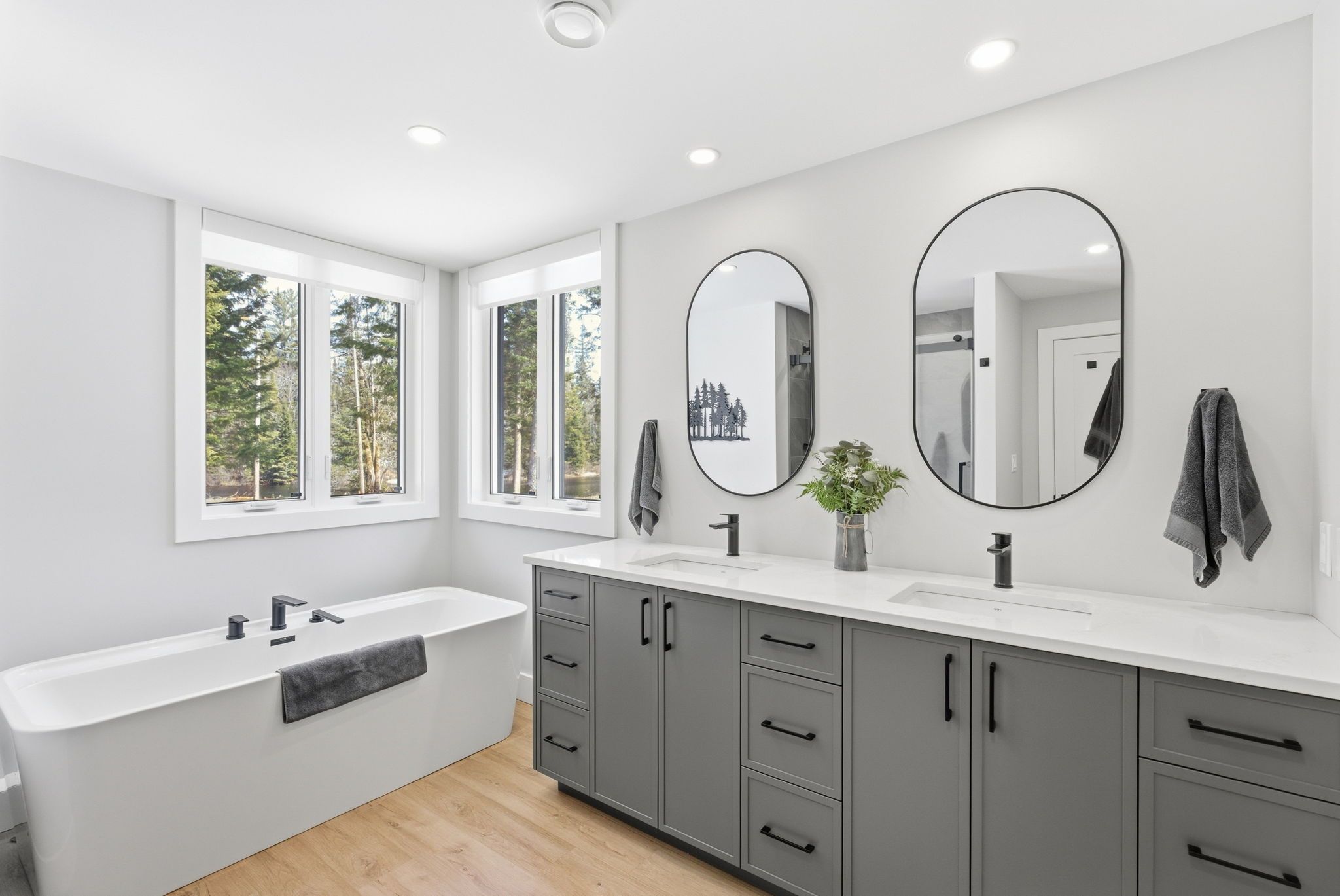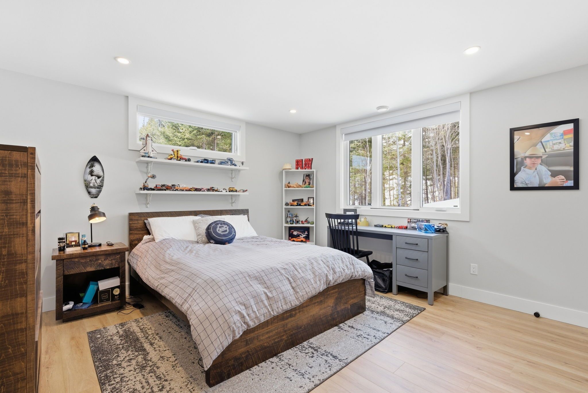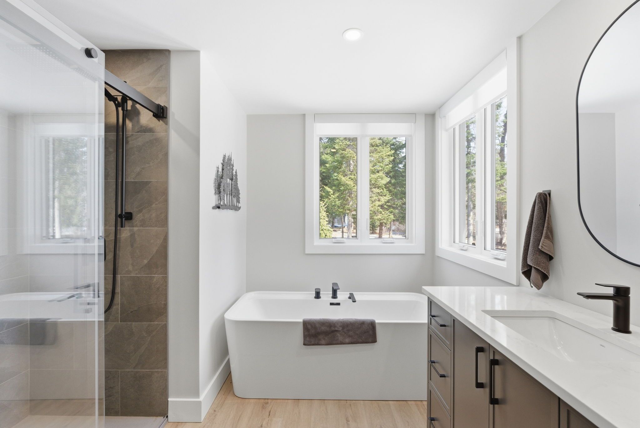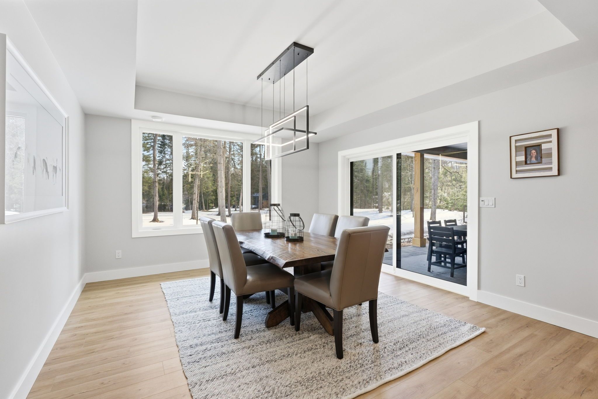 Set along a calm stretch of the north branch of the muskoka river, this newly built, single-level ranch style bungalow offers a functional layout, strong privacy, and a setting that's easy to enjoy year-round. Situated on one of the widest sections of the river along this stretch, between two sets of falls, there is plenty of space to enjoy the water safely, with the ability to boat locally and spend time at nearby balsam chutes. With gentle water flow, this section of the river is well-suited for both adults and kids to swim, making it ideal for family use. Built in 2025 and offering approximately 3,100 sq ft of living area, the home features 4 spacious bedrooms and 4 bathrooms. The layout is thoughtfully designed with the primary suite set on one side of the home with views of the water, and three additional bedrooms on the opposite side, providing separation and flexibility for families or guests. The main living area is bright and open, with a granite stone fireplace feature and a practical kitchen layout with a large island that includes ample cupboard and storage space, including a walk-in pantry. Radiant in-floor heating runs throughout the home, supported by propane forced air, central air conditioning, and on-demand hot water, and a generac backup generator for added peace of mind. Outdoor living has been well considered, with a dedicated entertaining area complete with propane bbq hookup, tv set up, and space to gather. The lot itself is predominantly level and well-treed, offering a high degree of privacy. A standout feature of this property is the two triple garages-a heated and air-conditioned attached garage with in-floor heat, plus a detached triple garage that is heated, insulated, and powered. A detached shed with power provides additional storage. Located on a municipally maintained year-round road between port sydney and bracebridge, this property is well suited for full-time living or a recreational retreat.