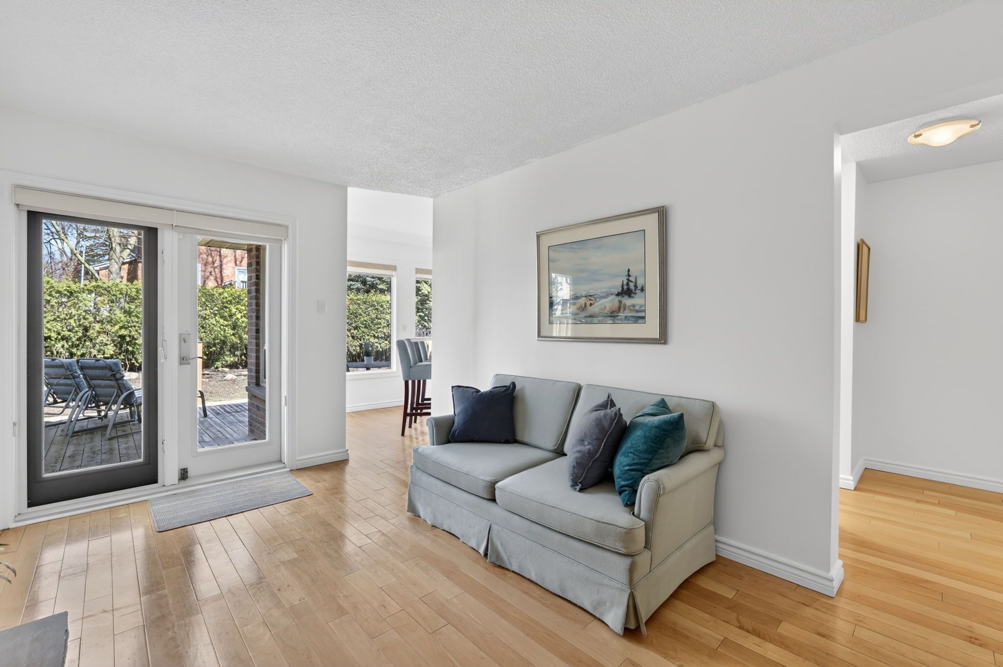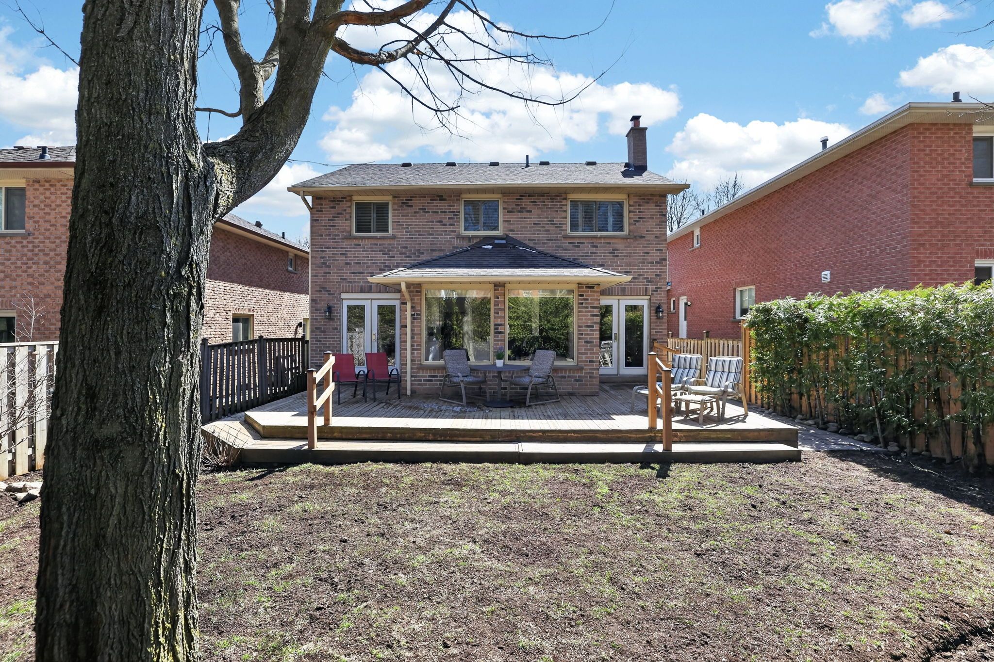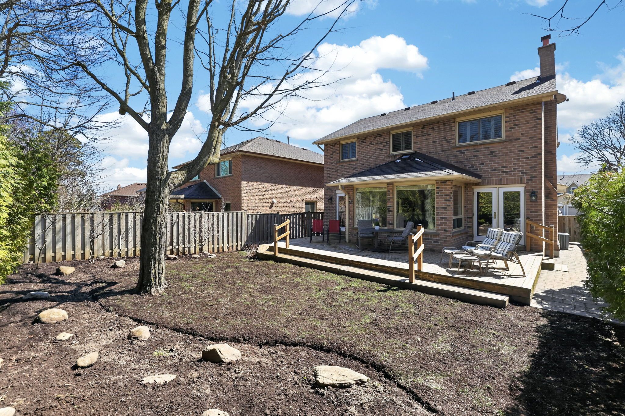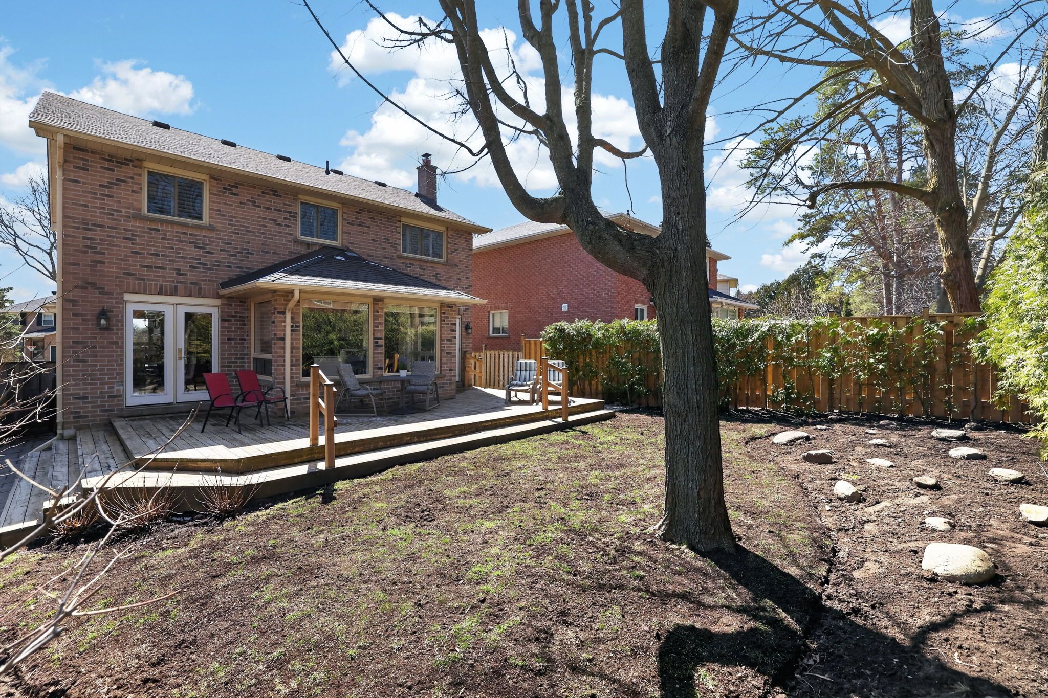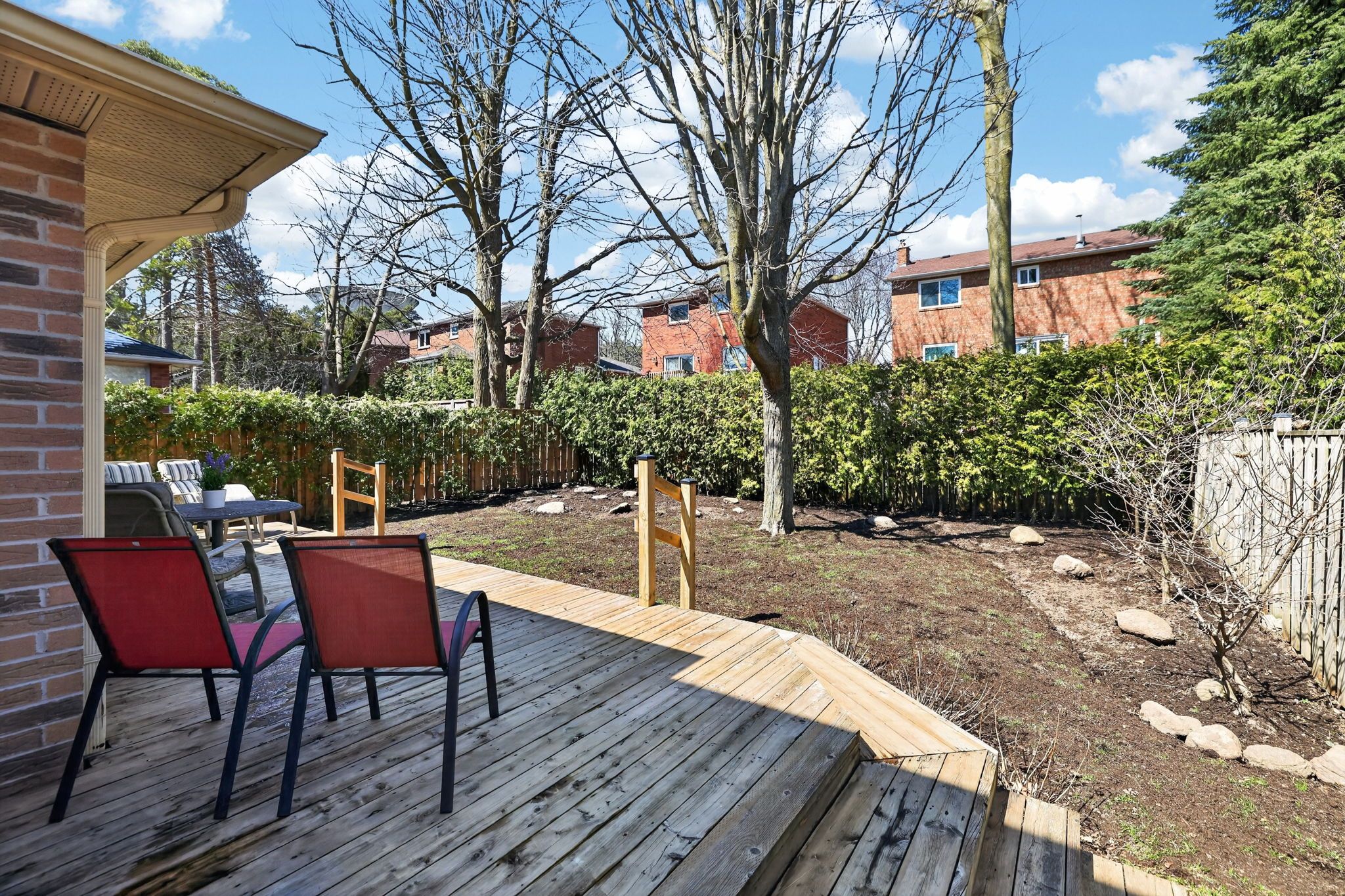 • Large sun-drenched deck overlooking a private, flat backyard.