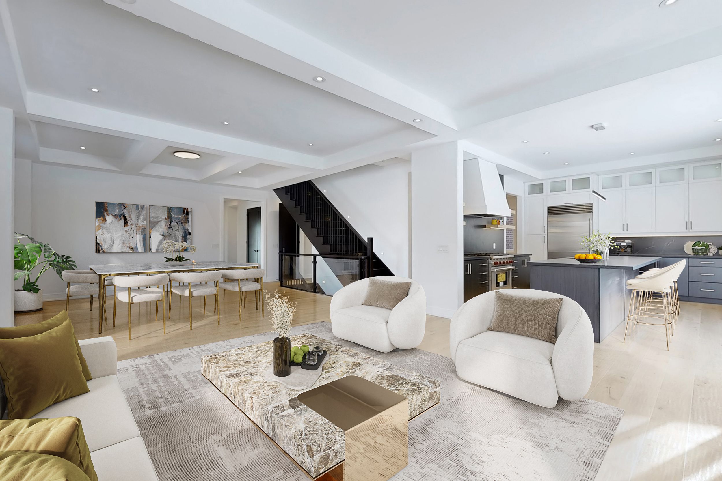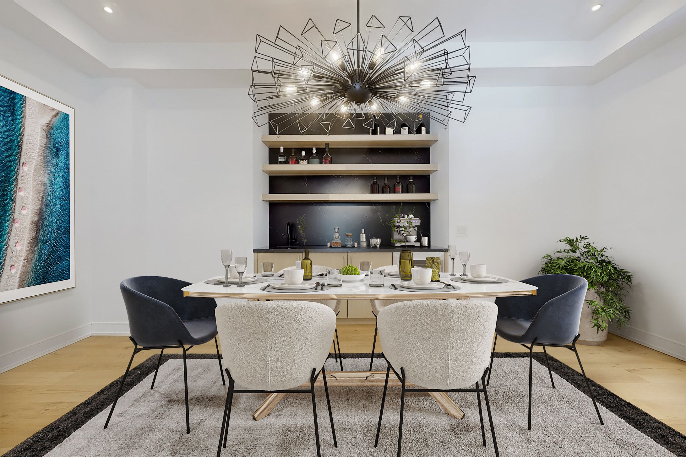 • Elegant formal dining room equipped with a wet bar and wine fridge.