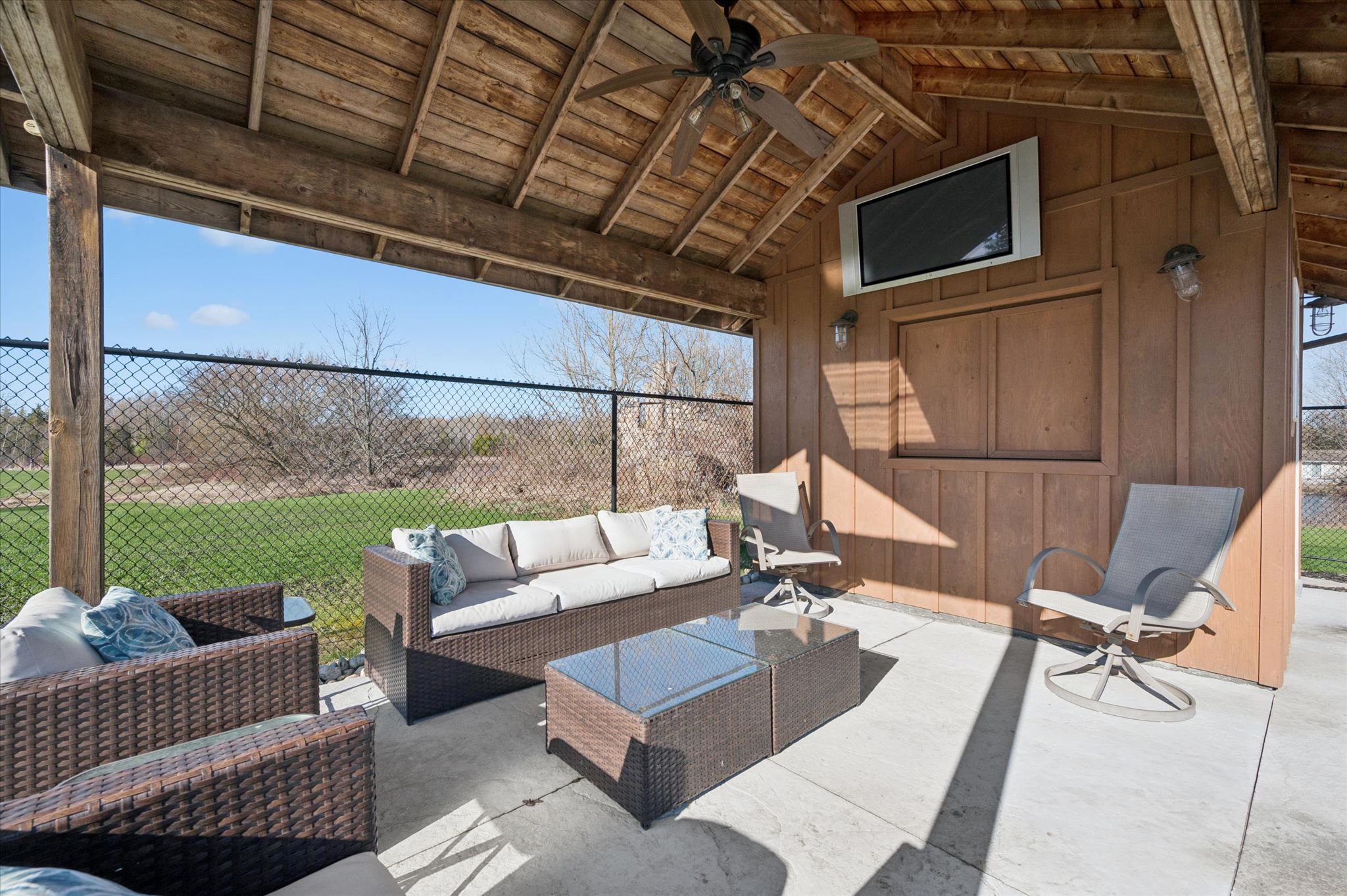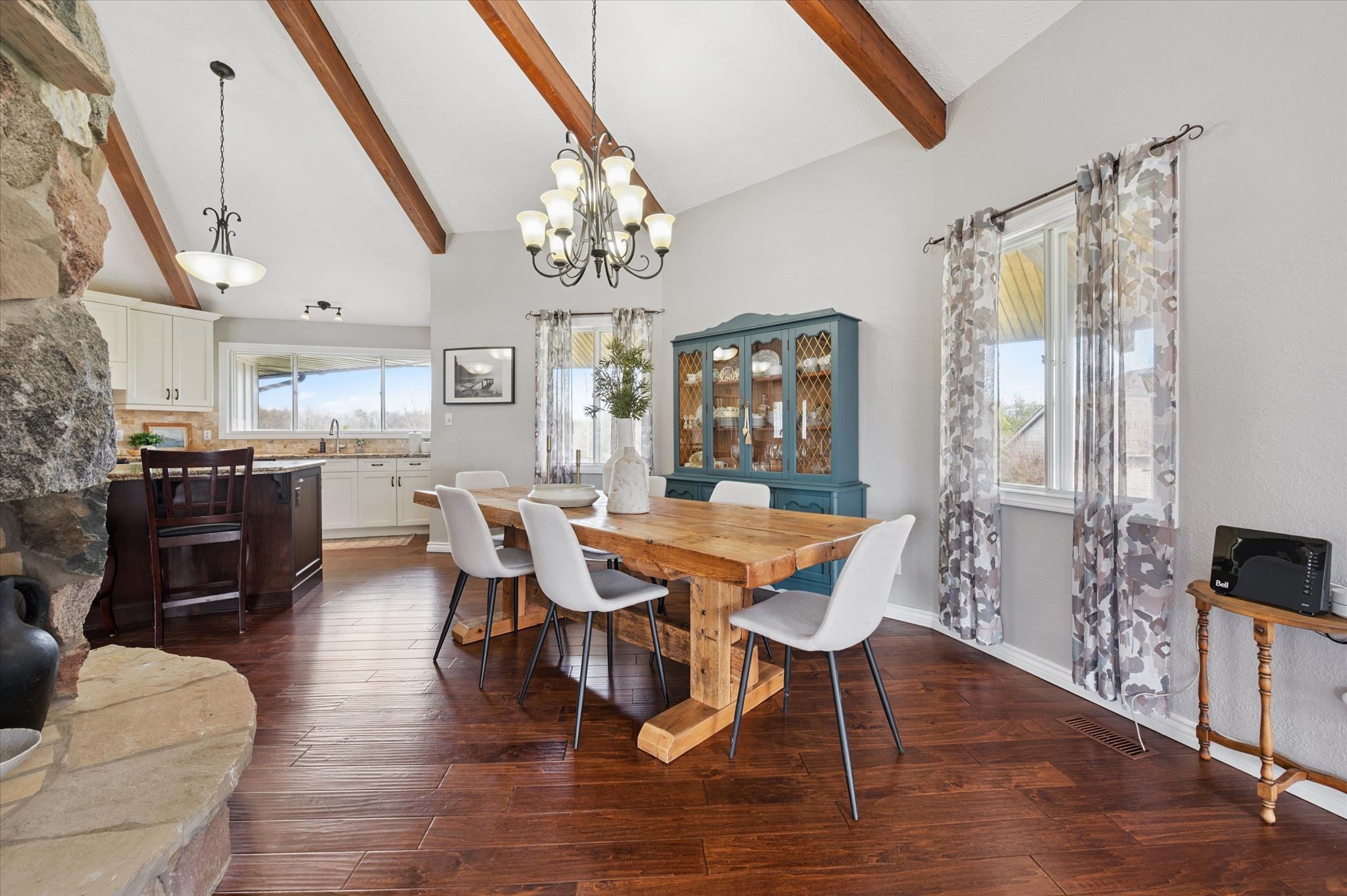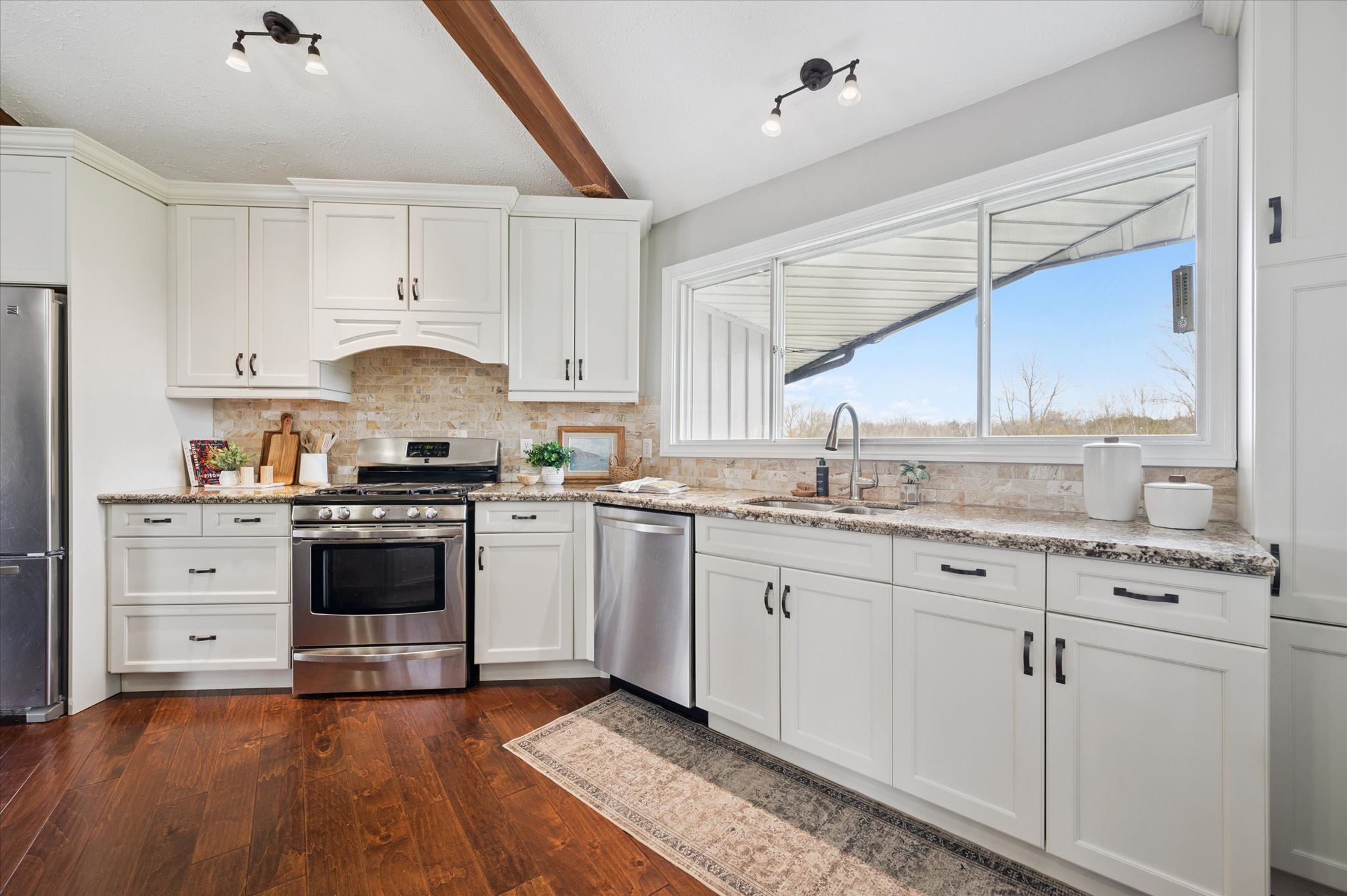 • Detached garage and shop offer utility for vehicles and hobbies.