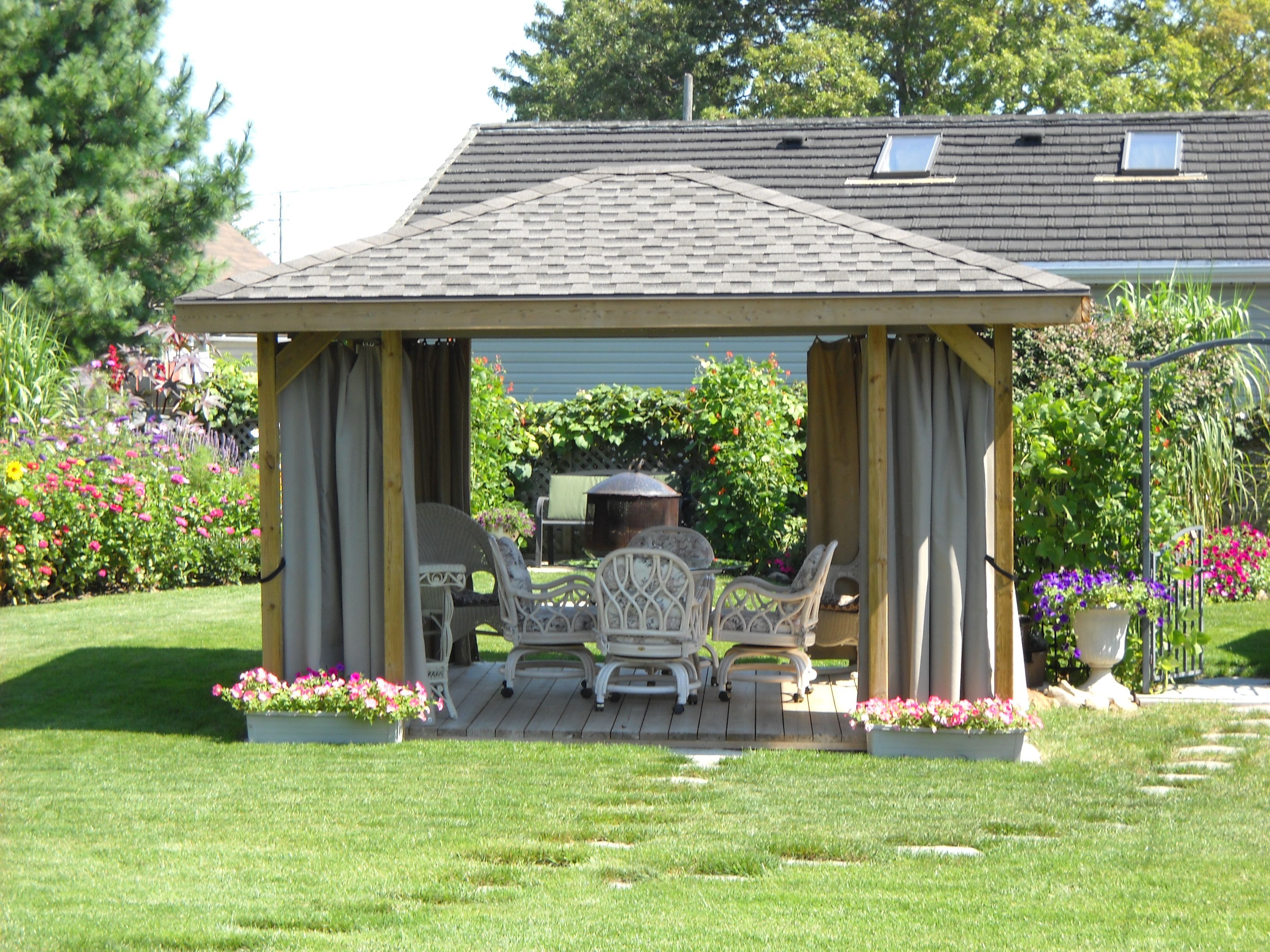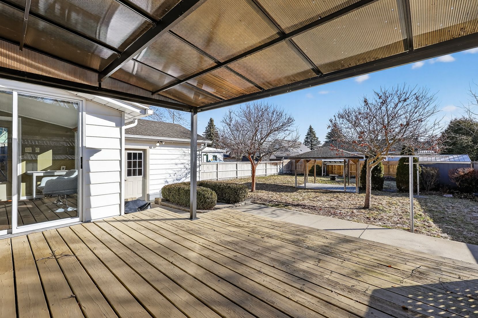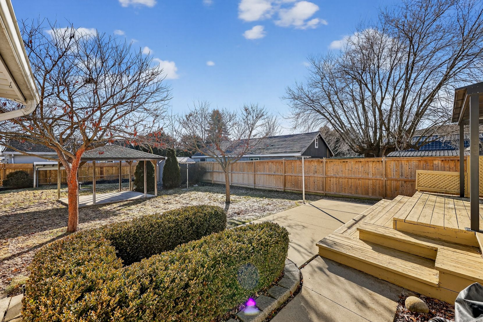 • Fully fenced backyard with a gazebo, gardens, and an automatic sprinkler system.