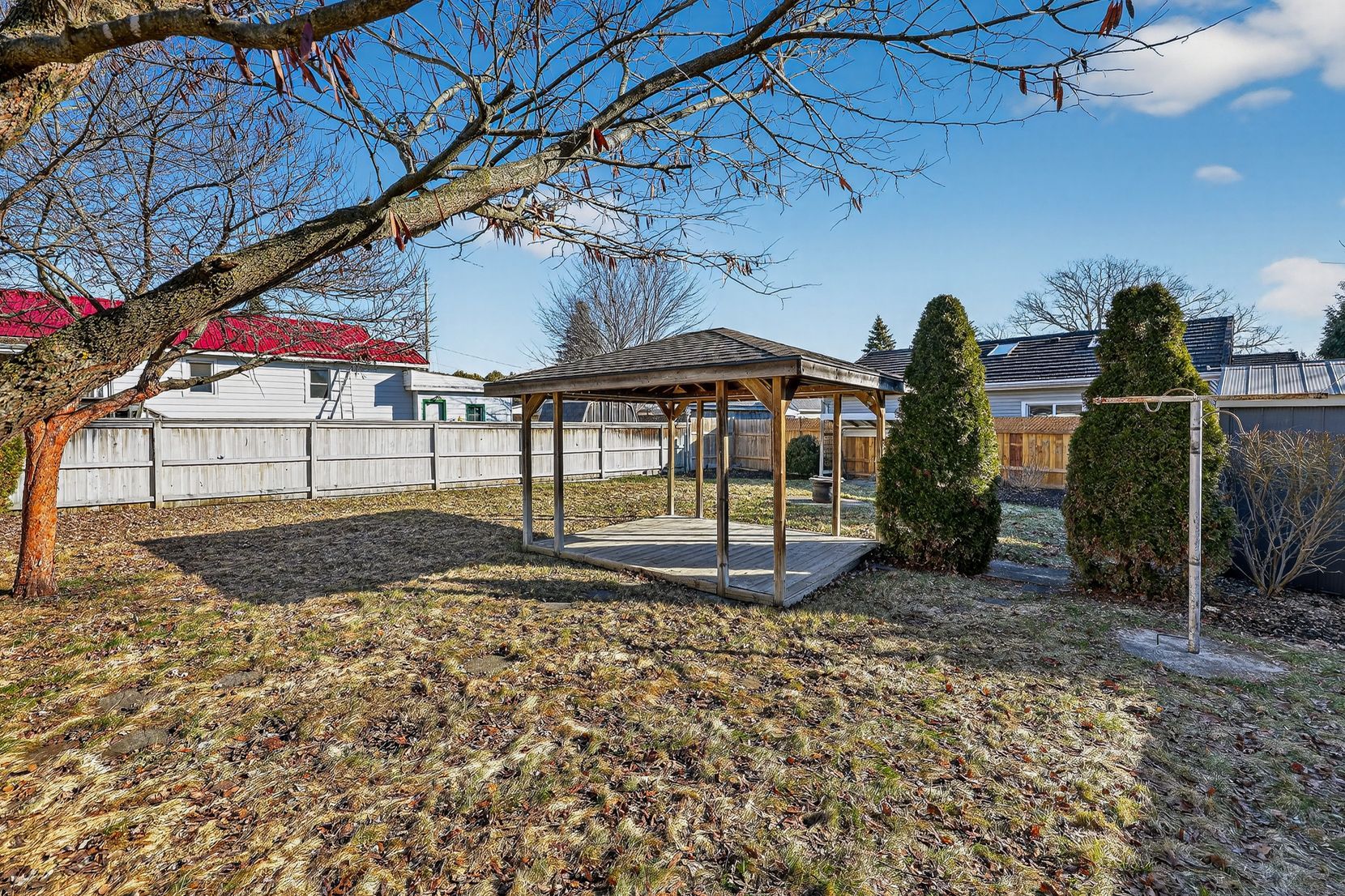 3 bedroom bungalow with 1 car detached garage, located in a quiet area of town. Pride of ownership is everywhere. Impeccably maintained and move in ready. Main floor features a spacious open concept layout. The large front window provides the perfect amount of natural light to brighten up the space. The kitchen has ample cabinetry and lots of room to move around. Down the hall you will find your 4 pc bathroom and your 3 bedrooms. Primary bedroom offers access to the large covered deck through a set of patio doors. For your convenience, there is laundry on the main floor with a stackable washer and dryer, which are included. The basement is fully finished with a 4 pc bathroom, kitchenette and its own laundry hook ups, washer and dryer in basement will stay. The basement was designed to be a fully independent living area for guests. With a modification to an existing window to meet code, this space would be perfect for a family with young adults just starting out, a rental income opportunity, or multiple other family living arrangements. A bonus feature to complete this home is the heated sunroom located at the back of the house. Enjoy your morning coffee or an evening sunset in any season. The backyard is fully fenced in and is equipped with 2 sheds. Aside from relaxing on your covered deck, you can also enjoy sitting on the patio in your permanent wooden gazebo surrounded by your beautiful gardens. There is a well located in one of the sheds in the backyard. The automatic sprinkler system is hooked up to the well and allows you to water your grass whenever you want with no water restrictions. To help with outdoor maintenance, a full leafless eavestrough system was installed last year. Some of the furniture is negotiable to stay.