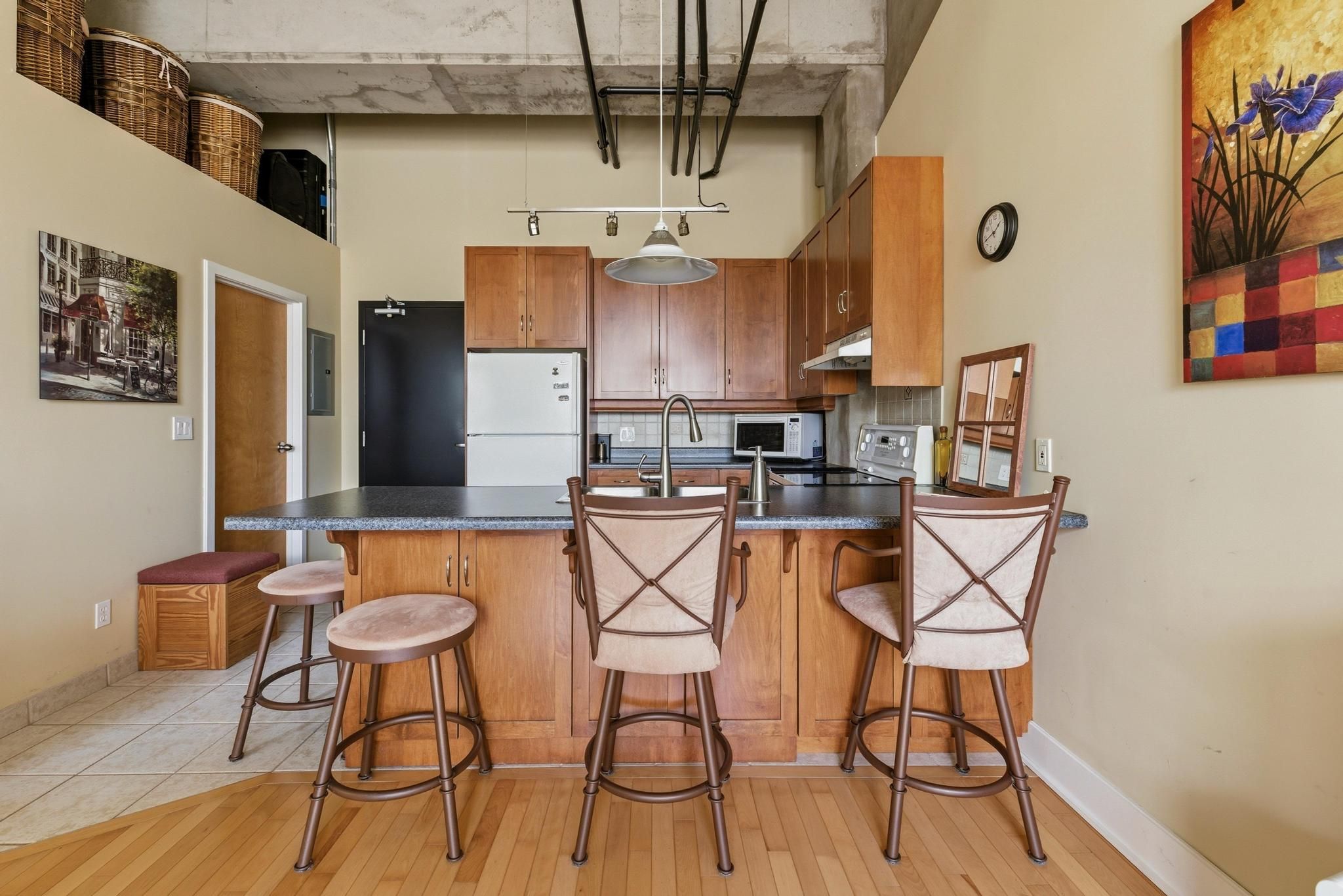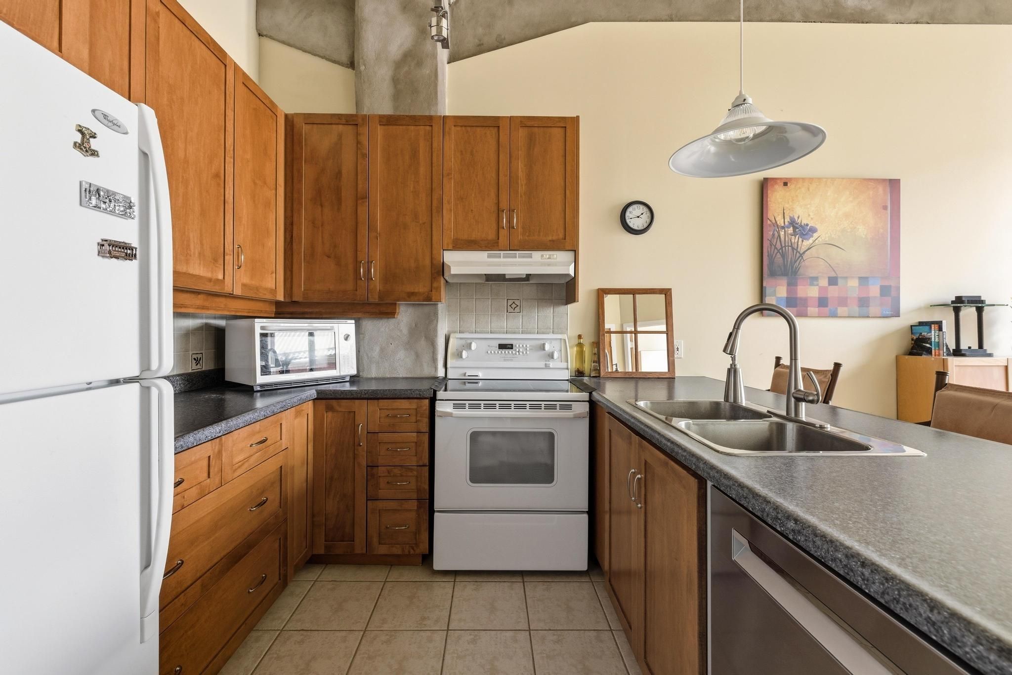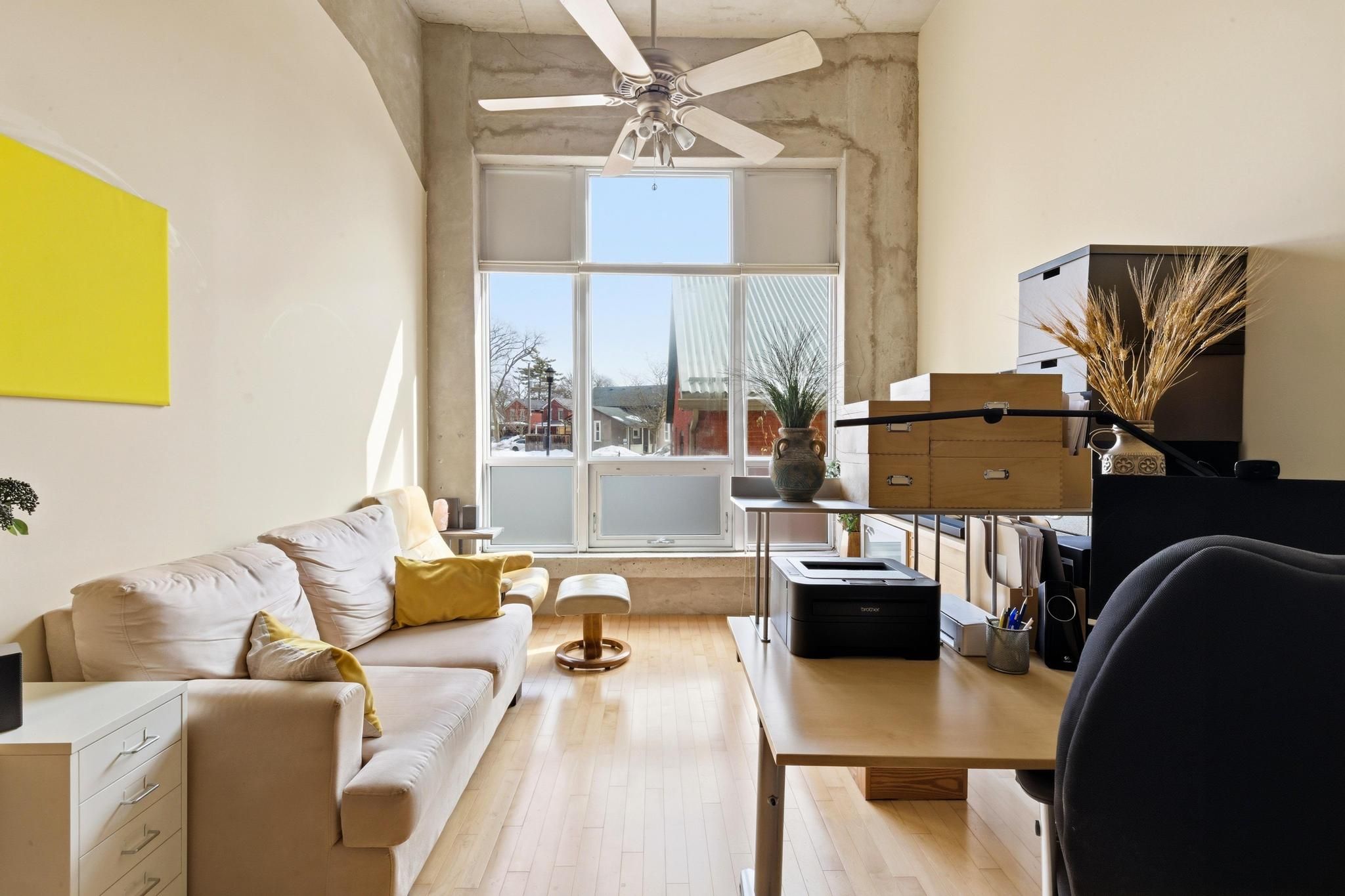 Historic charm meets modern privacy in the heart of the ward. Welcome to the prestigious mill lofts, a 1902 textile mill turned urban masterpiece. Unit 108 offers a rare opportunity to own a piece of guelph's heritage that has been meticulously cared for by just one owner since its conversion. This exceptional one-bedroom, one bathroom stands out with a premium, full-height bedroom wall. This design detail provides a true sense of separation and privacy between the living area and the bedroom. The interior features the authentic concrete structural walls and soaring ceilings anchored by birch hardwood flooring. The heart of the home is a timeless barzotti kitchen complete with soft-close cabinetry, a porcelain tiled backsplash, and an updated stainless steel smart bosch dishwasher. No detail has been overlooked for comfort and efficiency, including energy-saving duette privacy blinds on all windows, new faucets, and upgraded ceiling fans. Major mechanical peace of mind is included, with the heat pump replaced in 2017 and a top-of-the-line 2024 lg laundry duo. The unit also includes an owned parking space and a convenient storage locker. Steps from the go station, speed river trails, downtown dining, and all that the ward has to offer, this turnkey suite is the ultimate urban retreat. Experience the best of the mill lofts!