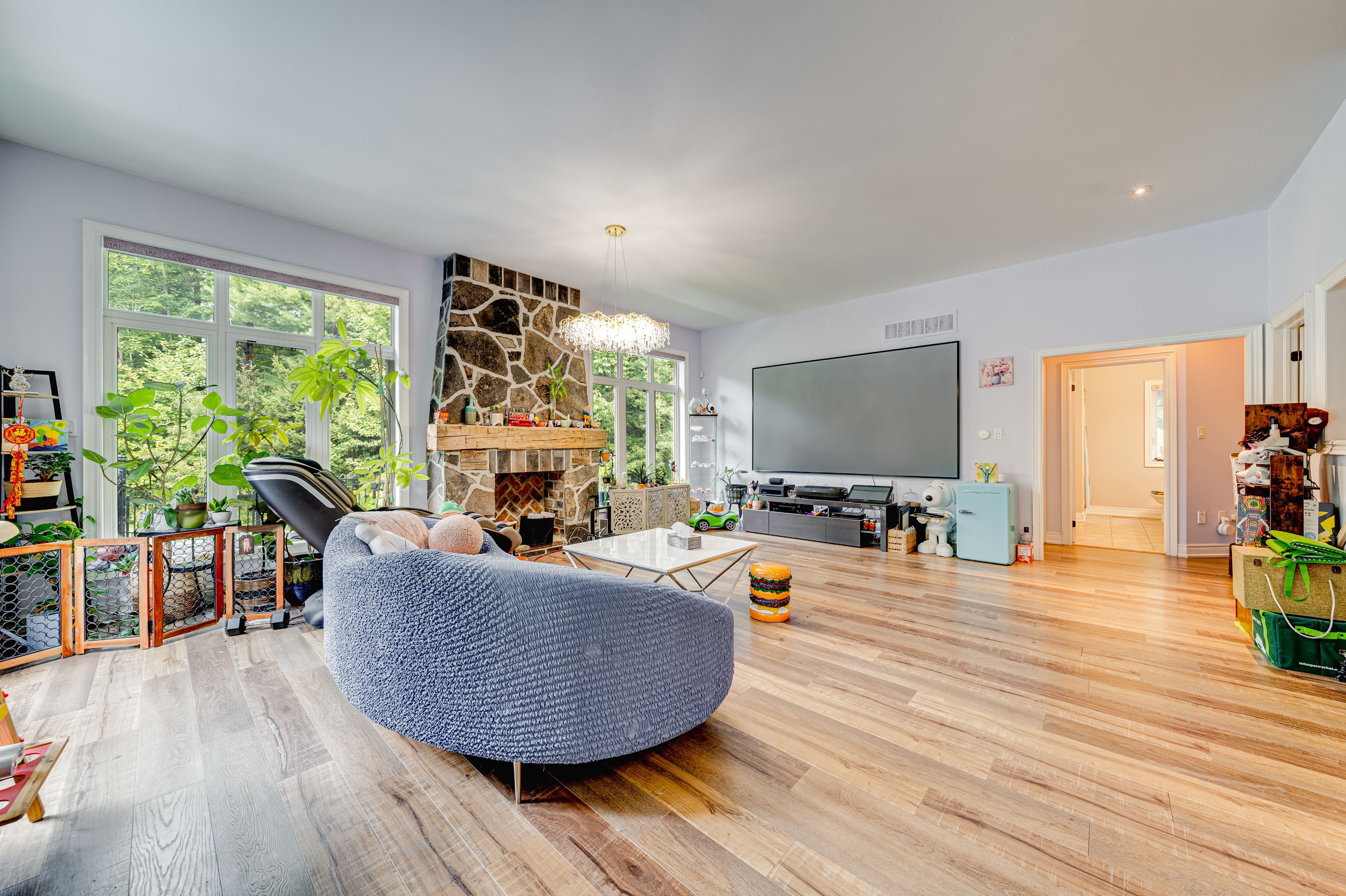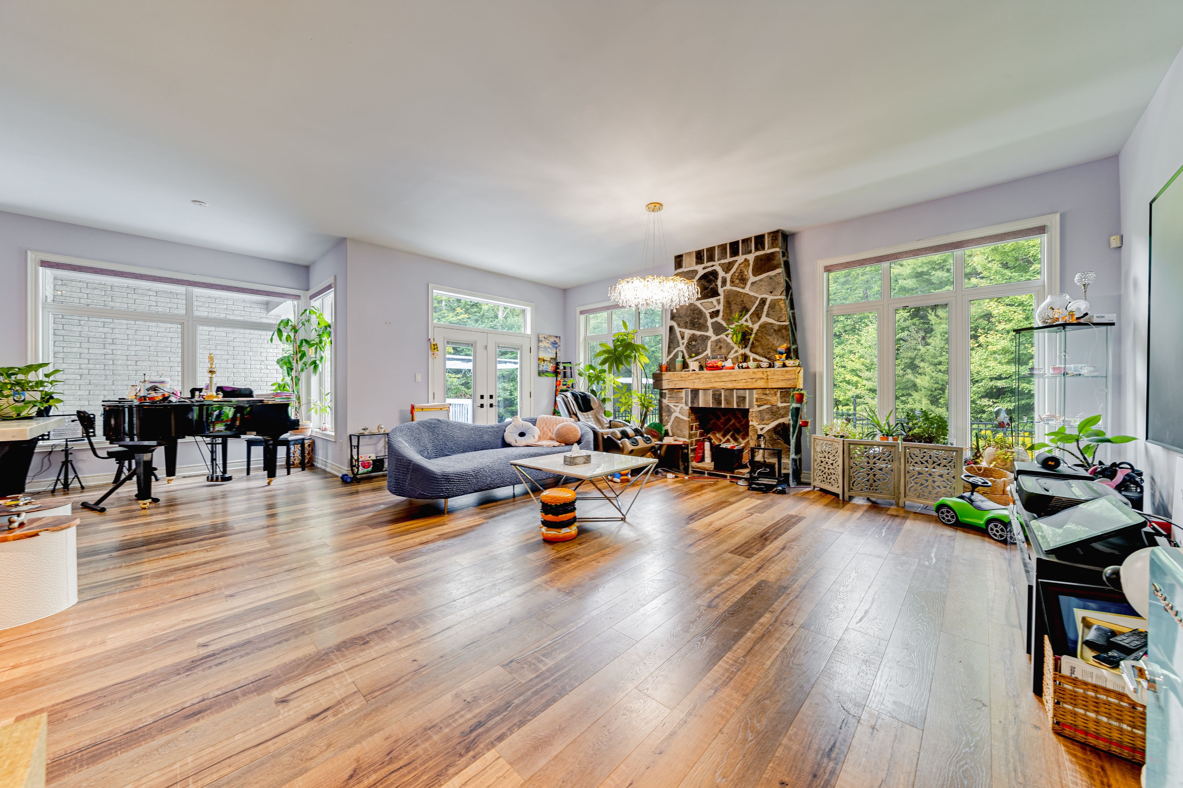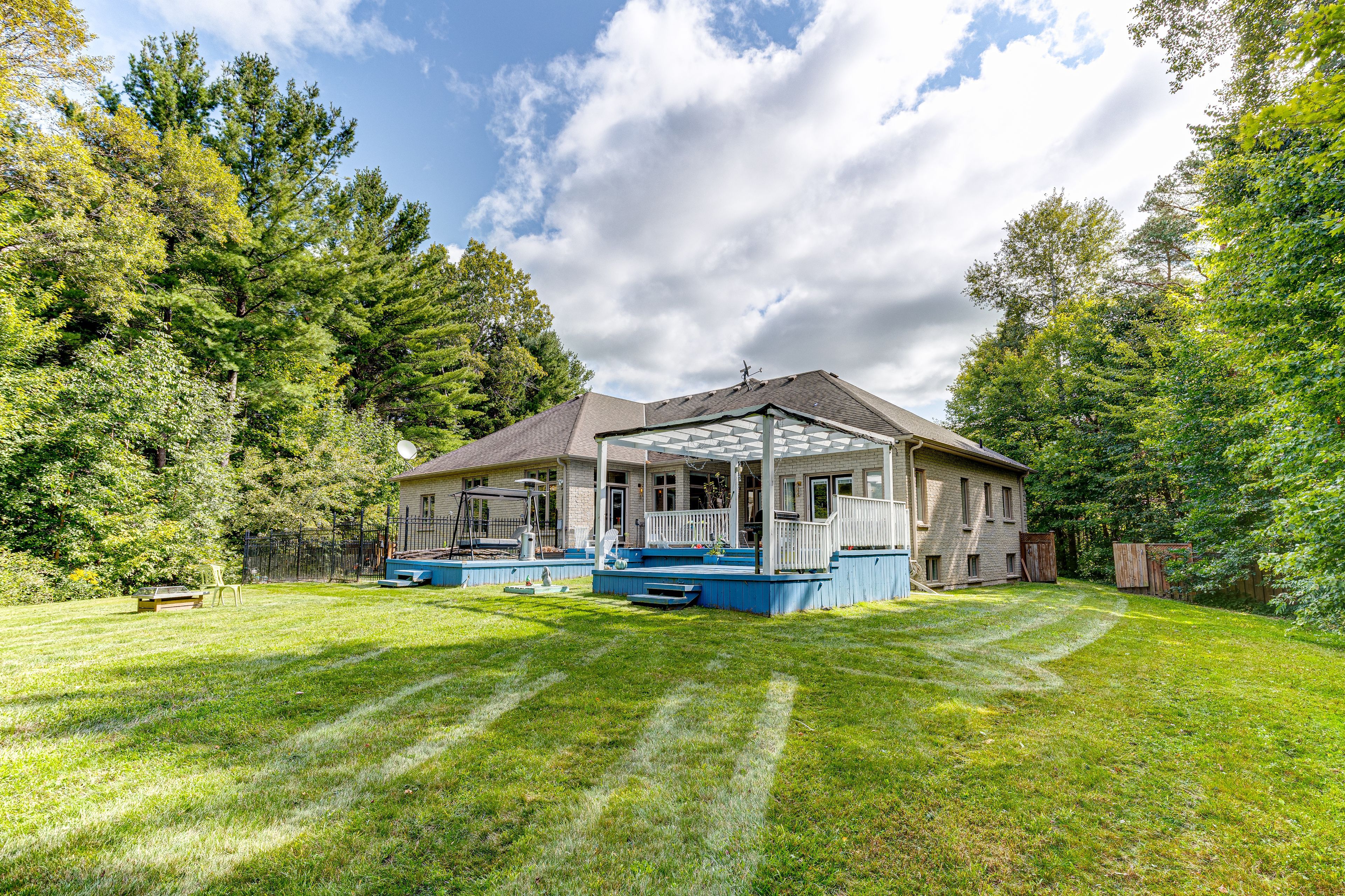 This amazing 3-car garage bungalow situated on a 2. 64 acres ravine lot, in a quiet cul de sac, with spectacular sunsets & breathtaking paradise views, only 10 mins from highway 404. Open concept layout with 10 ft ceilings, a lot of large picture windows can enjoy the nature views from backyard, enclosed formal dining room with french doors & 4 bedrooms on main level. Fully renovated include new paint, pot lights, floorings & motorized window blinds throughout. Modern kitchen with centre island, farmhouse sink, mosaic backsplash, quartz countertops & stainless steel appliances with over-sized fridge & freezer. The sun-filled primary bedroom with large walk-in closet & 5-piece ensuite bathroom. Professional finished basement offers huge recreation room with built-in tv entertainment wall & wet bar, games room, sitting room, exercise room, 2 extra bedrooms, 3-piece bathroom & large storage area. Built-in geothermal heating & cooling system & ev car charger make this house environmental friendly!!!
