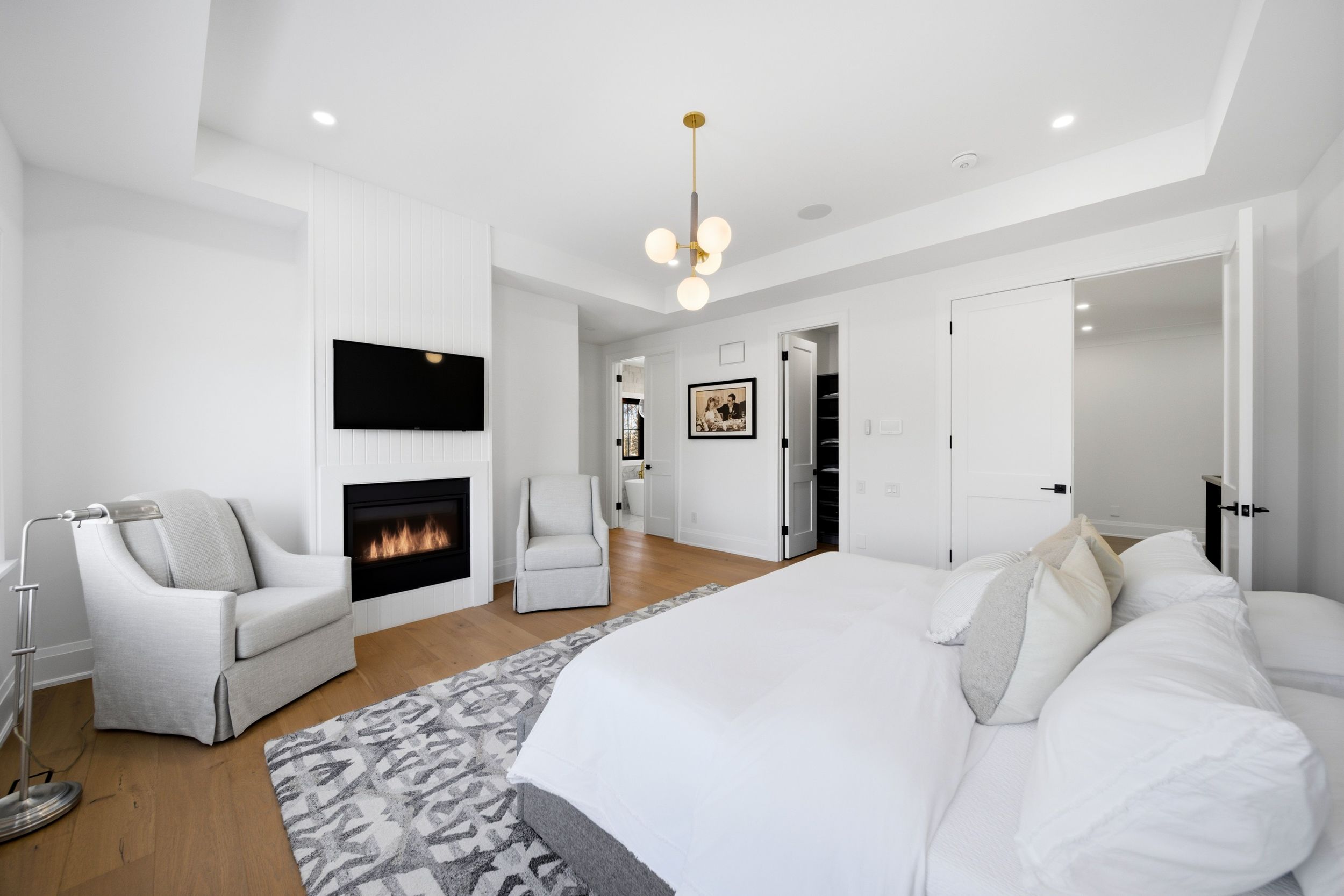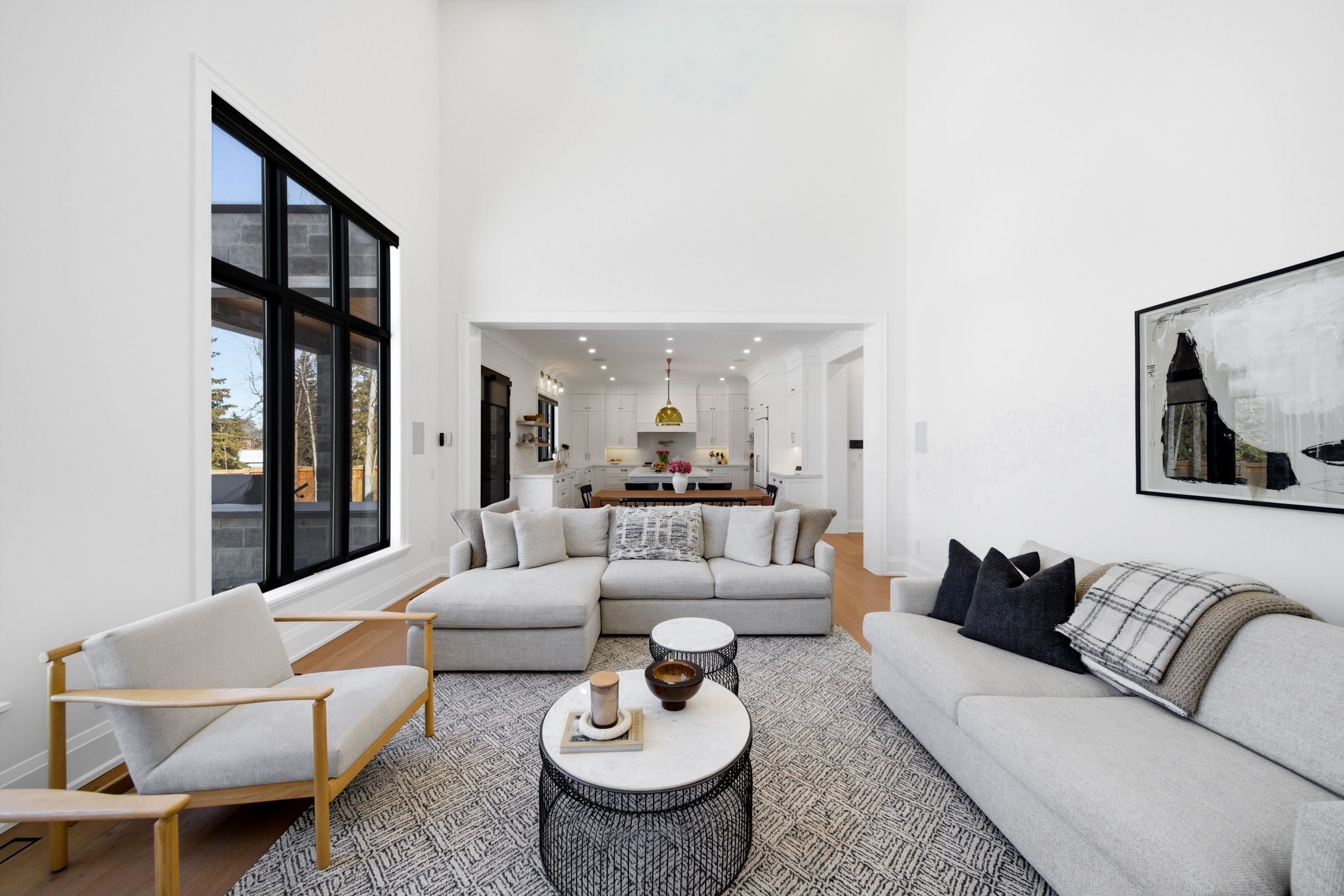 On a premium 150 ft x 148 ft lot, crafted by fulton homes & designed by dero building designs, this custom modern farmhouse offers approx 6,500 sq ft of total finished living space, plus a finished lower level. Designed as a 4 bdrm home with option for nanny/in-law suite below. Soaring 10' ceilings on main, 9' on 2nd, dramatic 20' family rm & 9. 5' lower level create exceptional volume & natural light t/o. Custom kitchen by villa kitchen & cabinets features quartz counters, thermador appls, bespoke built-ins & millwork carried into vanities & closets. Heated flrs in all washrooms, riobel & vogt fixtures & vovo smart toilet in primary suite. Family rm anchored by 46" majestic gas f/p w custom mantel, motorized chandelier & control4 automation. Primary retreat offers 42" valor linear f/p, custom paneling & motorized blinds. Control4 lighting & speakers, cat6 t/o, dual wifi incl cabana, nest thermostats, central vac & 6-cam security w rogers monitoring. Heated 3-car garage w 12. 5' ceilings, epoxy flrs & 9,000 lb car lift. Lower level w gym, wet bar (rough-in kitchenette/dw) & tiled cold cellar. Rear 10'x25' covered loggia w 42" kingman gas f/p, tv mount & glass railings. Ext by land design canada, executed by la landscaping, incl hunter irrigation & leafguard. Resort-style yard w pool by artscape construction pools & 18'x18' cabana w 3-pc bath & outdoor kitchenaid bbq. Finished in arctic white james hardie board w visual comfort lighting t/o. Exceptional design, tech & craftsmanship.