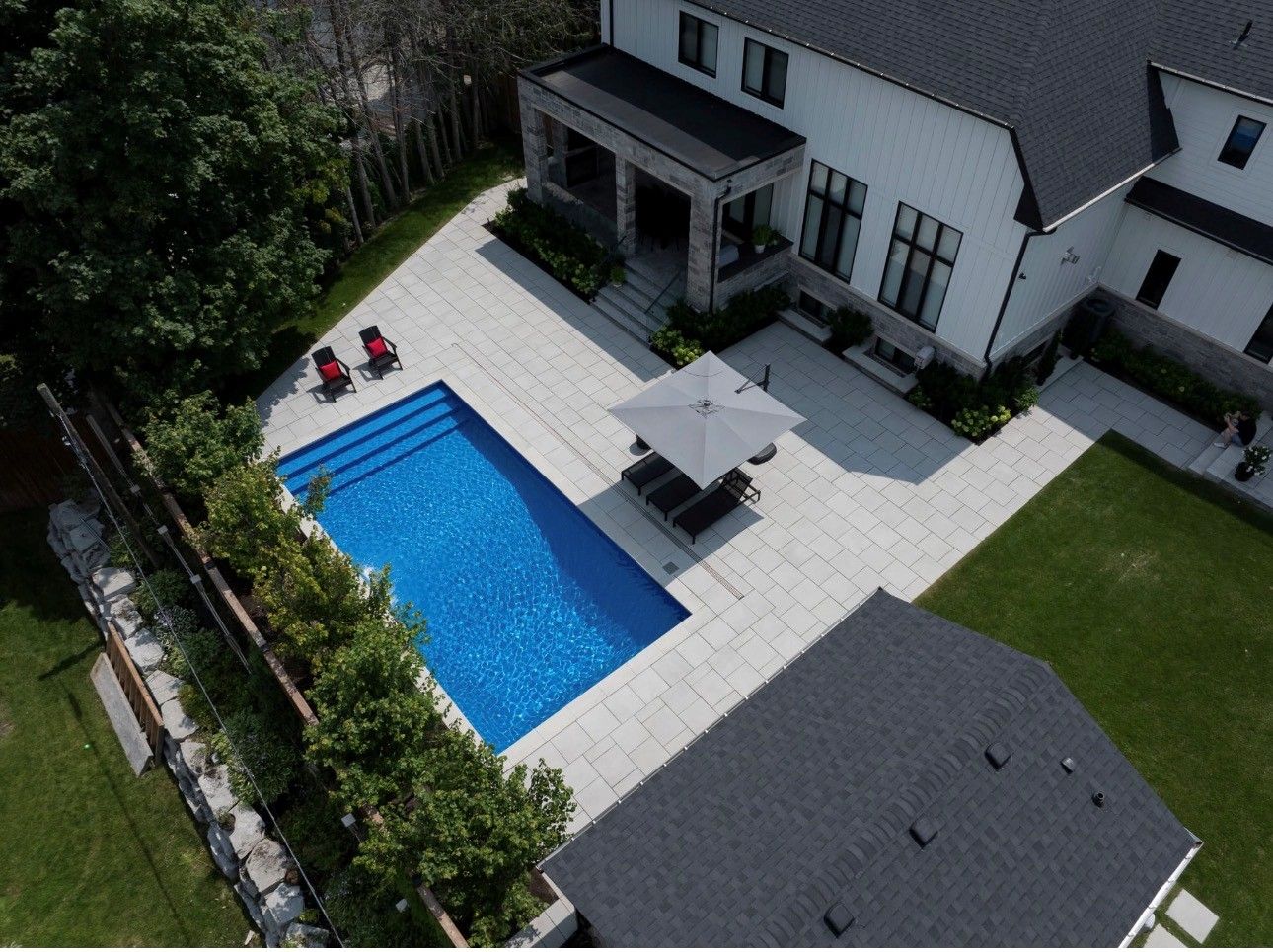 • Impressive resort-style yard with pool and covered loggia for outdoor enjoyment.