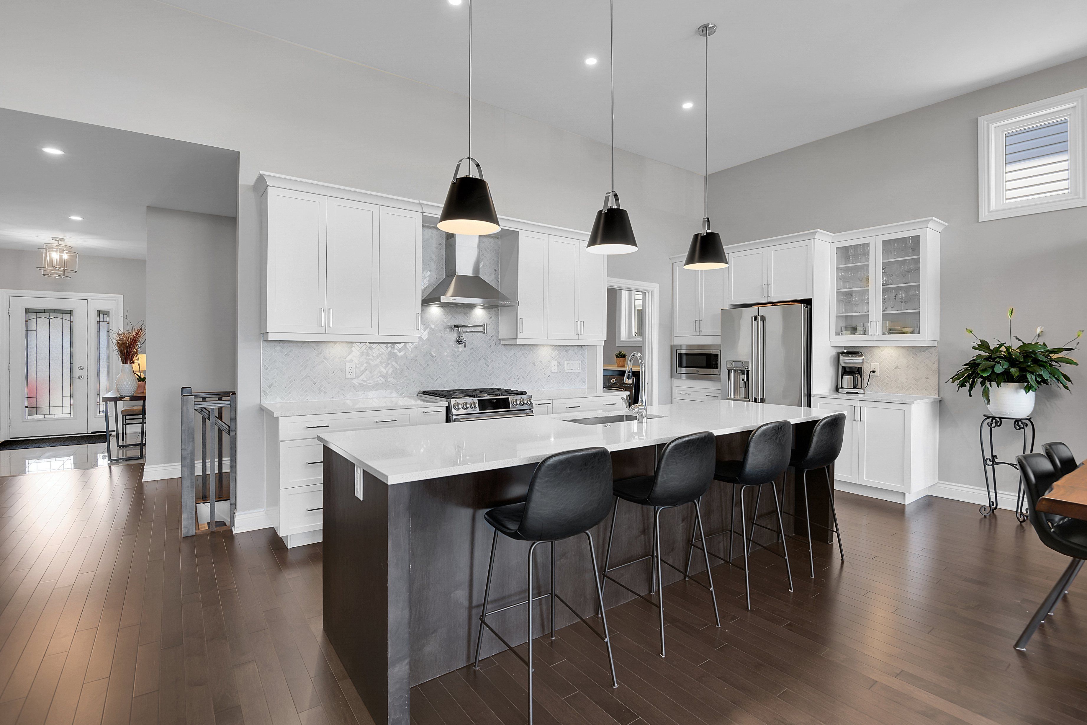 • Gourmet kitchen with custom cabinetry and upgraded quartz countertops.