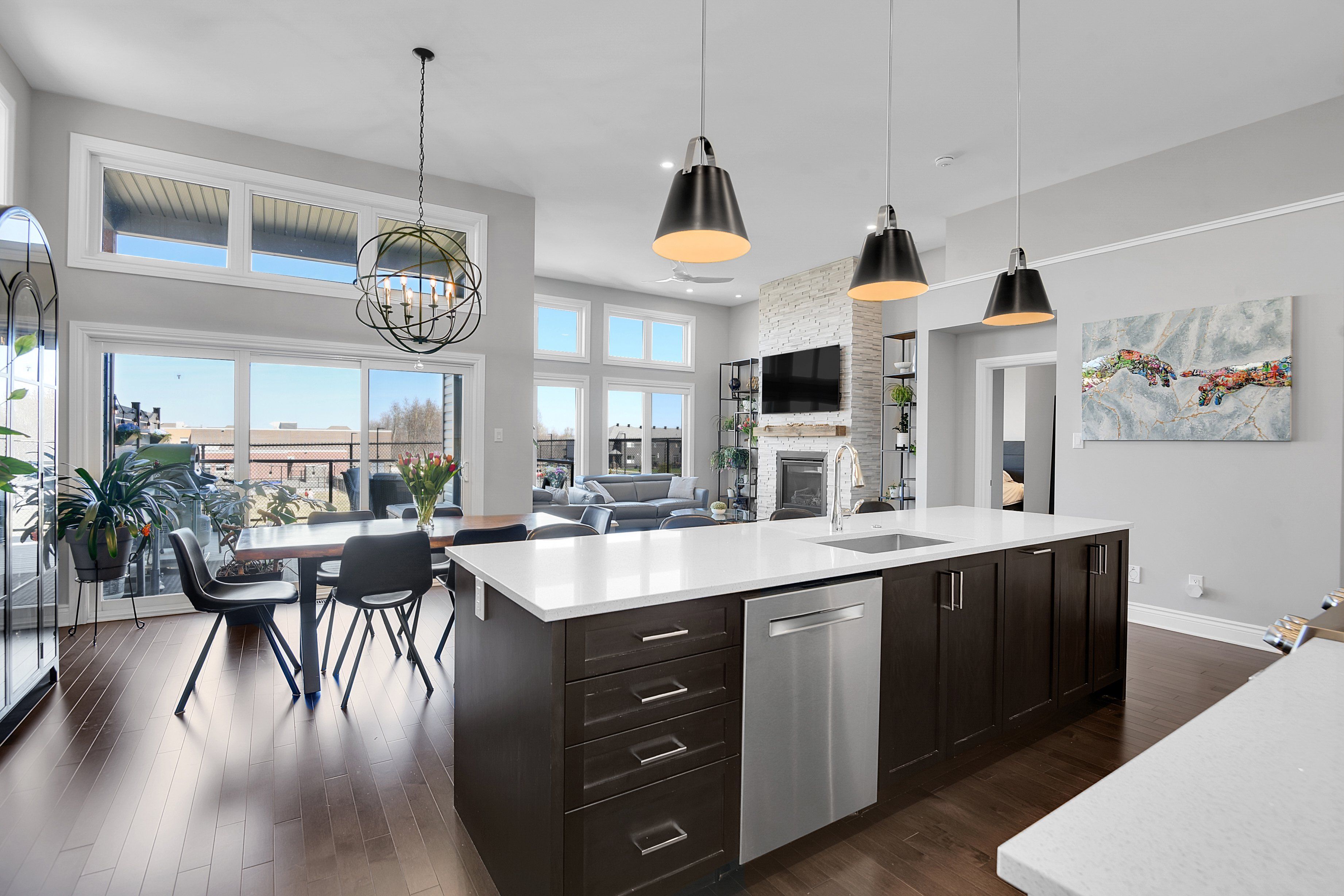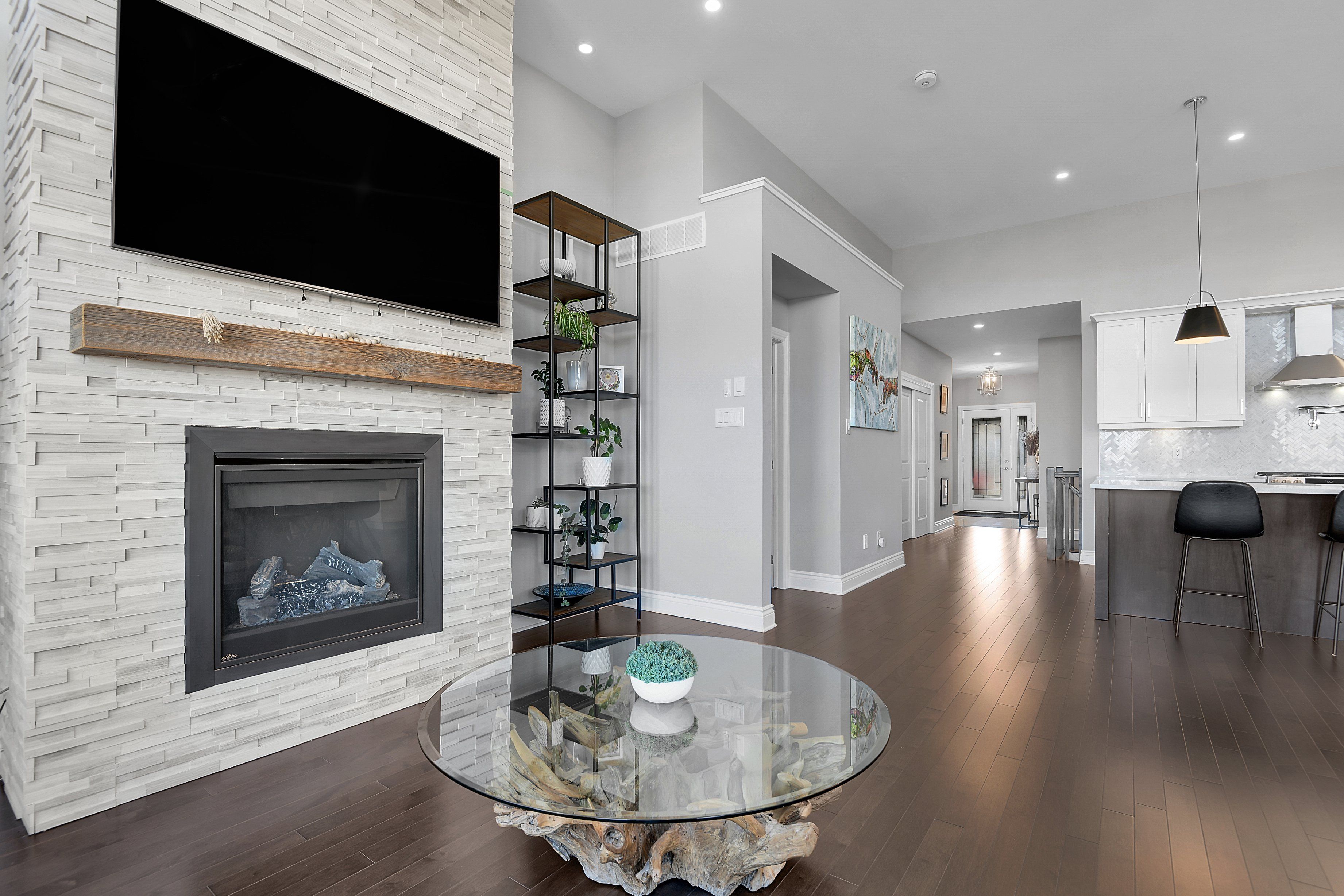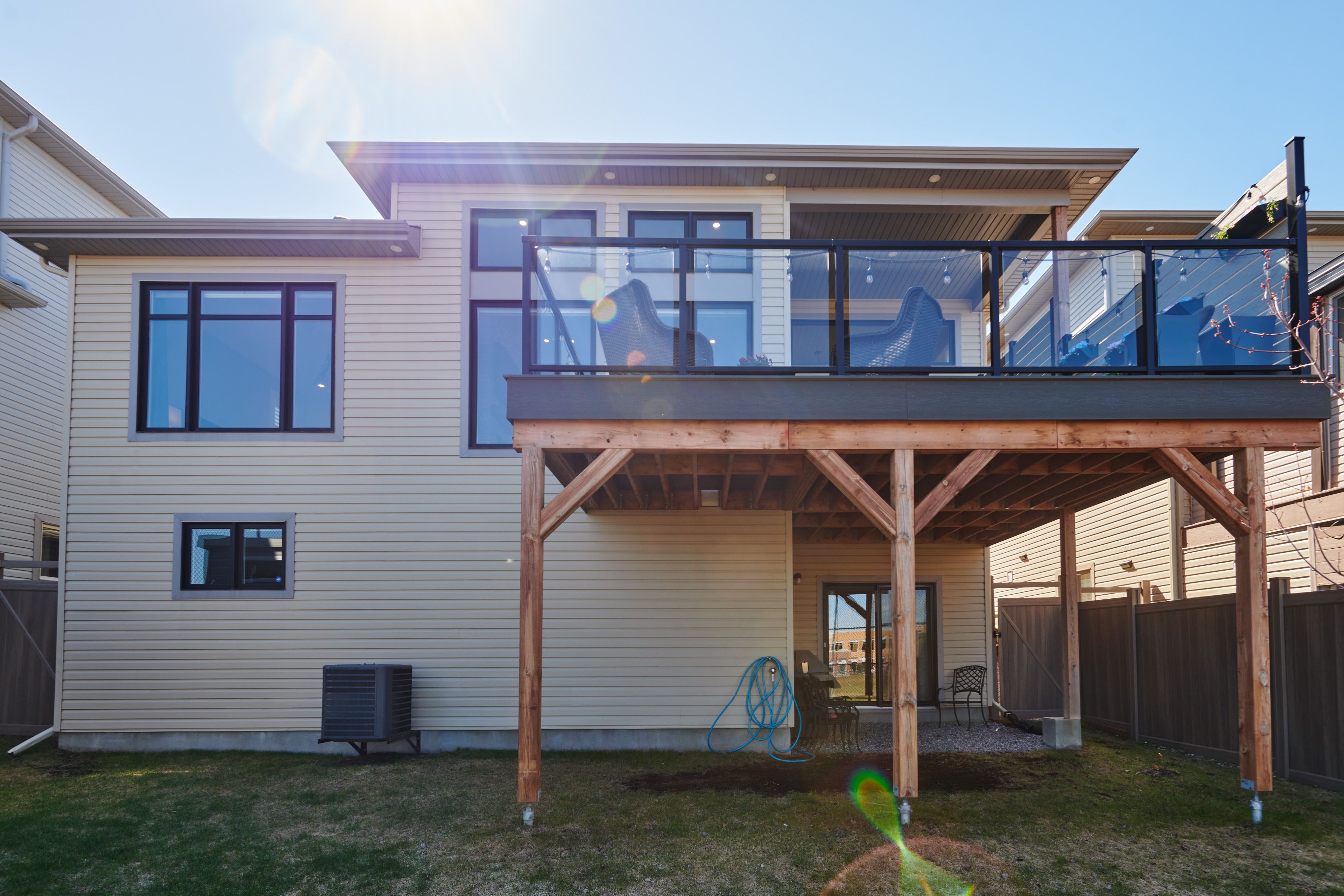 Welcome to this spectacular eq homes "alexander" bungalow, showcasing nearly $200,000 in premium upgrades and exceptional attention to detail throughout. With approximately 1740 sq. Ft. On the main level and an additional walk out basement with approximately 900-1000 sq. Ft. This home offers plenty of space. Start your day on the charming front porch, the perfect spot to enjoy your morning coffee. Step inside to a spacious and welcoming foyer that opens into a stunning open-concept living space. The bright and airy living room, dining area, and gourmet kitchen are enhanced by soaring 9-foot ceilings and an abundance of large windows, filling the home with natural light. A striking 12-foot gas fireplace with custom ledge stone surround and mantle serves as a beautiful focal point. The chef-inspired kitchen features custom cabinetry, upgraded quartz countertops, and a generous dining area-ideal for both everyday living and entertaining. Step out onto the main floor balcony, complete with a gas bbq hookup, and enjoy breathtaking sunset views. The primary bedroom retreat offers a spacious layout, walk-in closet, and a luxurious 5-piece ensuite with heated floors. Two additional generously sized bedrooms are located on the main level, including one with a convenient murphy bed. A full 4-piece bathroom and main floor laundry add to the home's functionality. The fully finished walkout lower level extends the living space with a large family room, an additional bedroom, and a 3-piece bathroom-perfect for guests or multi-generational living. Built in 2020, this energy star-certified home features 9-foot ceilings on the main level, upgraded maple hardwood flooring, ceramic tile, berber carpet, and luxury vinyl flooring in the basement. 200 amp outlet for ev charger in garage.