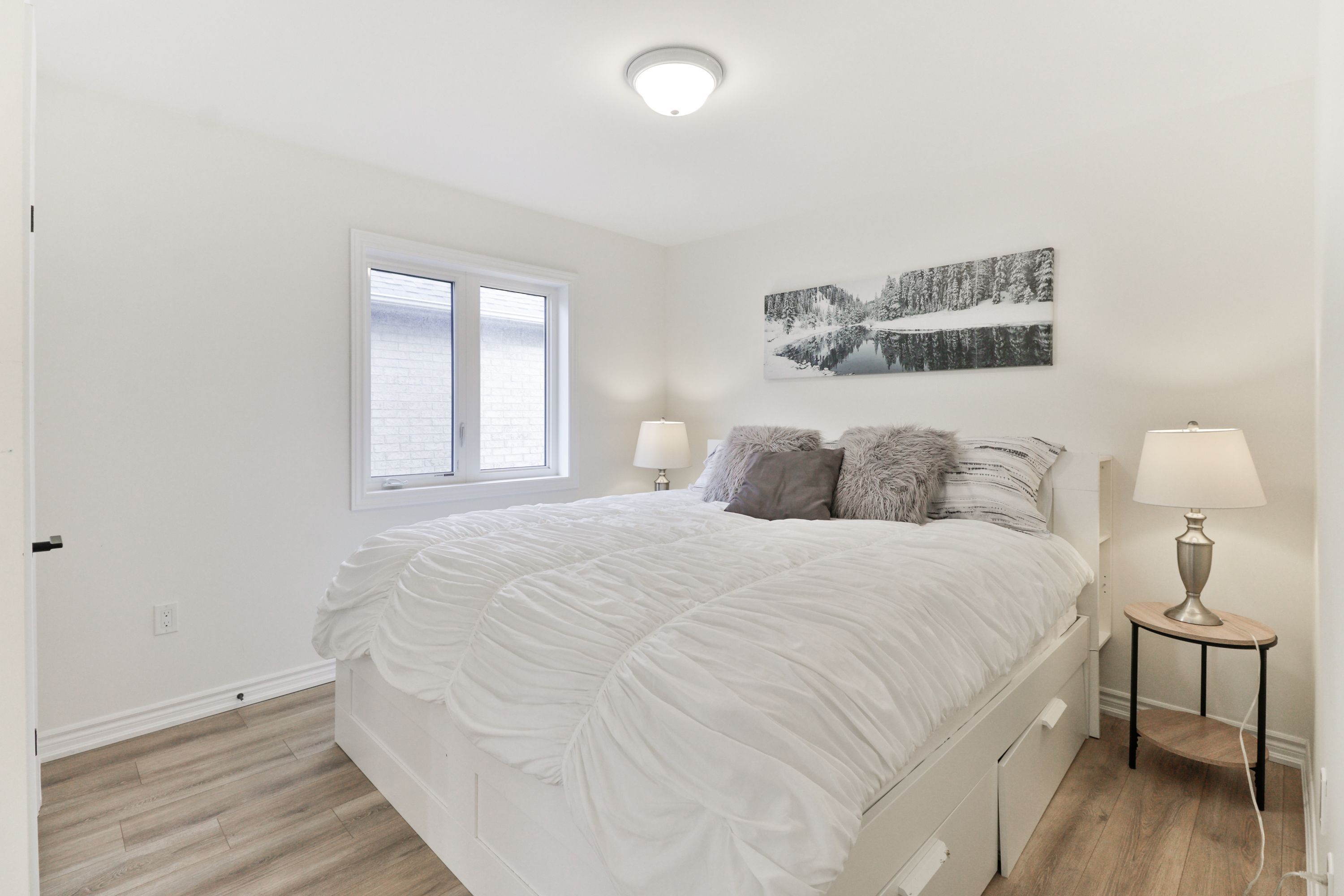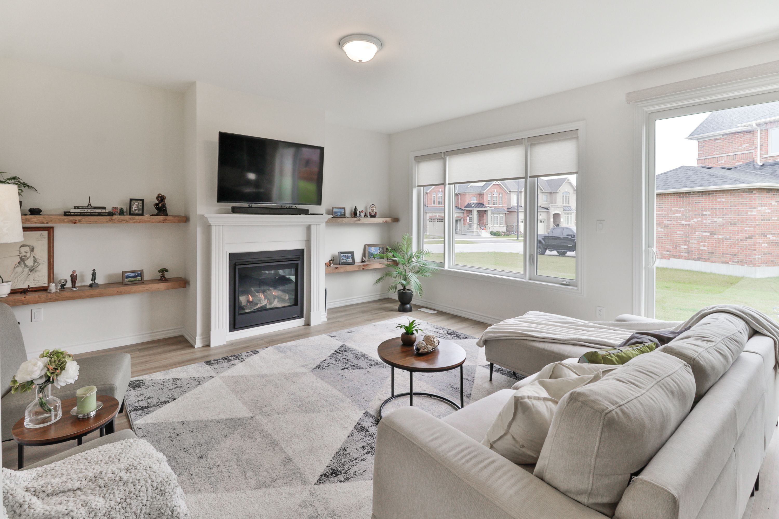 Welcome to the exclusive community of stone manor woods. Situated on a quiet circle with no through traffic, this home offers a peaceful and inviting neighbourhood setting. The immaculate curb appeal and charming covered front porch lead into a bright and welcoming entrance, featuring 9-foot ceilings on the main floor and an abundance of natural light throughout. The thoughtfully designed layout provides both space and privacy, creating the perfect place to call home. The chef's kitchen is sure to impress with elegant upgraded cabinetry, quartz countertops, a custom backsplash, centre island, and stainless steel appliances. Adjacent to the kitchen is a spacious dining room, ideal for hosting family gatherings and dinner parties. The kitchen also opens to a cozy living room with a gas fireplace and an upgraded 8-foot patio door leading to the outdoor space. Upstairs, the elegant staircase is set apart from the main living area, enhancing the home's functional design. The second floor features a convenient laundry room complete with a laundry sink. The primary bedroom offers a private retreat with a spacious, spa-like ensuite featuring dual sinks, a soaker tub, glass shower, and a walk-in closet. Two bedrooms share a well-appointed jack-and-jill bathroom, while the fourth bedroom has access to its own nearby bathroom, offering added convenience. You will appreciate the elegant finishes and warm, natural tones throughout the home. The unspoiled basement provides endless possibilities and includes a rough-in for a future bathroom. The double car garage offers an additional storage space, complemented by a double-wide driveway. Ideally located near outdoor attractions such as ski hills, farmers' markets, and nature trails, this modern two-storey home perfectly blends suburban tranquility with urban convenience, just a short drive to barrie for shopping, dining, and beaches.