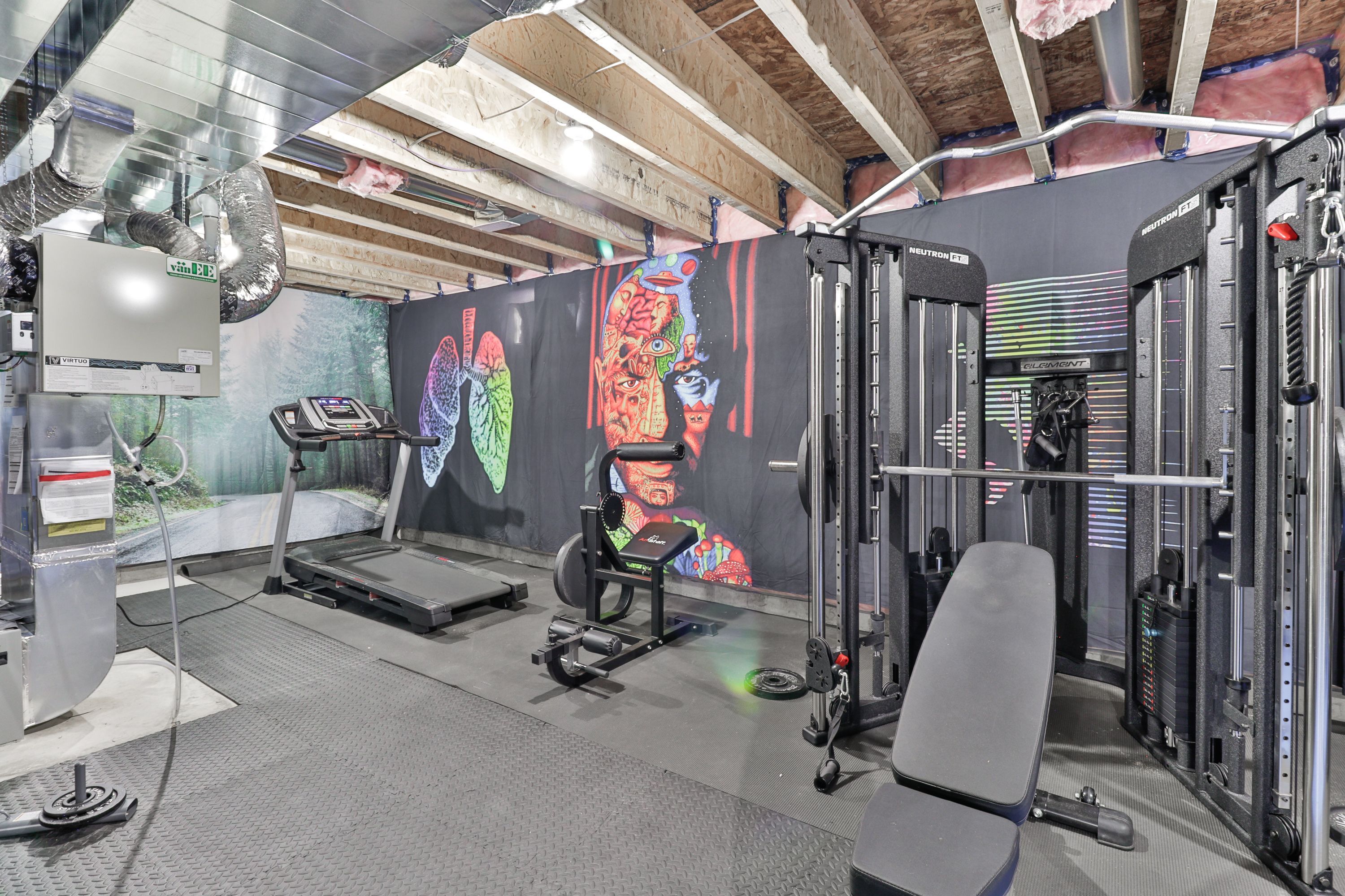 • Unfinished basement offers potential for customization and extra storage in the garage.