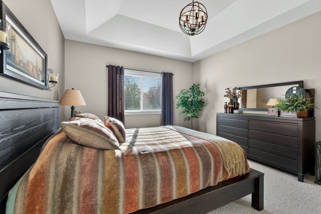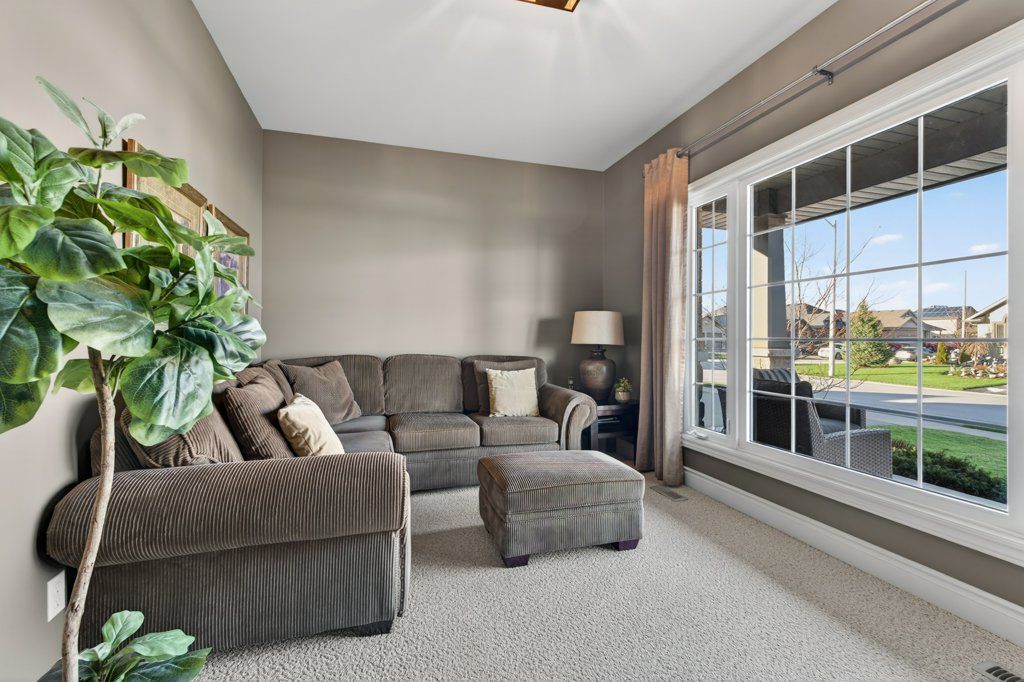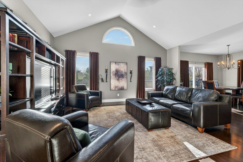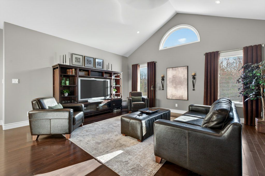 • Bright great room with 12' vaulted ceiling and open-concept layout.