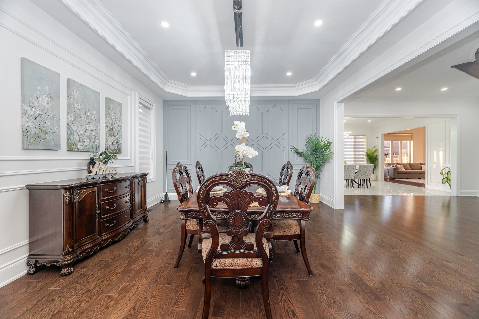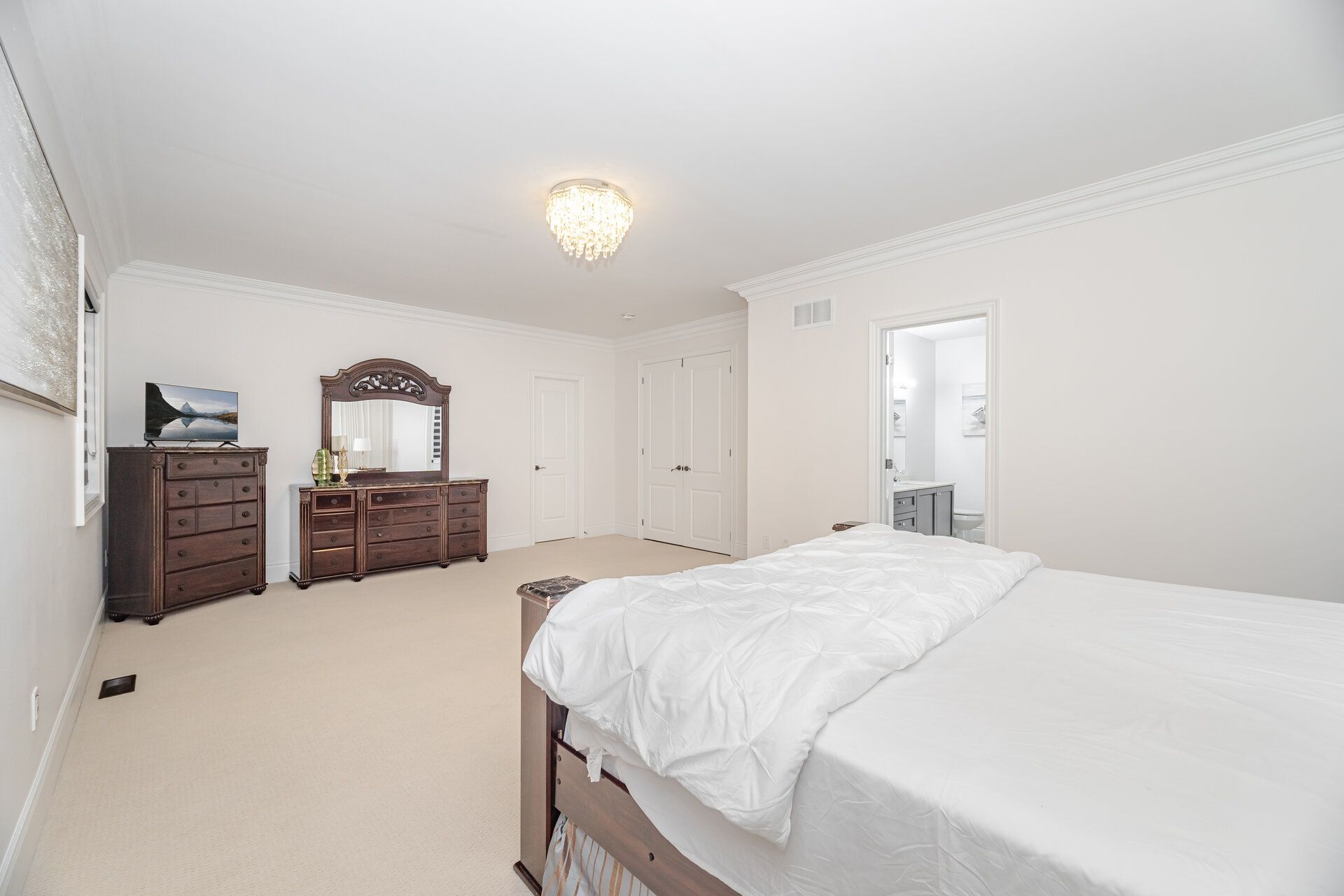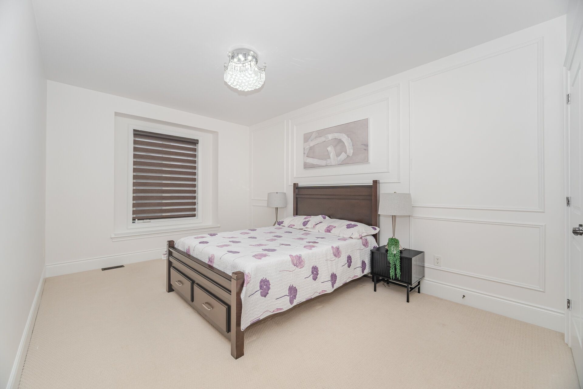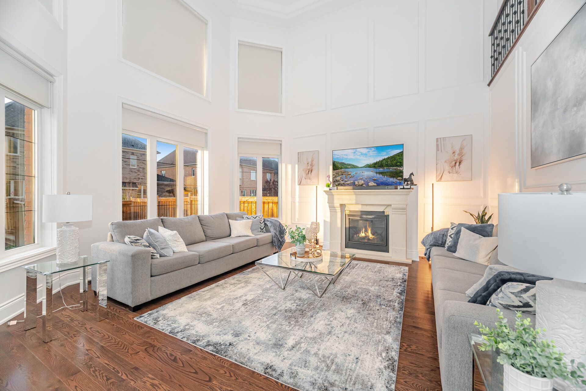 An exceptional 5200 sq ft above-grade luxury detached residence offering a ** rare main-floor bedroom with 3-pc ensuite** totaling **5 elegant bedrooms, each with a private ensuite,* set in the prestigious gore rural estate. A breathtaking open-to-above foyer with a custom chandelier creates an unforgettable first impression. Thoughtfully designed for refined living, the home features a formal living room with crown moulding and a sophisticated dining room with designer accent wall and custom lighting. The chef's kitchen impresses with built-in high end stainless steel appliances, built-in gas range top, center island, extended cabinetry, backsplash, tile flooring, and a sun-filled breakfast area. The dramatic open-to-above family room showcases a fireplace, wall paneling, and waffle ceilings. The main level is completed by a private office, powder room, and laundry main floor bedroom with 3 pc ensuite, with rich upgrades throughout including hardwood flooring, pot lights, crown moulding, wall paneling and custom light fixtures. The upper level hosts a lavish primary retreat with spa-inspired 5-pc ensuite featuring a soaker tub and an oversized walk-in closet, along with three additional generously sized bedrooms, all with private 3-pc ensuites and walk-in closets. Side entrance to basement already built. Enjoy a sprawling backyard ideal for elegant entertaining. Additional highlights include a sprinkler system and central vacuum. Ideally located close to schools, highways, and shopping plazas-this home delivers timeless elegance and luxury living.