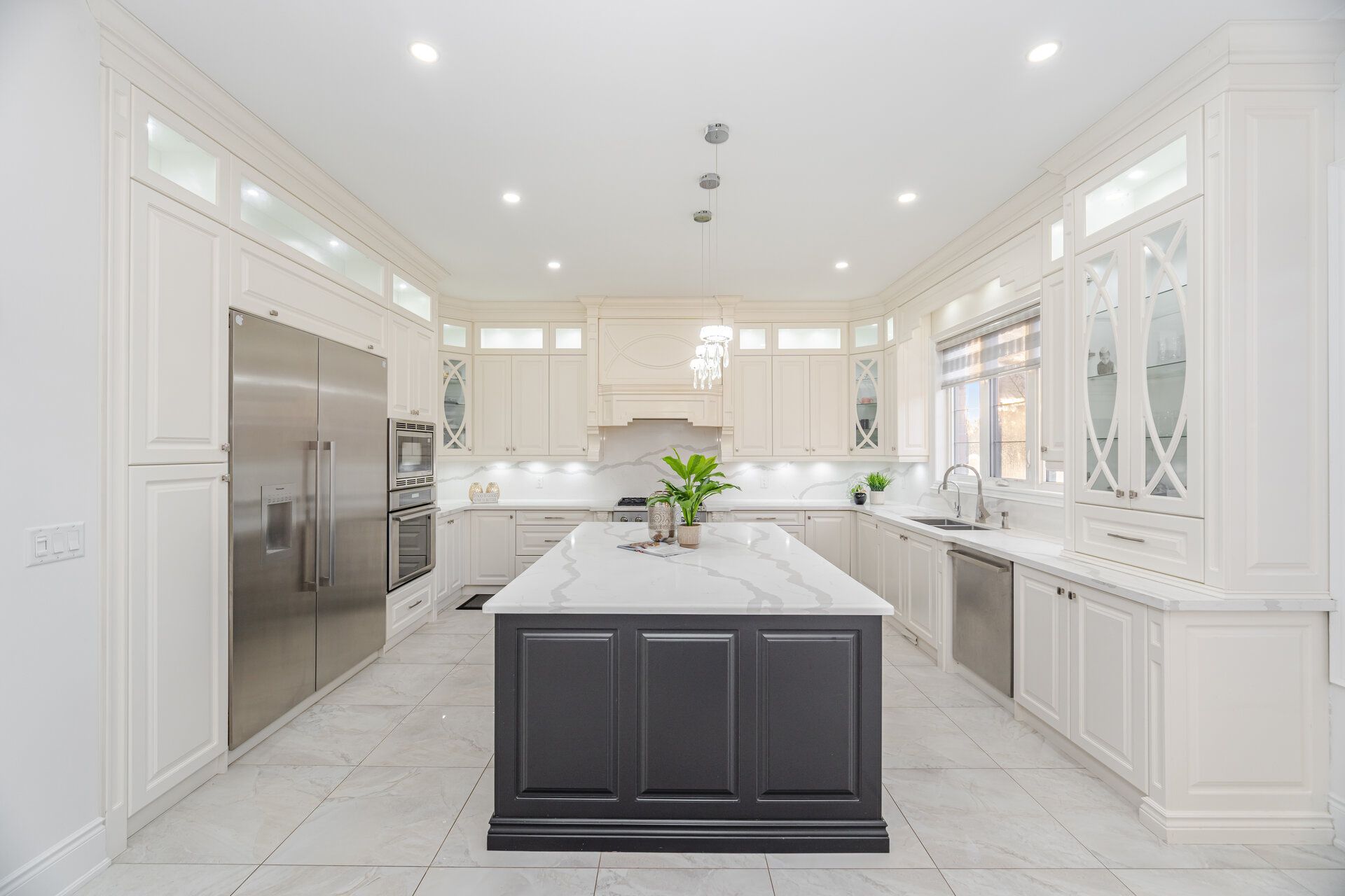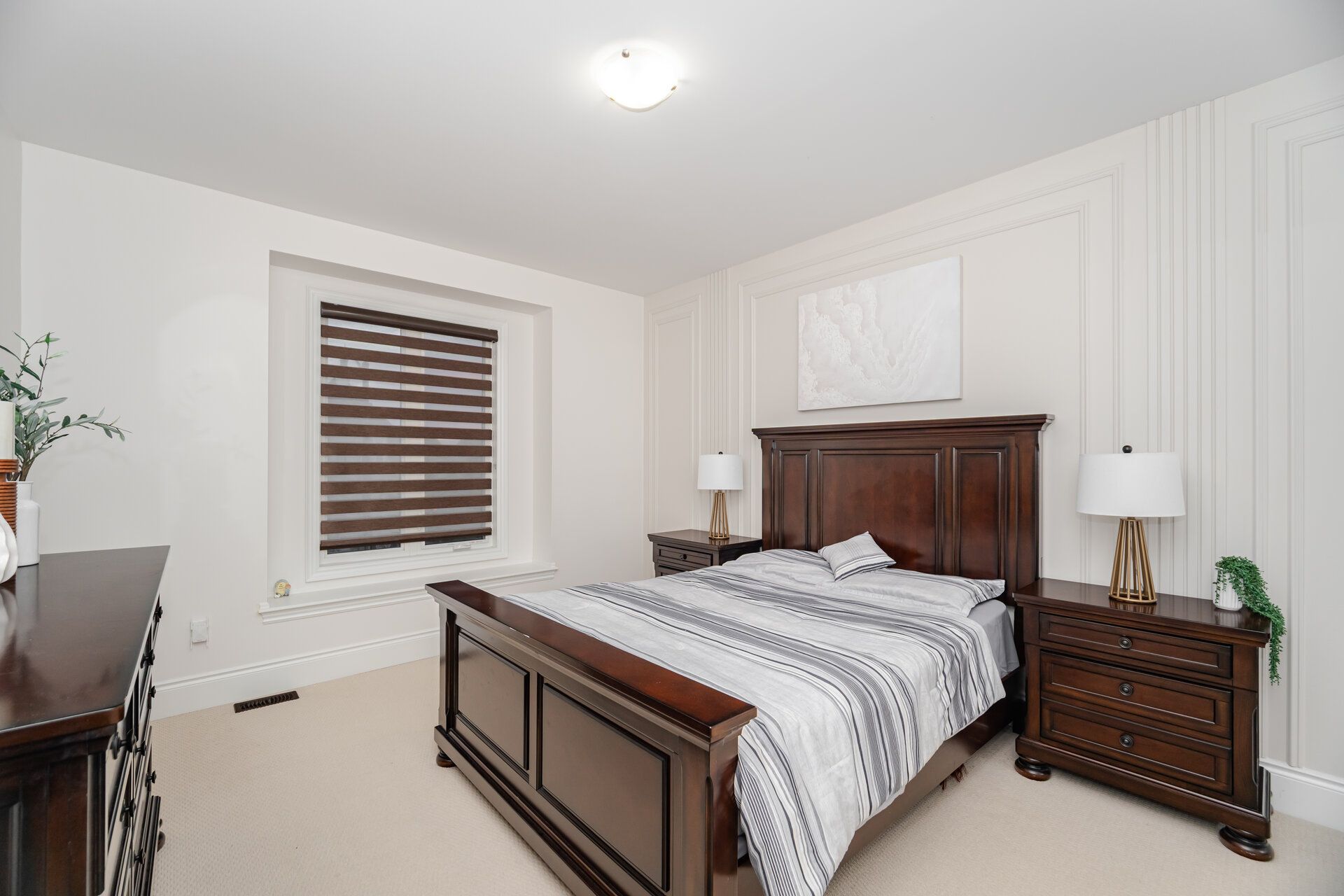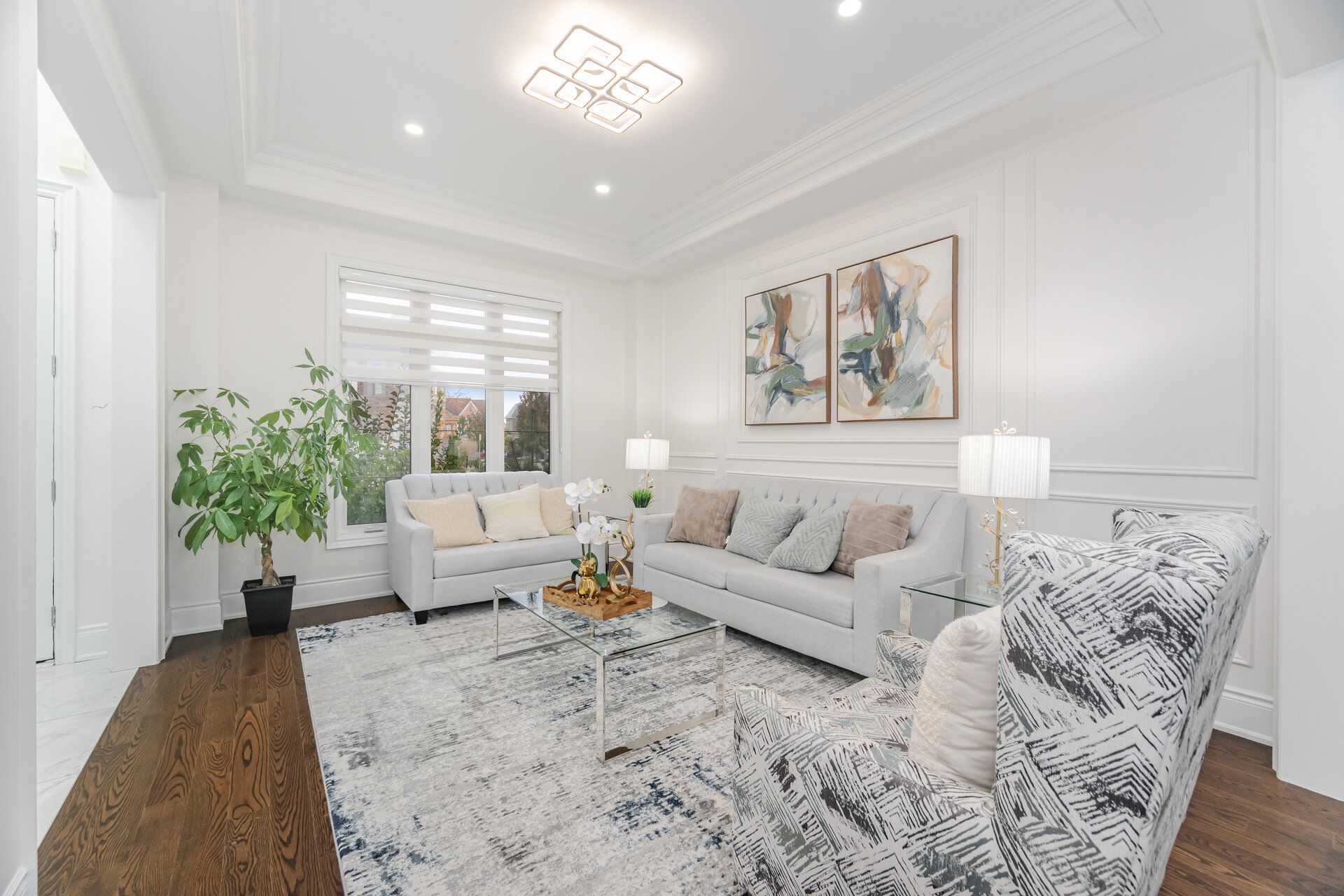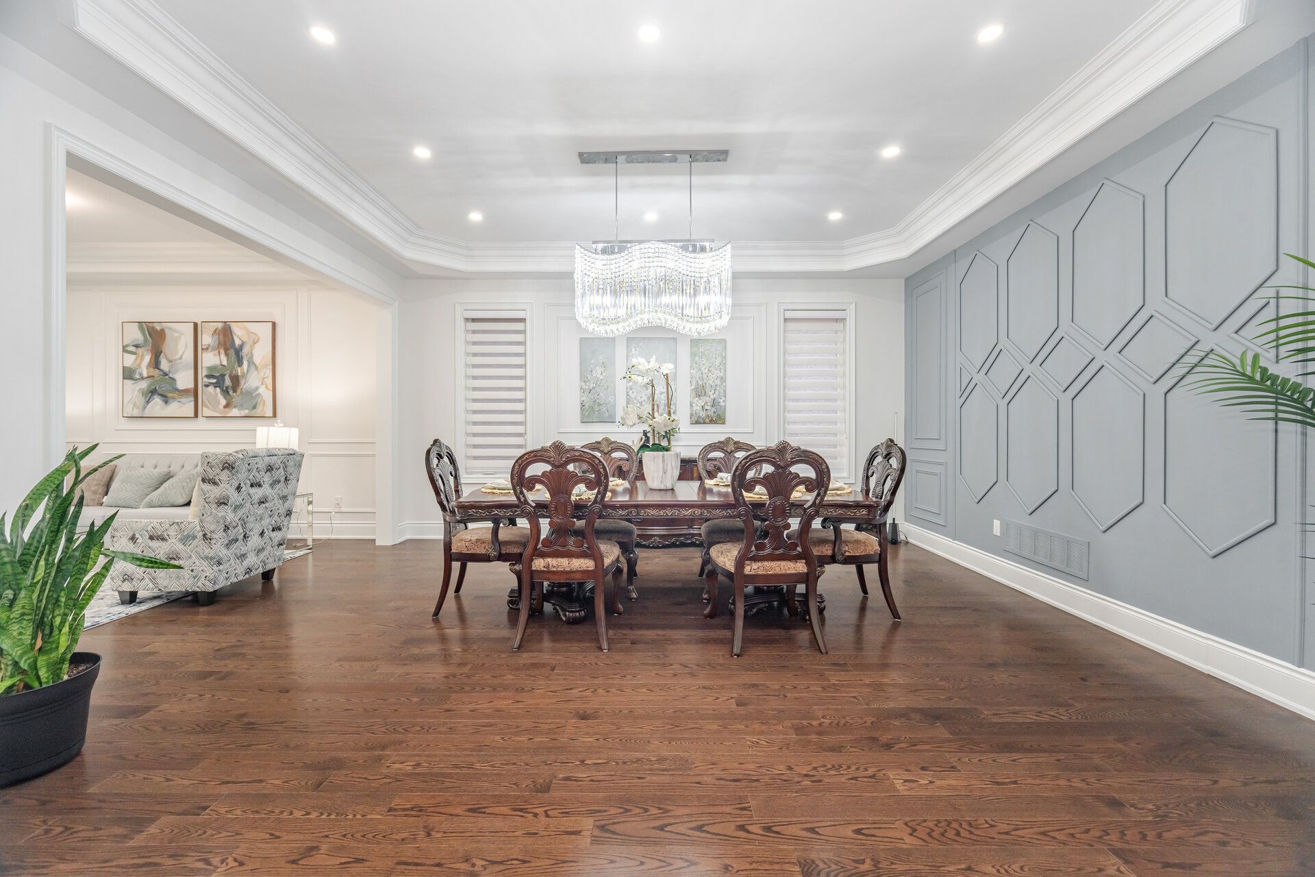 An exceptional 5200 sq ft above-grade luxury detached residence offering a ** rare main-floor bedroom with 3-pc ensuite** totaling **5 elegant bedrooms, each with a private ensuite,* set in the prestigious gore rural estate. A breathtaking open-to-above foyer with a custom chandelier creates an unforgettable first impression. Thoughtfully designed for refined living, the home features a formal living room with crown moulding and a sophisticated dining room with designer accent wall and custom lighting. The chef's kitchen impresses with built-in high end stainless steel appliances, built-in gas range top, center island, extended cabinetry, backsplash, tile flooring, and a sun-filled breakfast area. The dramatic open-to-above family room showcases a fireplace, wall paneling, and waffle ceilings. The main level is completed by a private office, powder room, and laundry main floor bedroom with 3 pc ensuite, with rich upgrades throughout including hardwood flooring, pot lights, crown moulding, wall paneling and custom light fixtures. The upper level hosts a lavish primary retreat with spa-inspired 5-pc ensuite featuring a soaker tub and an oversized walk-in closet, along with three additional generously sized bedrooms, all with private 3-pc ensuites and walk-in closets. Side entrance to basement already built. Enjoy a sprawling backyard ideal for elegant entertaining. Additional highlights include a sprinkler system and central vacuum. Ideally located close to schools, highways, and shopping plazas-this home delivers timeless elegance and luxury living.
