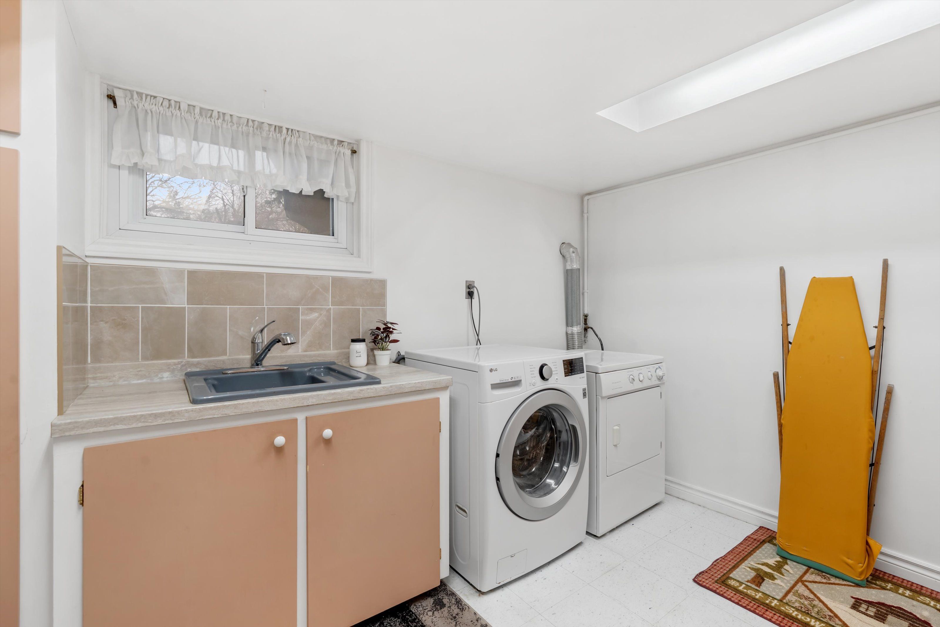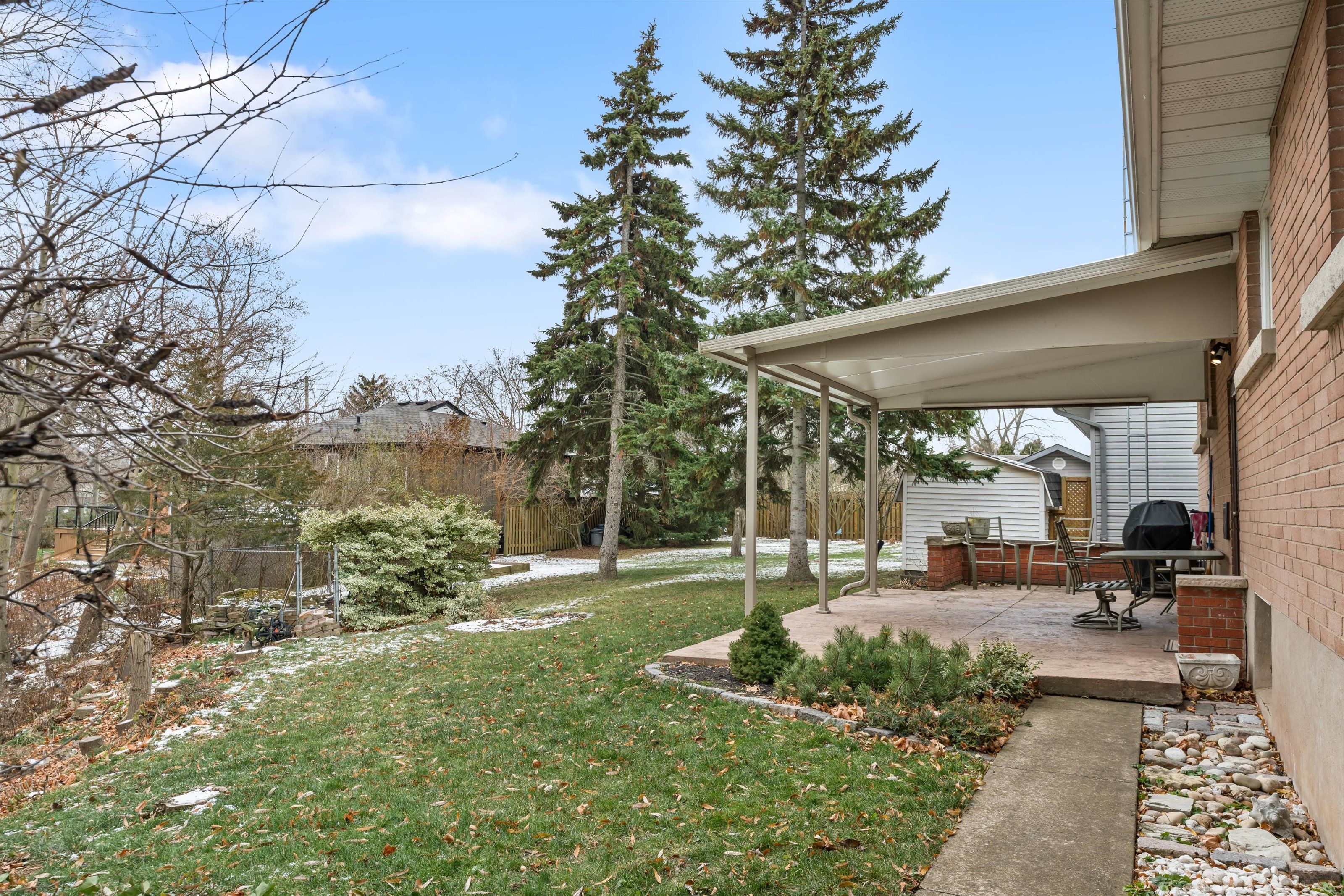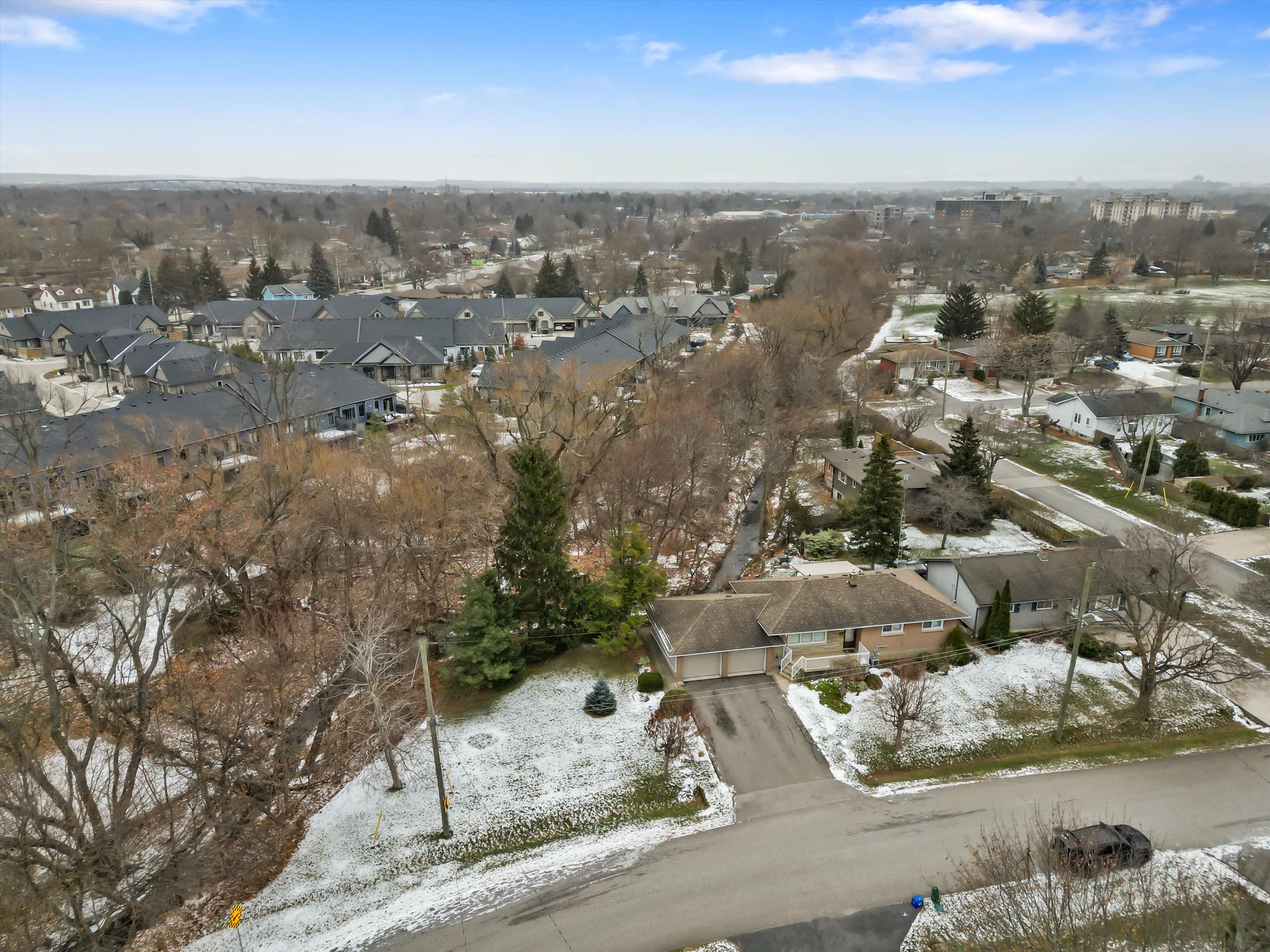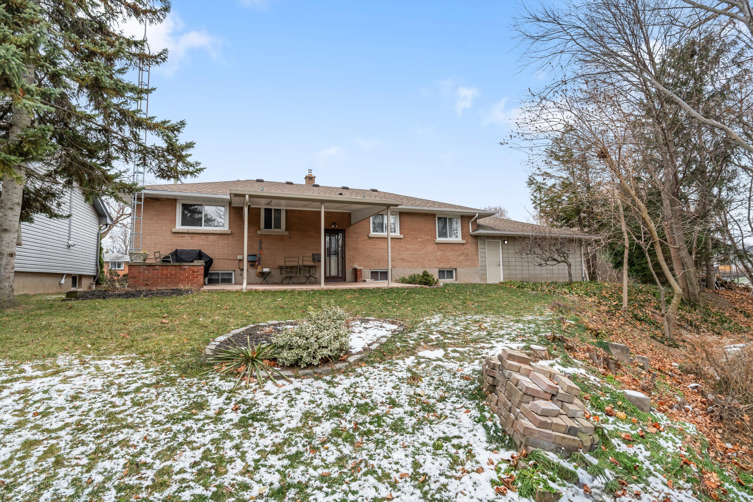 Desirable walker's creek location offering a lovely view of the ravine, trees, and the relaxing sound of a rippling creek. This mid-century, three-bedroom home with double garage has been meticulously maintained and updated. Overlooking the rear yard, the updated kitchen offers white cabinets, quartz countertops, three appliances, and a picture perfect view from the window. The lower level is fully finished, featuring a large recreation room with a free-standing gas fireplace, a finished laundry room with a dryer, built-in cabinets and a sewing area, a second bathroom with a shower, two storage closets, and a large utility/workshop room. Both bathrooms have been updated. The rear yard offers a covered patio, a true retreat for enjoying the natural surroundings. Additional noteworthy updates include an owned hot water heater, electrical breaker panel, and sump pump with battery backup, approximately seven-year-old roof shingles, a gas fireplace installed in 2023, two new garage doors installed in 2025, living room window and fridge replaced approximately three years ago. Some other features include hardwood floors, generous closet space, l-shaped living and dining room, central air and a forced-air gas furnace. This special home has been enjoyed by the current family for many years but is now ready for its next family. Close to walking trails, a large park, grantham plaza shopping center and a short direct route to the qew.