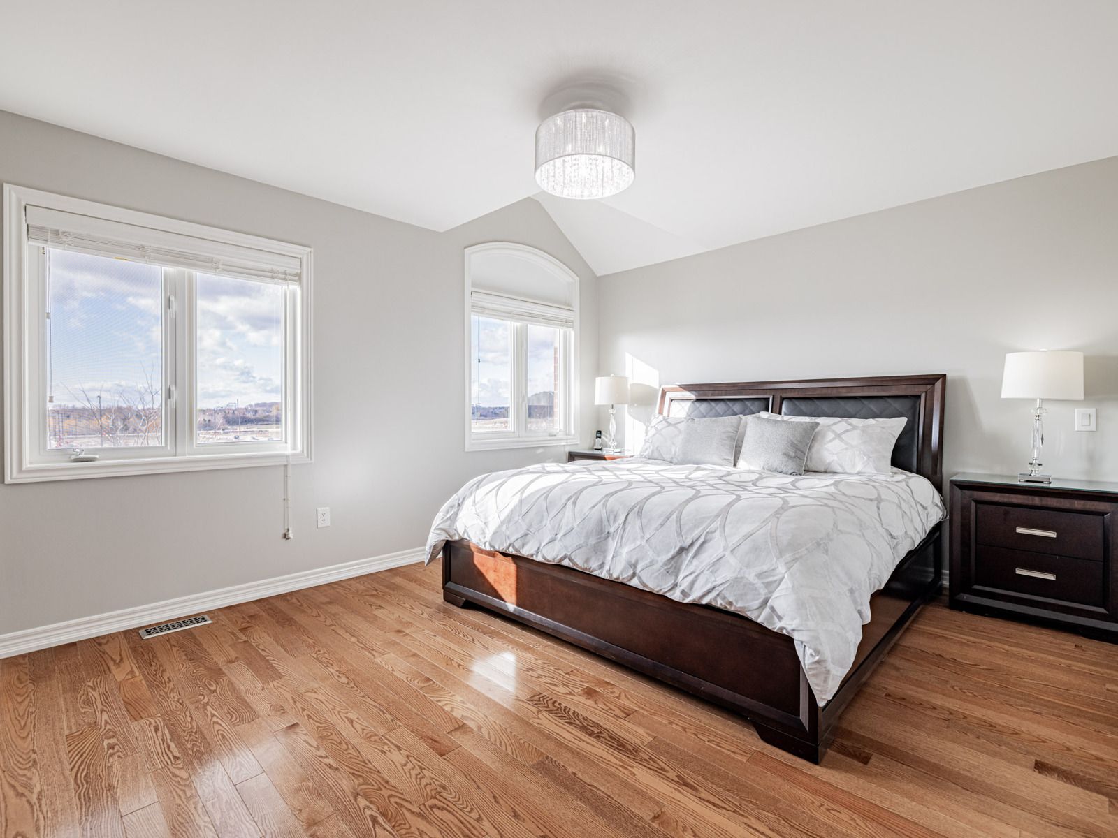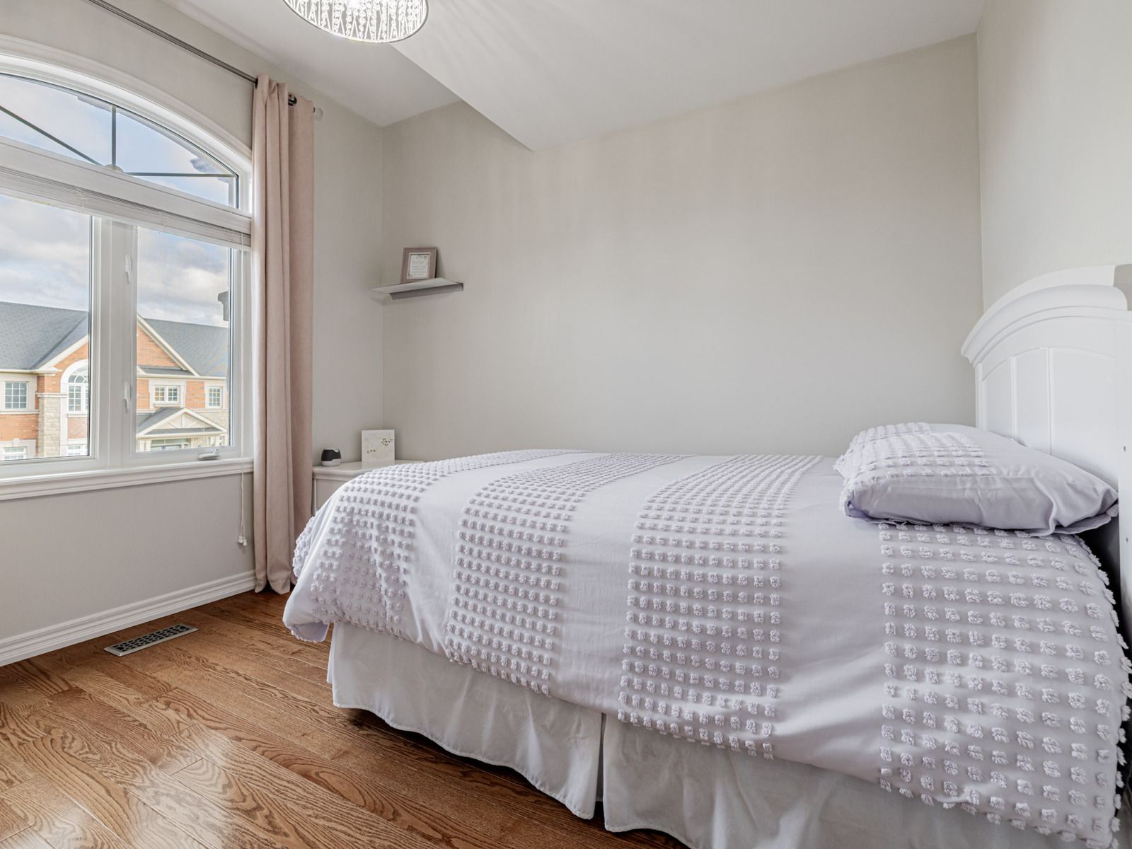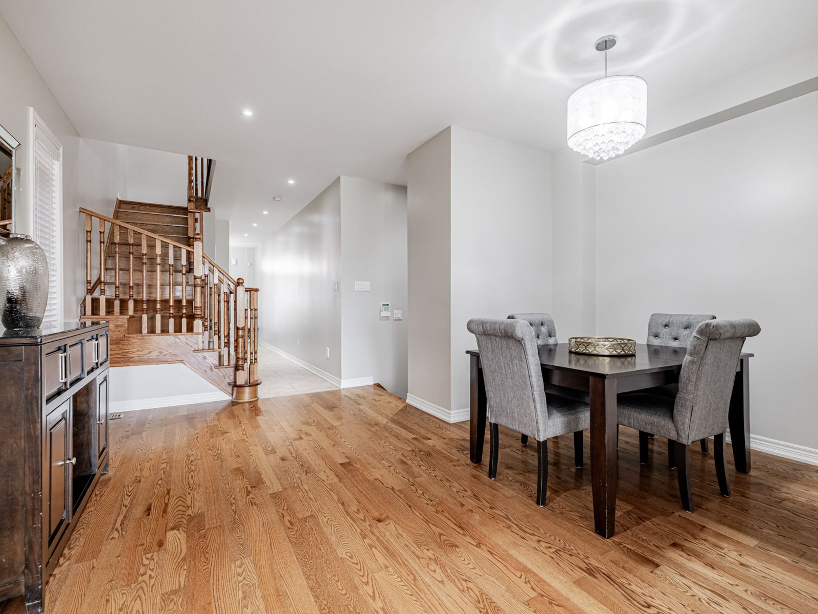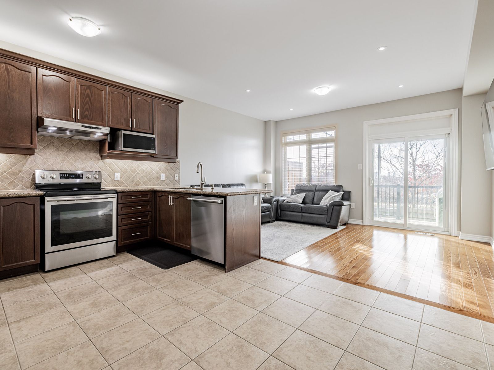 Welcome to your future executive home - first time on the market! Built by remington in 2012and meticulously maintained by its original owner, this stunning 4-bedroom, 4-bathroomexecutive end-unit freehold town home sits on a premium oversized lot and is attached only at the garage, offering the feel of a detached home. With 3,000+ sq. Ft. Of total luxury living space (2,049 sq. Ft. Above grade), this home is truly move-in ready. Step inside to a bright, open-concept layout featuring 9-ft smooth ceilings, 3-inch vintage oak flooring, fresh paint throughout, and an elegant oak staircase with upgraded pickets and handrail. The gourmet kitchen boasts granite countertops, stainless steel appliances, an eat-in breakfast area, and a walk-out to the deck through a 2025 upgraded sliding door with venetian inserts. The professionally finished basement offers a spacious walk-out design with 7-inch vinyl flooring, fresh paint, a napoleon fireplace, and a stunning stone accent wall. Additional upgrades include a navien energy-star tankless owned hwt (2020), a complete water softener and filtration system (2017), and custom laundry cabinetry with sink. The second floor is completely carpet-free, featuring vintage oak flooring, upgraded baseboards and trim, and custom organized closet systems in all bedrooms. The main bathroom and the luxurious ensuite were both renovated in 2025, showcasing premium fixtures and finishes. The primary bedroom also includes an electric fireplace and a beautifully organized walk-in closet with pot lights. The exterior offers a serene setting on a quiet street, complete with an extended driveway,garage wall storage system, and a charming flagstone walkway leading to the backyard. This end-unit gem combines luxury, style, and comfort - truly a rare find. Move-in ready and waiting for you! See attached featured sheet
