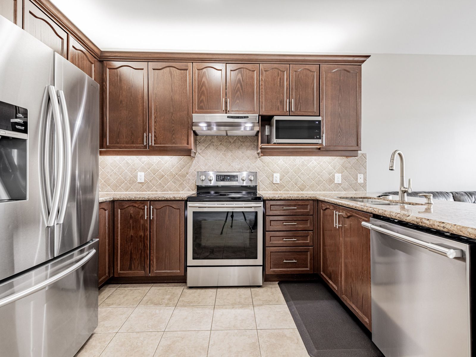 • Gourmet kitchen with granite countertops and stainless steel appliances.