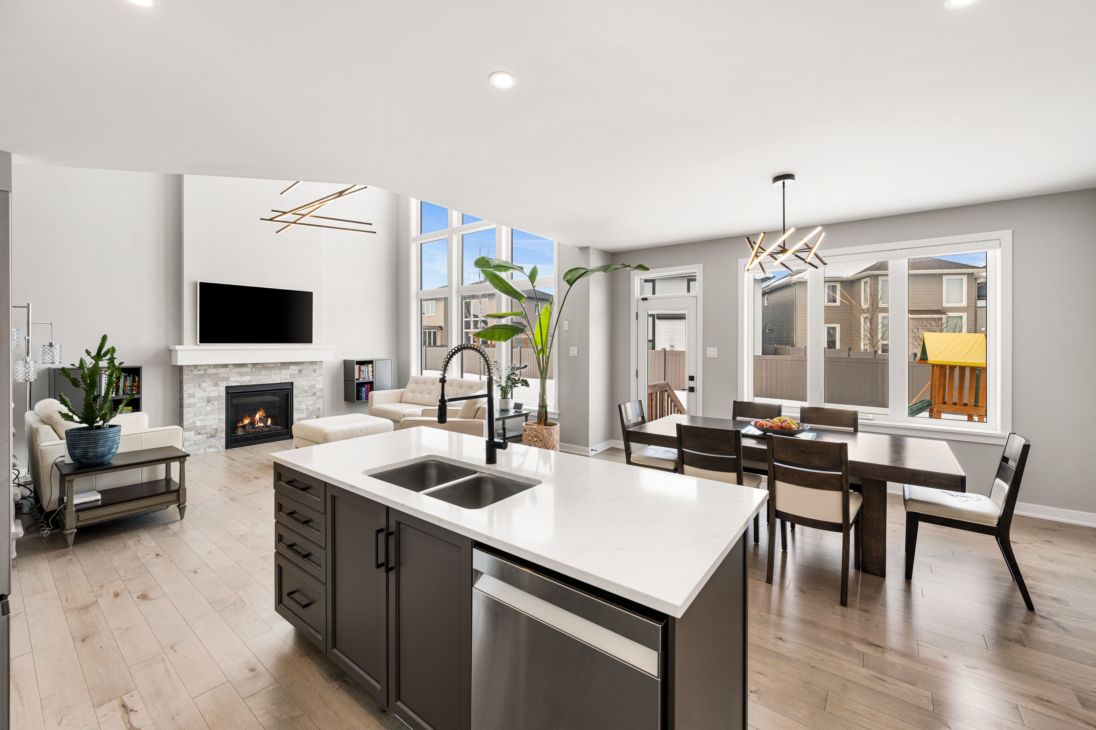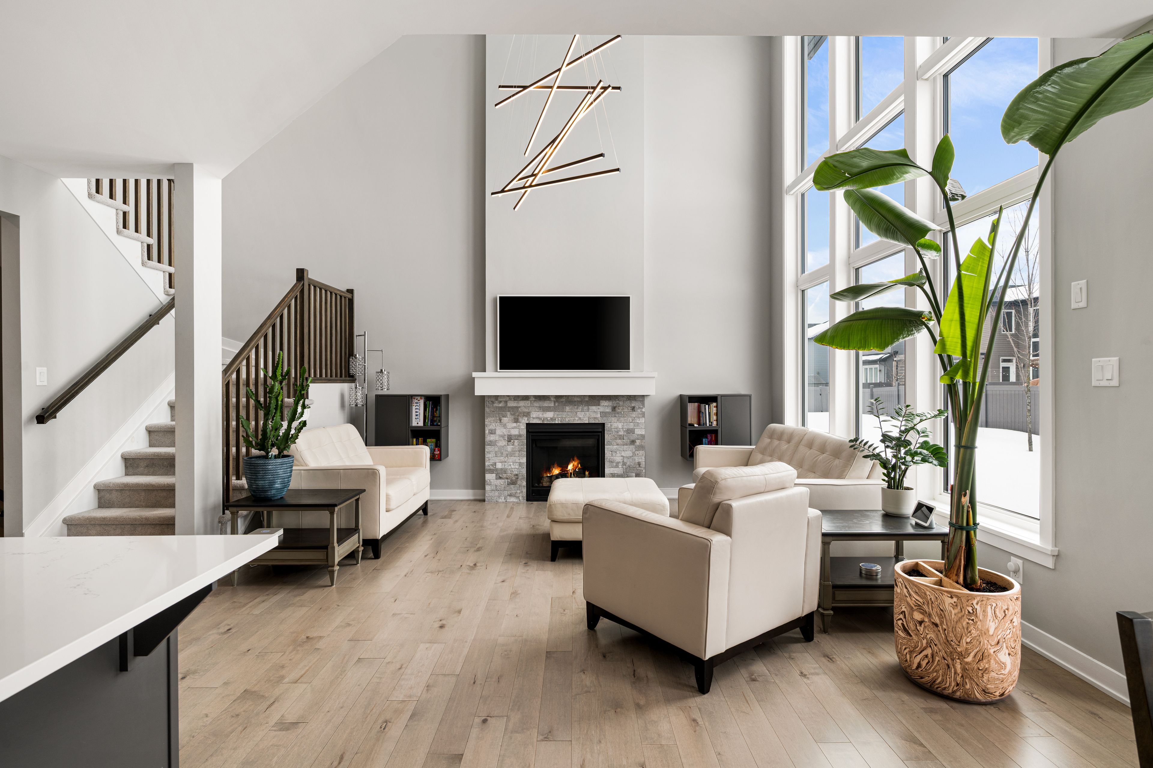 • Spacious great room featuring vaulted ceilings and a gas fireplace.