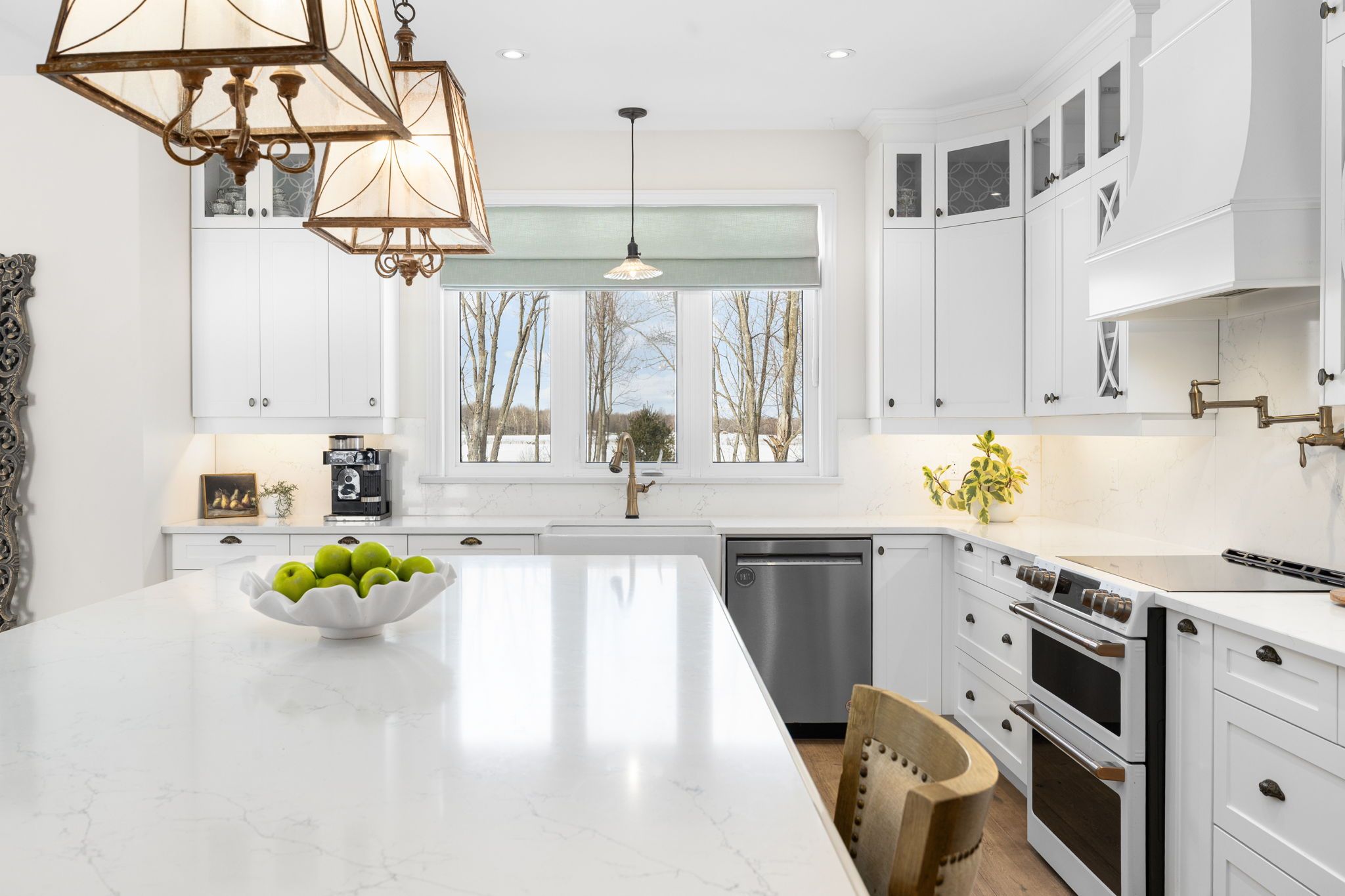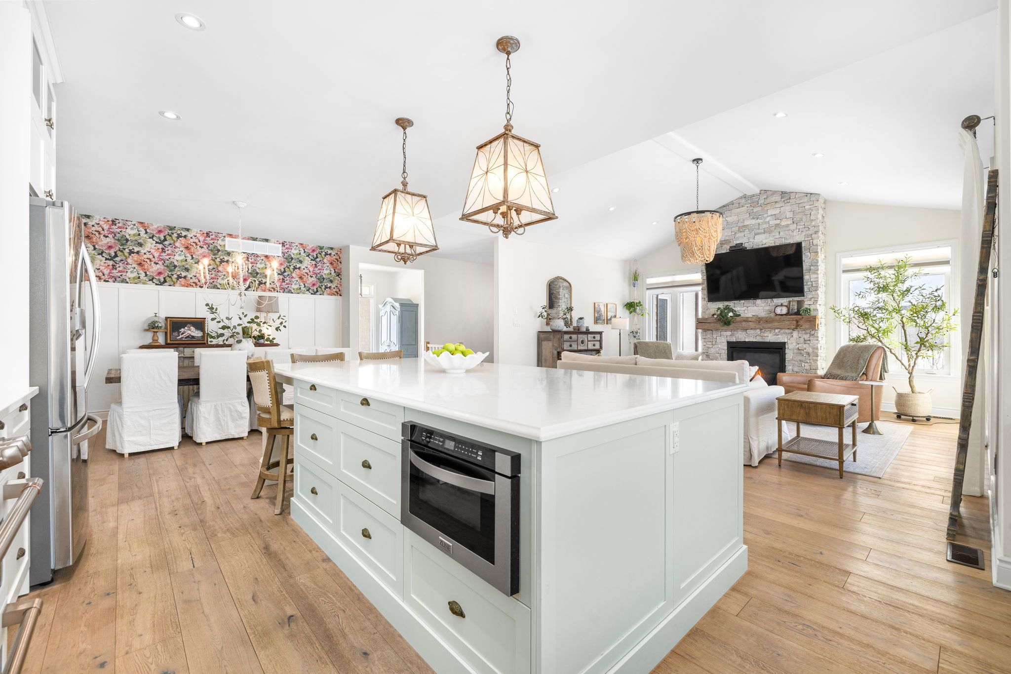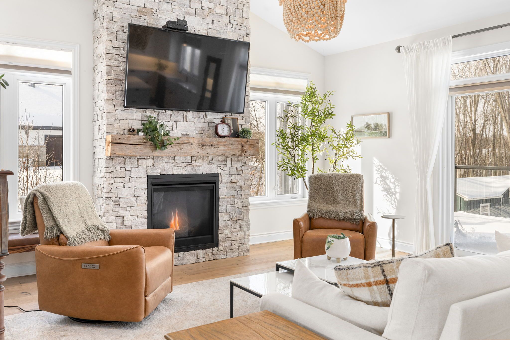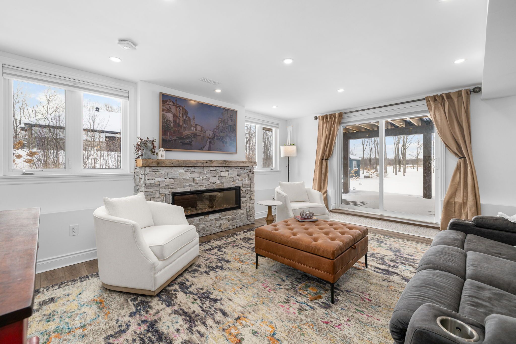 Welcome to 26 synergy way, an exceptional custom-built residence located in prestigious march crest estates. Nestled on over 2 private, treed acres in rural kanata and backing onto open farmland, this property offers peaceful surroundings, and sweeping views of the gatineau hills. Built in 2018 by grizzly homes, this meticulously crafted home blends refined design, thoughtful functionality, and outstanding craftsmanship throughout. The main level features a bright, open-concept layout ideal for both everyday living and entertaining. A chef-inspired kitchen showcases quartz counters & backsplash, extra-tall stacked cabinetry, built-in microwave, pot filler, stainless steel appliances, and an impressive 10' x 5' island with extensive storage and seating. The dining area & vaulted great room offers designer lighting, pot lights, and a striking 12' real stone gas fireplace with reclaimed barn beam mantle. Sliding doors lead to a two-storey trex composite deck with glass railings, perfect for enjoying panoramic views. Three bedrooms on the main level, including a stunning primary suite with vaulted ceilings, walk-in closet, and award-winning 5-piece ensuite with heated floors. A spacious mudroom/laundry area with built-ins offers convenient access to the heated triple-car garage. Wide-plank brushed white oak hardwood flooring throughout main level. The walk-out lower level includes a fully self-contained 1,600 sq. Ft. In-law or nanny suite with two bedrooms, full kitchen, living room with electric fireplace, in-suite laundry, private garage entrance, access to a lower deck & park-like backyard. Additional unfinished space provides excellent storage. Extensive upgrades include an oversized paved driveway, generlink 12,000w generator, irrigation system, landscaped gardens with mature trees & fruit plantings, firepit, shed, and meticulous ongoing maintenance. Stylish, versatile, and impeccably cared for, this one-of-a-kind home offers an extraordinary lifestyle opportunity.