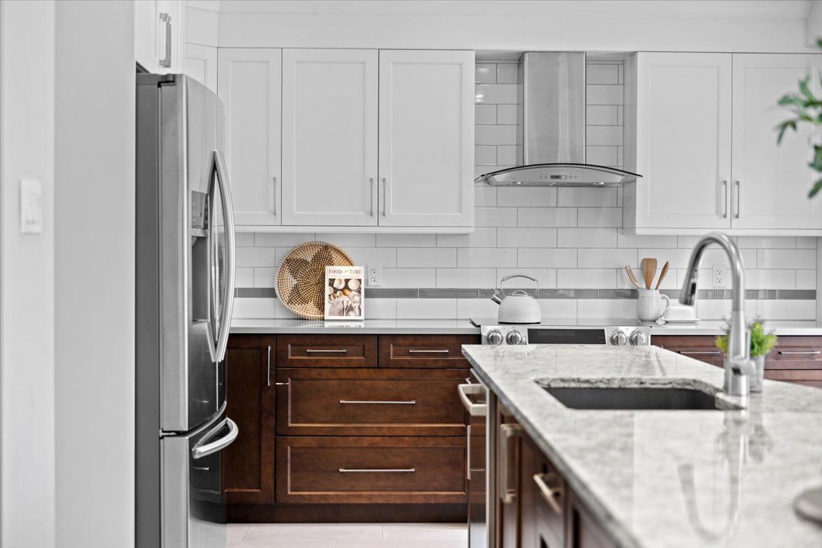 • Impressive chef's kitchen with high-end appliances and quartz countertops.