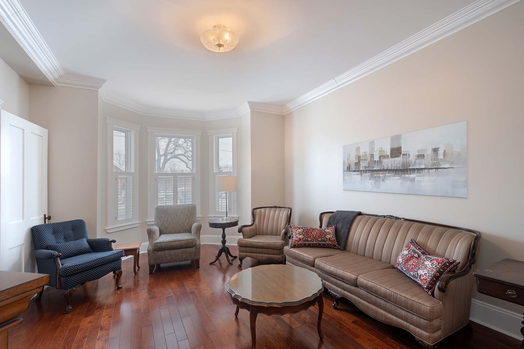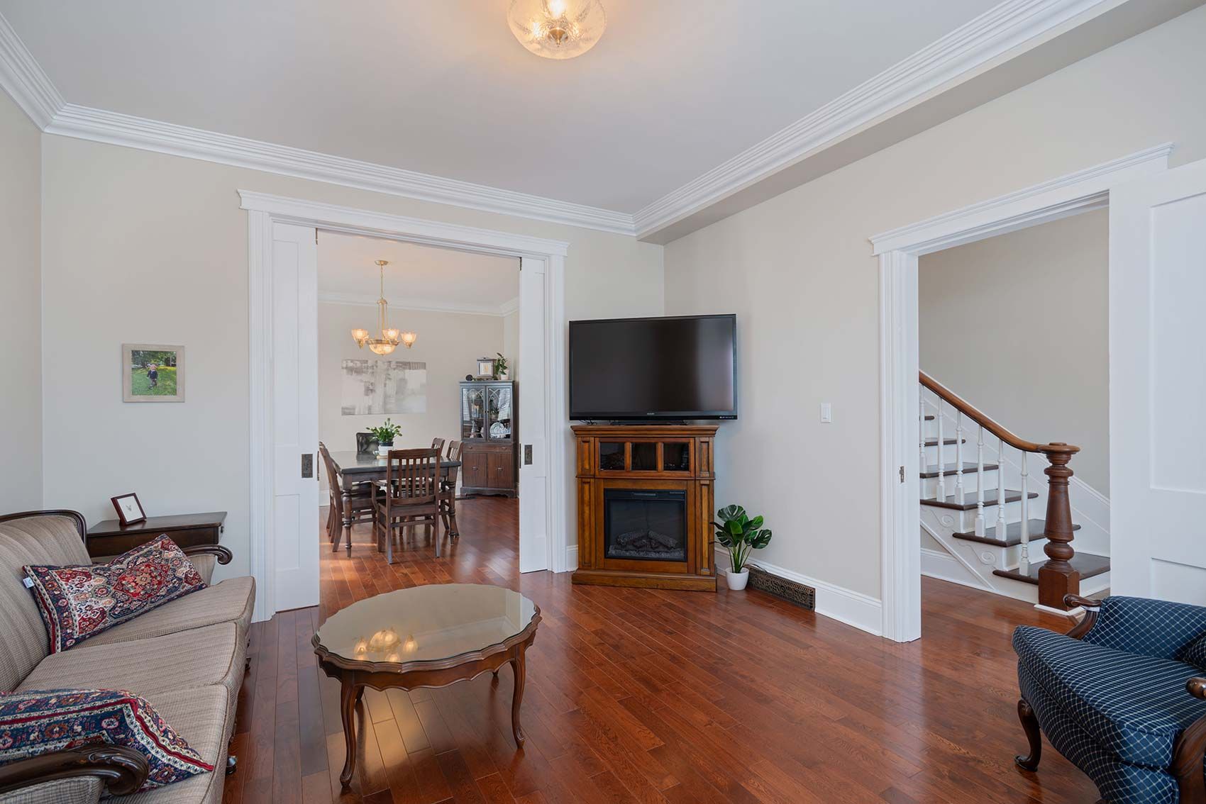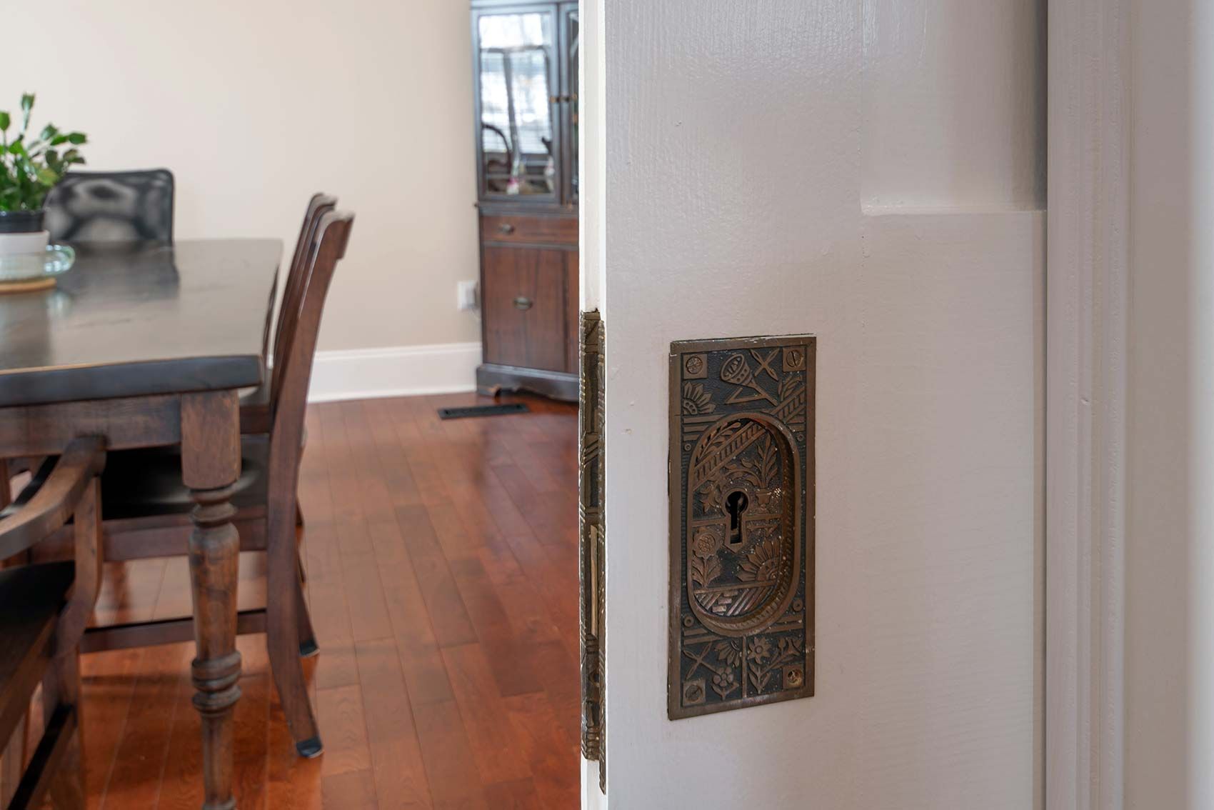 • Elegant pocket doors and original hardware add unique charm throughout.