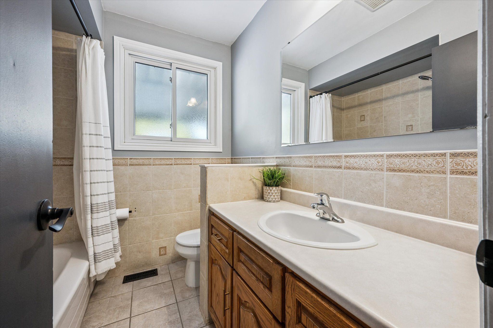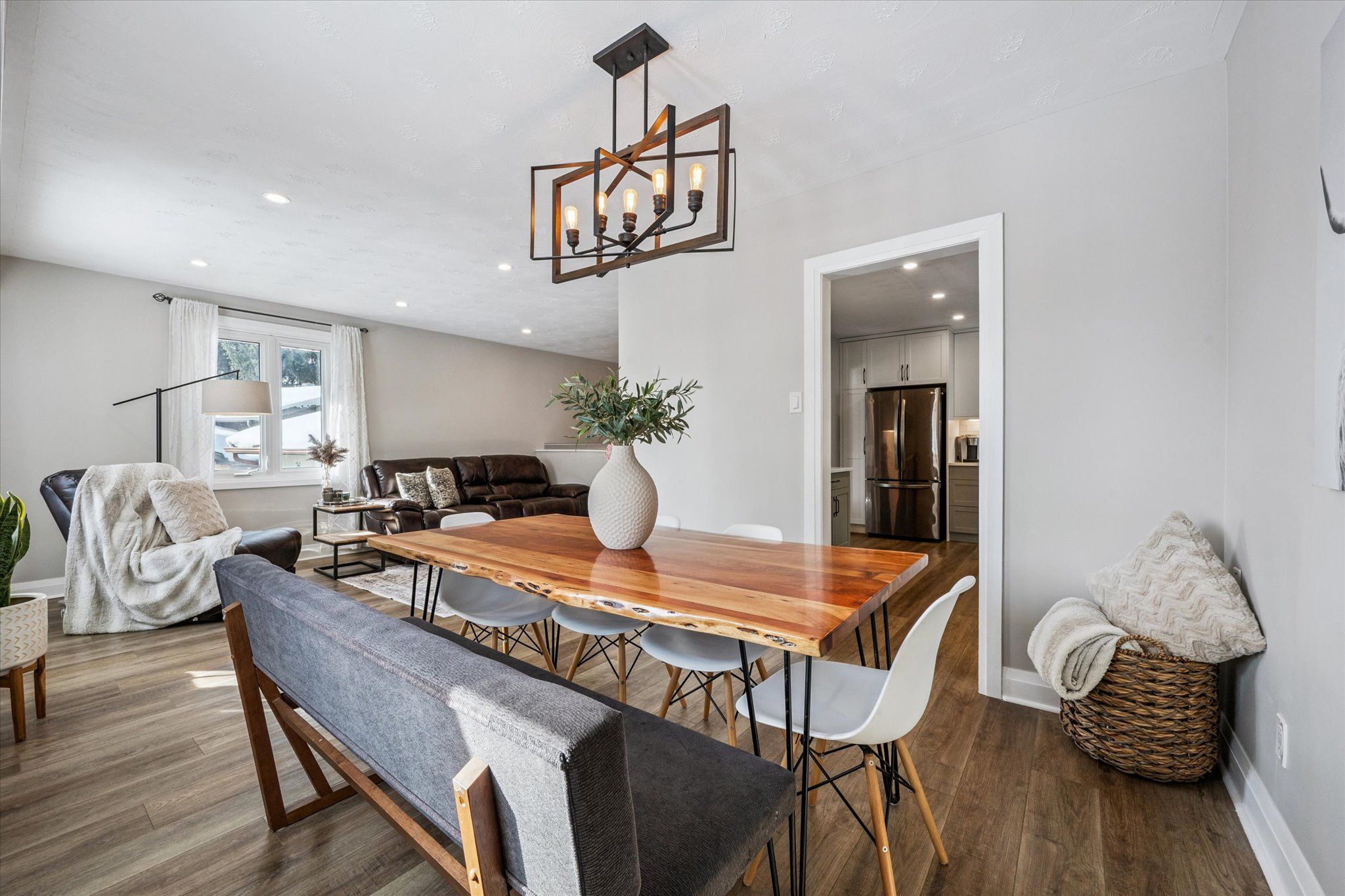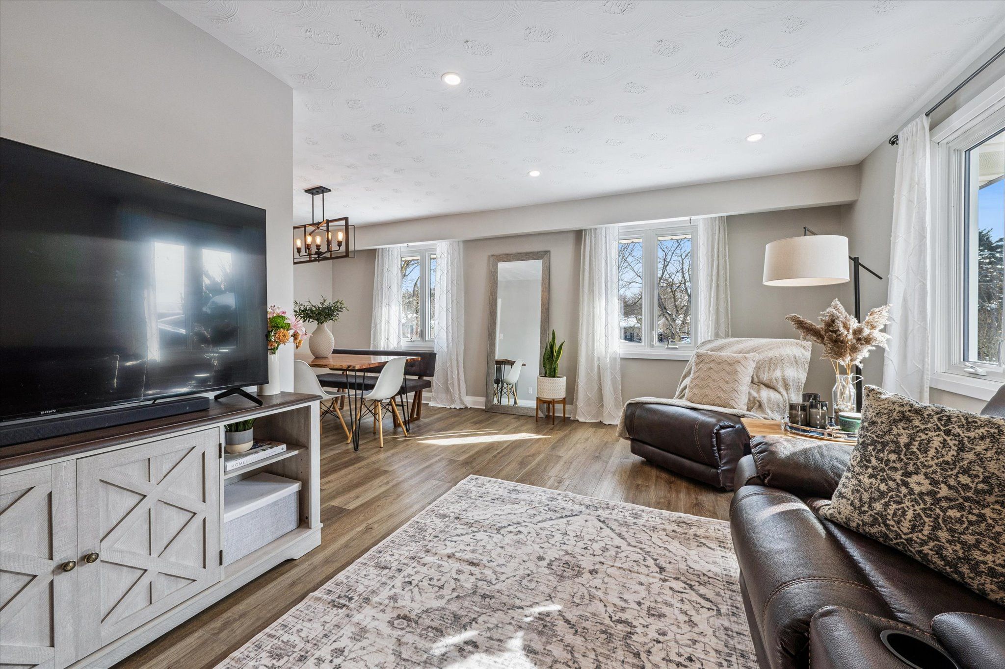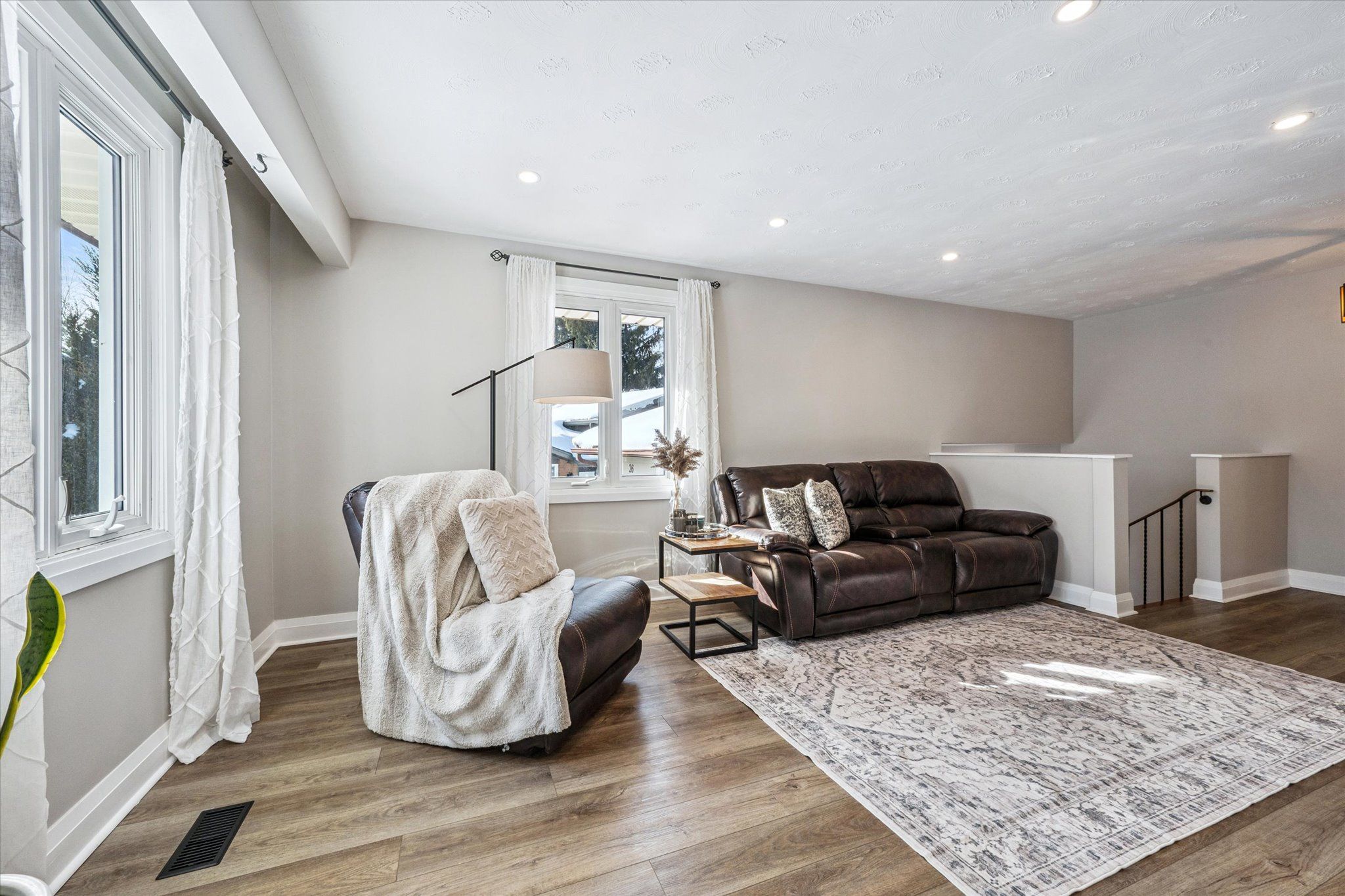 Tucked away on a quiet cul-de-sac in a fantastic neighbourhood, this spacious 5-bedroom side split offers the perfect blend of comfort, updates, and outdoor enjoyment. Set on a generous pie-shaped lot, the backyard is designed for entertaining and relaxation with a sparkling in-ground pool, a spacious patio area, and plenty of space for family fun. Inside, the main level features a bright, open-concept living room and dining area, creating an ideal layout for everyday living and hosting. The beautifully updated kitchen (2022) is both stylish and functional, complete with modern finishes and patio sliders leading out to the covered deck. Three well-appointed bedrooms and a 4-piece main bathroom complete the main floor. The renovated basement (2022) adds exceptional versatility, offering a spacious recreation room perfect for movie nights or a kids' retreat, along with two additional bedrooms, a private office, laundry room, and a 3-piece bathroom- ideal for growing families or multi-generational living. Thoughtfully maintained with major updates including a new furnace and a/c (2021), new pool pump (2021), new pool liner (2017), updated 220-amp electrical service, and exterior pot lights (2021), this home provides peace of mind for years to come, while an attached garage adds everyday convenience. Located close to all major amenities, schools, parks, trails, and a golf course, this is a wonderful opportunity to own a move-in-ready home in a desirable, family-friendly setting.