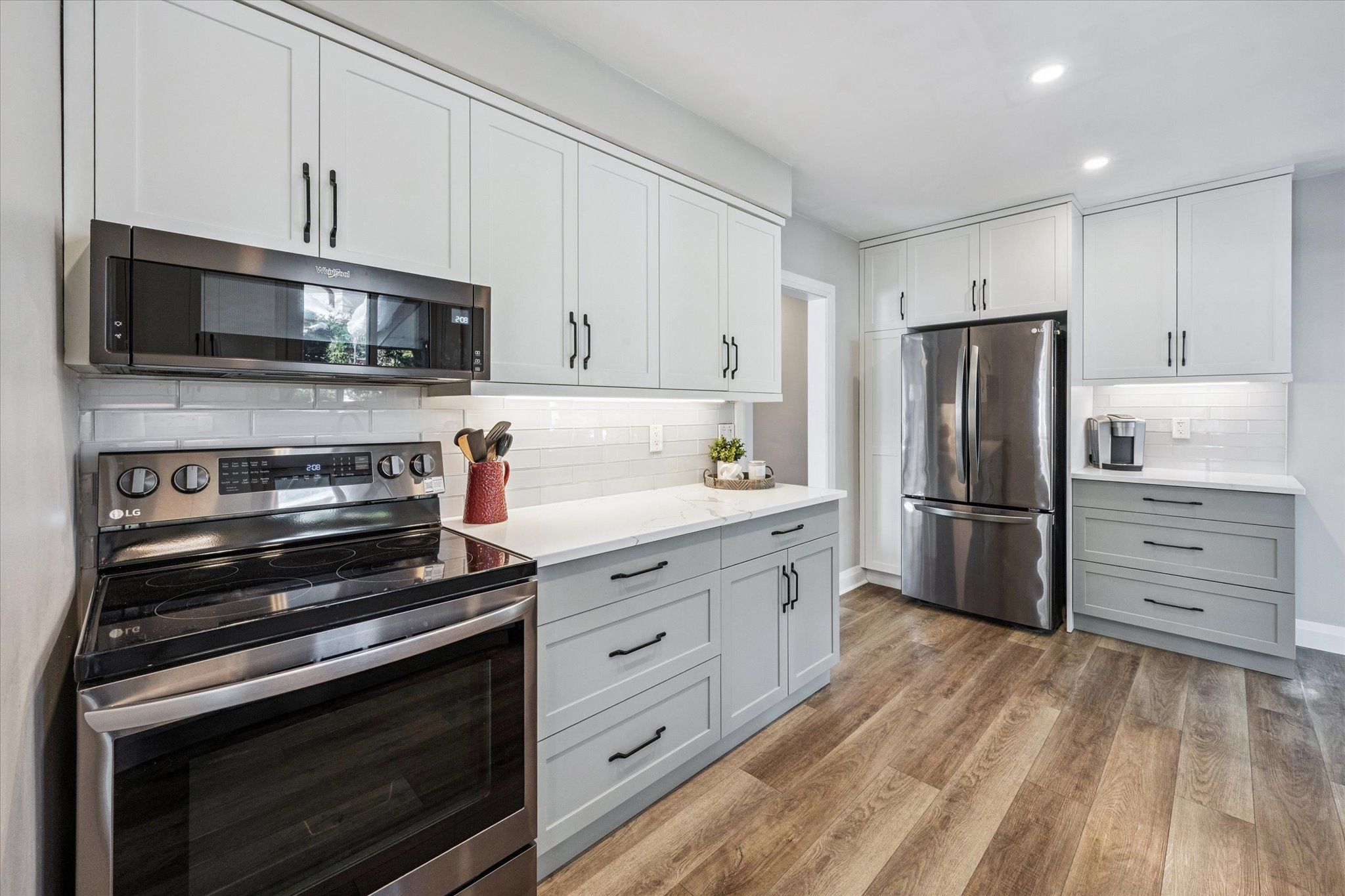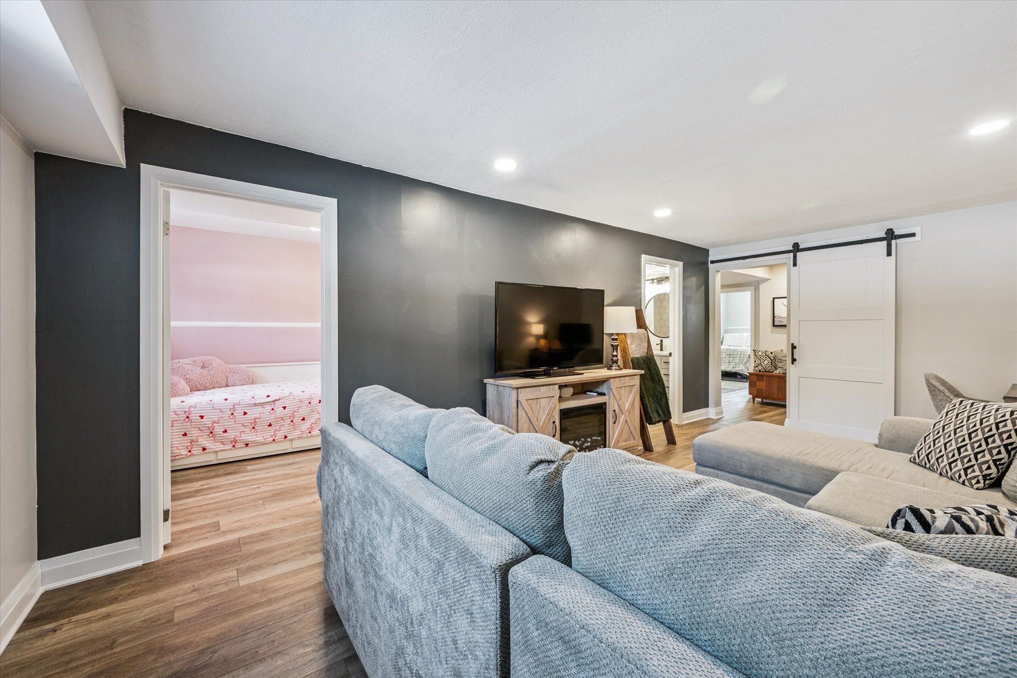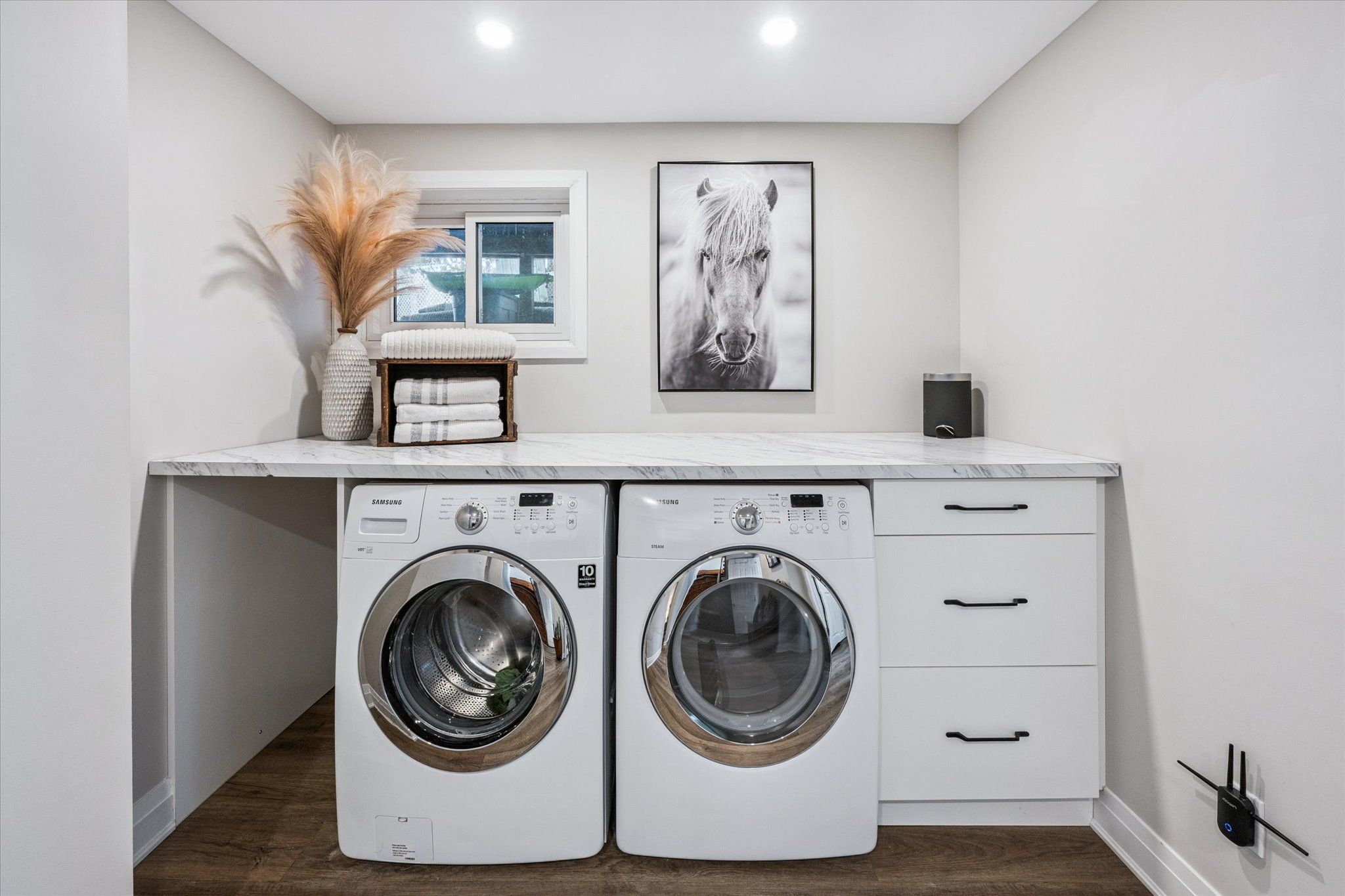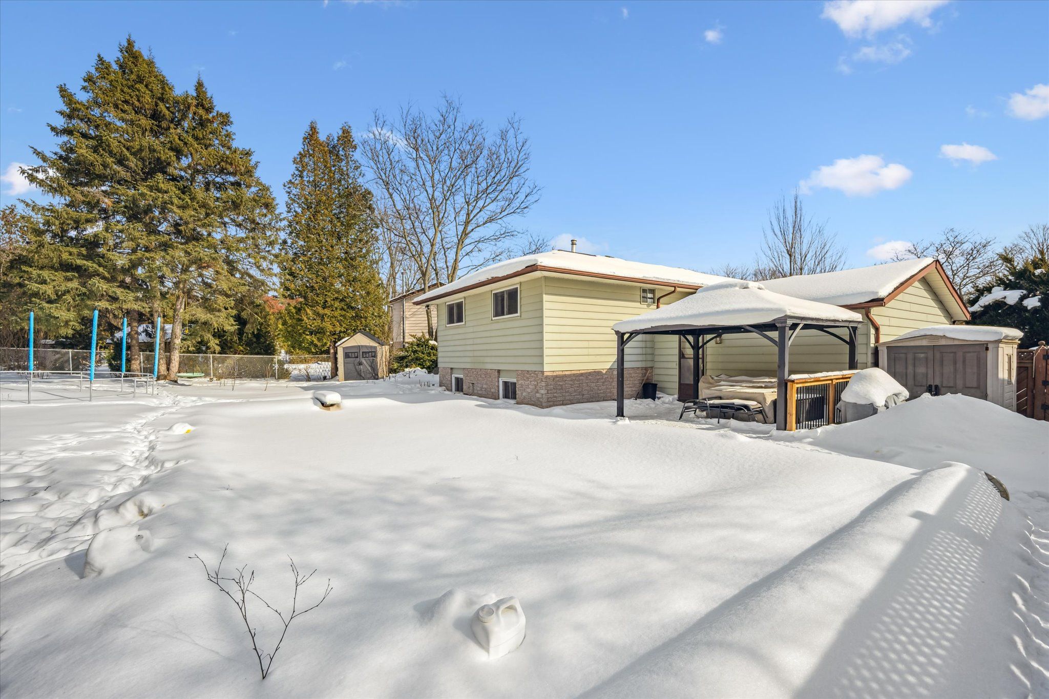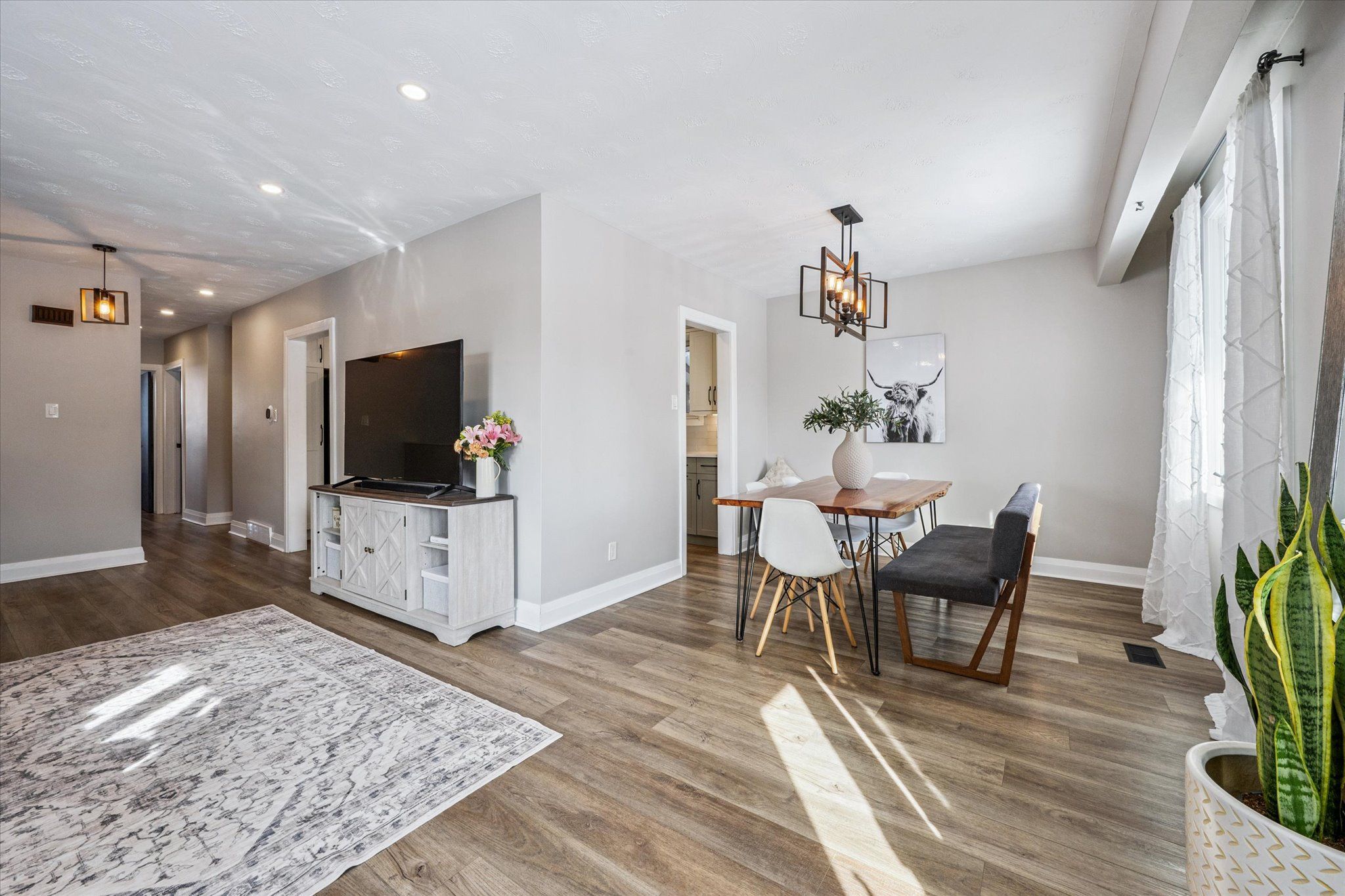 Tucked away on a quiet cul-de-sac in a fantastic neighbourhood, this spacious 5-bedroom side split offers the perfect blend of comfort, updates, and outdoor enjoyment. Set on a generous pie-shaped lot, the backyard is designed for entertaining and relaxation with a sparkling in-ground pool, a spacious patio area, and plenty of space for family fun. Inside, the main level features a bright, open-concept living room and dining area, creating an ideal layout for everyday living and hosting. The beautifully updated kitchen (2022) is both stylish and functional, complete with modern finishes and patio sliders leading out to the covered deck. Three well-appointed bedrooms and a 4-piece main bathroom complete the main floor. The renovated basement (2022) adds exceptional versatility, offering a spacious recreation room perfect for movie nights or a kids' retreat, along with two additional bedrooms, a private office, laundry room, and a 3-piece bathroom- ideal for growing families or multi-generational living. Thoughtfully maintained with major updates including a new furnace and a/c (2021), new pool pump (2021), new pool liner (2017), updated 220-amp electrical service, and exterior pot lights (2021), this home provides peace of mind for years to come, while an attached garage adds everyday convenience. Located close to all major amenities, schools, parks, trails, and a golf course, this is a wonderful opportunity to own a move-in-ready home in a desirable, family-friendly setting.