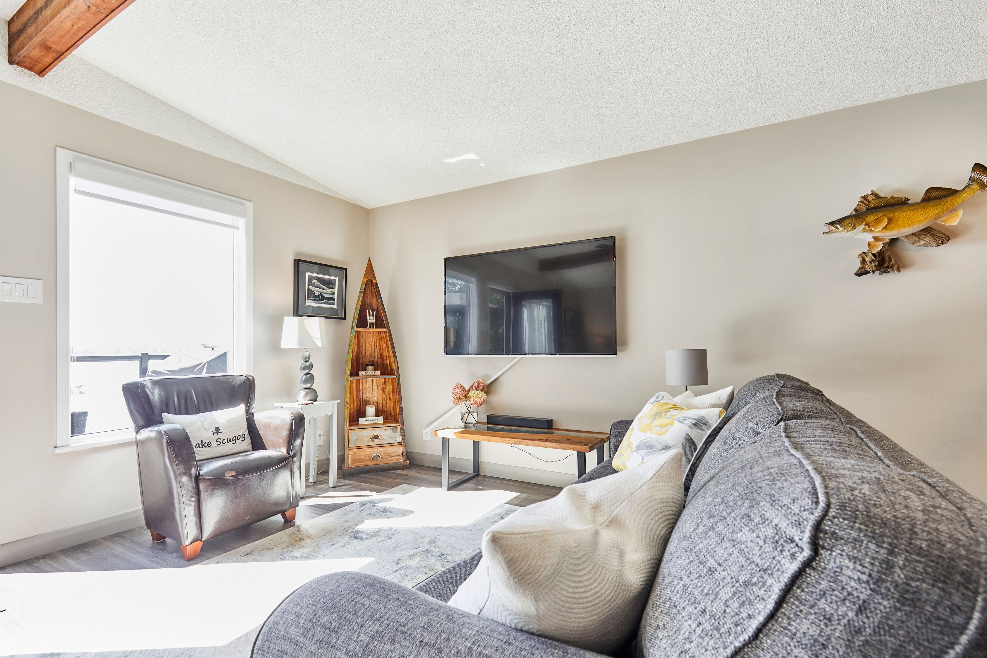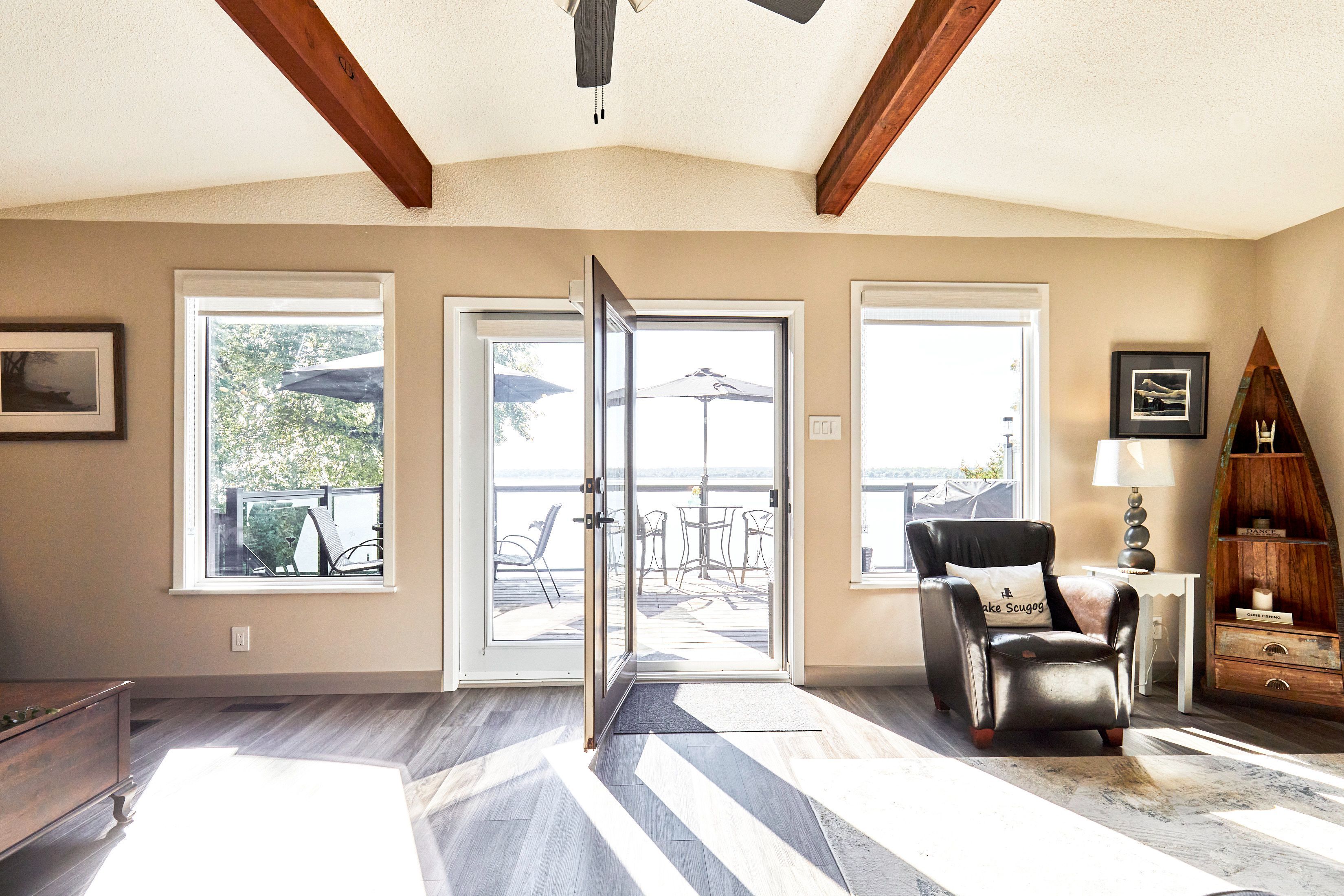 Welcome to 26 wakeford rd. Where the breathtaking westerly exposure overlooking lake scugog provides stunning sunset views setting the perfect mood for evening relaxation. Whether sipping coffee on the deck, entertaining family & friends on the dock or around the campfire, this lovely 4 season waterfront home is perfect for full time living or a seasonal escape. This home truly shows pride of ownership. Every detail has been carefully attended to ensuring a move-in ready experience for new homeowners. Situated on the north shore of lake scugog, this is one of the most sought after beaches on the lake, offering great swimming, water sports, fishing & snowmobiling. The vaulted ceiling and open-concept living space creates a bright and inviting atmosphere while the walk-out to the large deck enhances indoor-outdoor living. Sit at the breakfast bar for coffee or enjoy the large dining space where everyone can gather. The primary suite has wall-to-wall closets and space for a sitting area. The lower level features an open living area with a airtight propane fireplace to take the chill off, large windows overlooking the water, wet bar, counters and storage, a four-piece washroom, 2 more bedrooms, laundry/utility room and a separate side door entrance, allowing for endless possibilities. The oversized one car drive-thru garage enables taking boats & toys through to the waterfront, while the shed offers plenty of storage. The manicured grounds and new stone walkways show the exterior has been as lovingly cared for as the inside of this home. A short drive to lindsay or port perry and an easy commute to hwy. 35 or 407. Do not miss the opportunity to embrace the waterfront lifestyle you have always dreamed of.