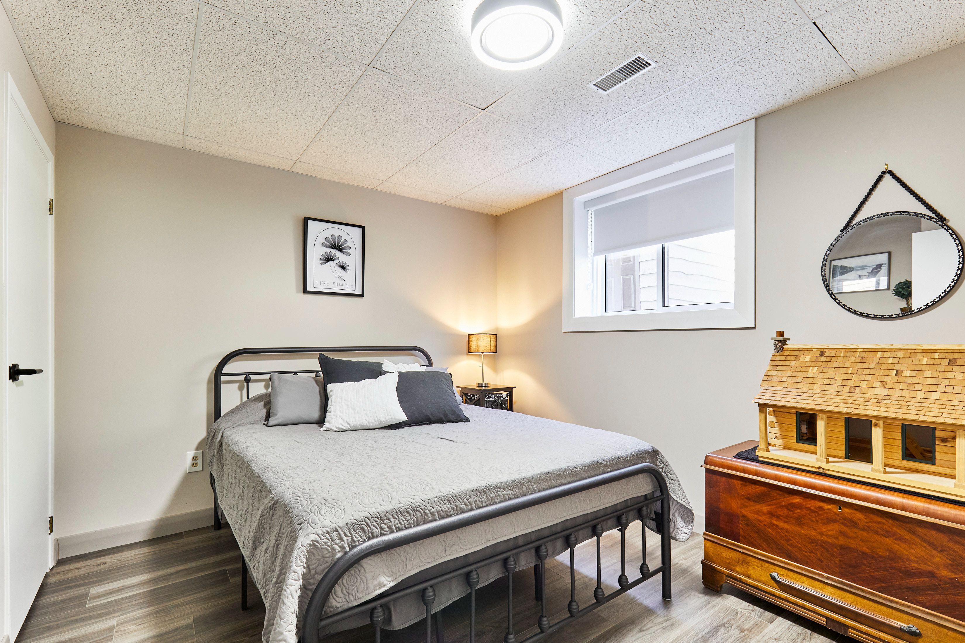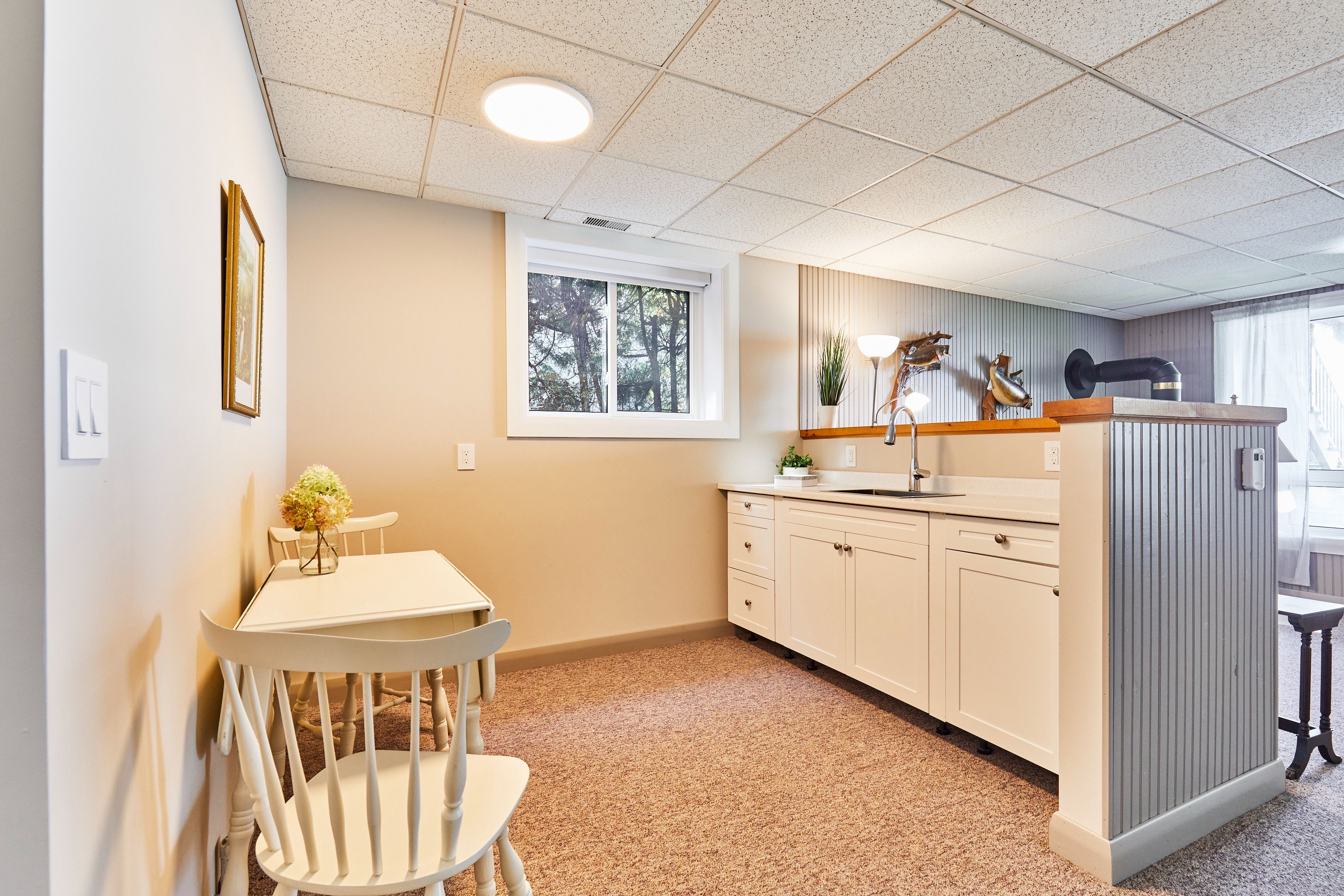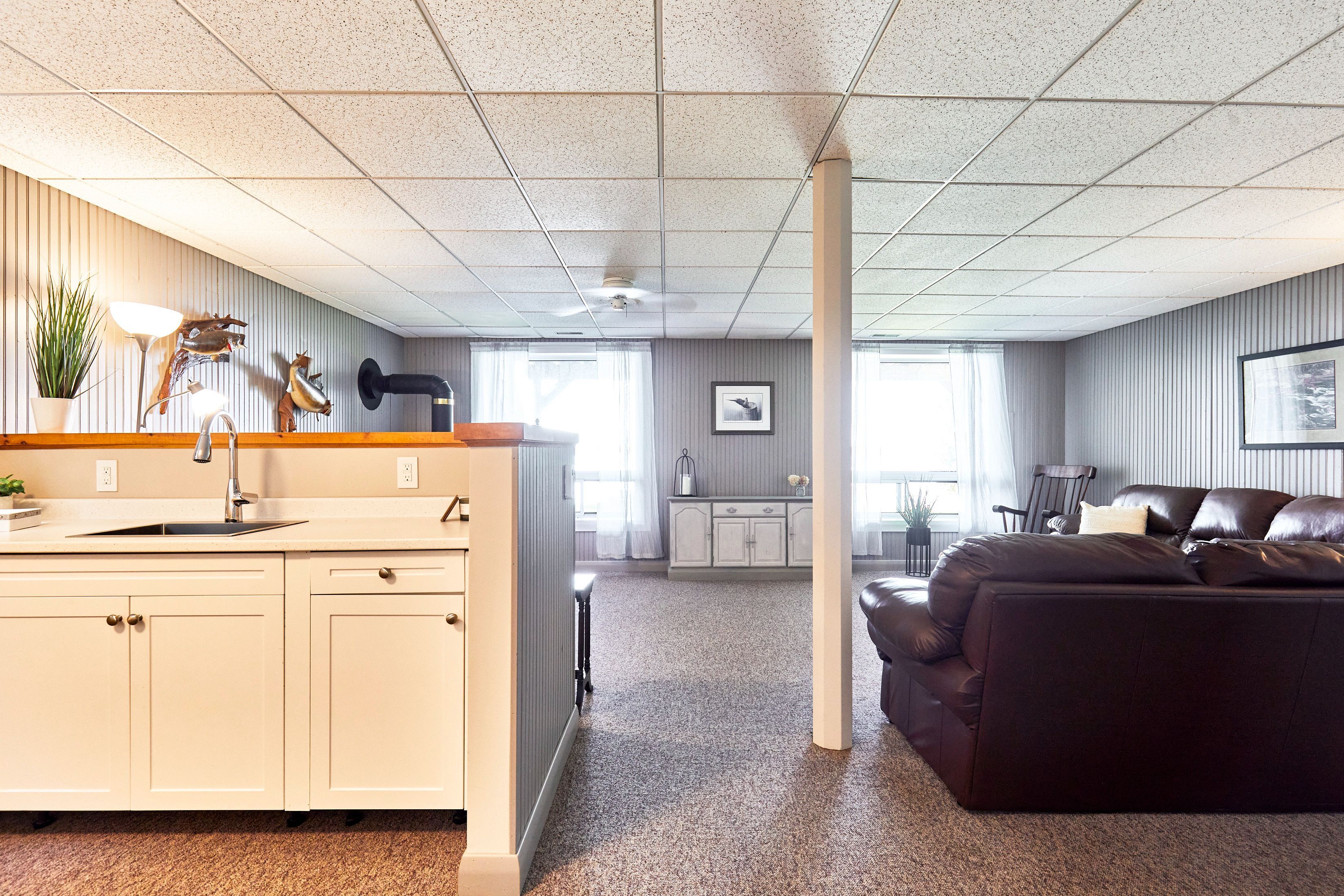 • Lower level with fireplace, wet bar, and versatile living spaces.