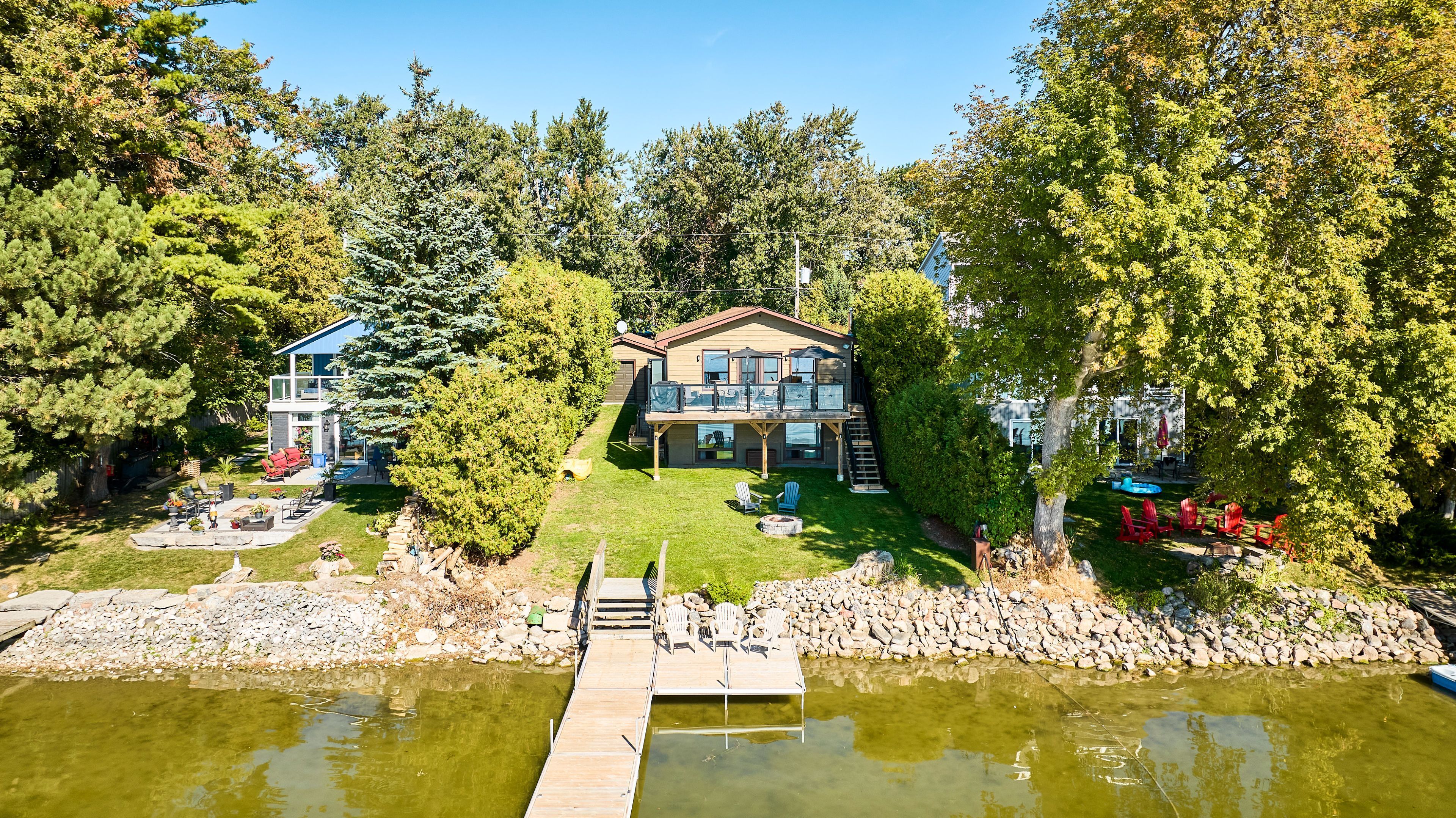 Subtype DetachedIndoor Features Floor Drain, Propane Tank, Storage, Suspended Ceilings, Water Heater OwnedOutdoor Features Awnings, Deck, Fishing, Landscape Lighting, Lighting, Patio, Privacy, Recreational Area, Year Round LivingAmenities Beach, Lake/Pond, Level, School Bus Route, Waterfront, Wooded/TreedOwnership FreeholdViews Beach, Clear, Lake, WaterWaterfront DirectAppliances NoneBasement Finished with Walk-Out, Full, Walk-OutFoundation BlockHeating / Cooling Forced AirHeating Fuel PropaneSewer Holding Tank